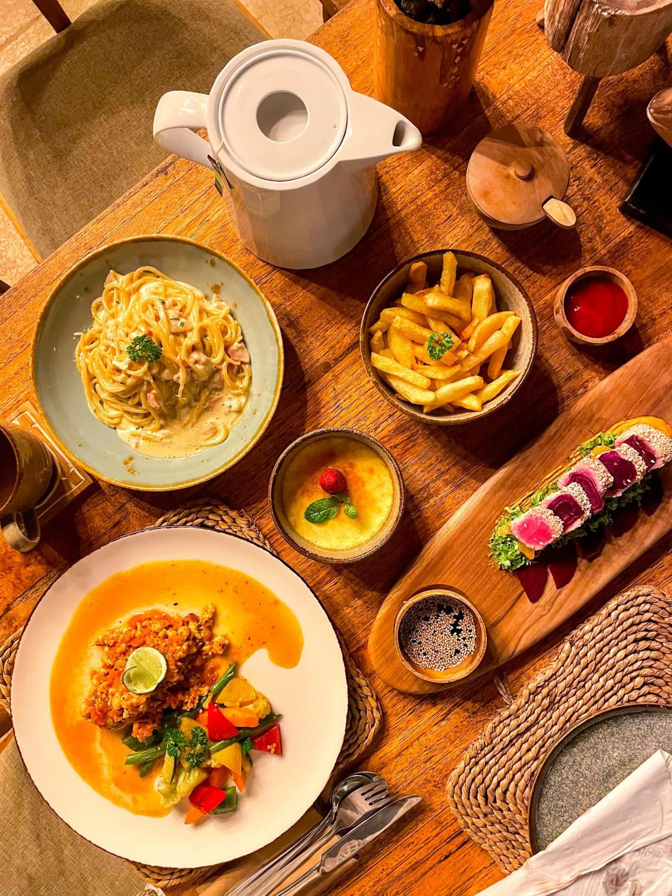 Another thing we did not like was the food choice in Bleu Mathis. The menu is just few pages and mostly carbs options, a little overpriced as wel. The taste of the food was inconsistent, depending on the shifts. Some cooks did a great job, while someother times I would get stomach acids even and completely different taste. Again, after few tries, we were "forced" to dine at the other resort - Eco Lodge. Which have an amazing ltalian restaurant with tons of choices and around 30-40% cheaper overall...