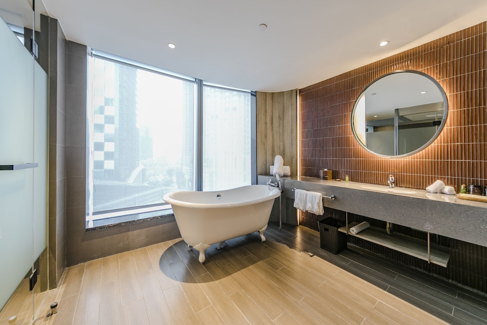 Experience a comfortable stay in our air-conditioned rooms with Smart TVs and luxurious bathrooms featuring rainfall showerheads and complimentary toiletries.