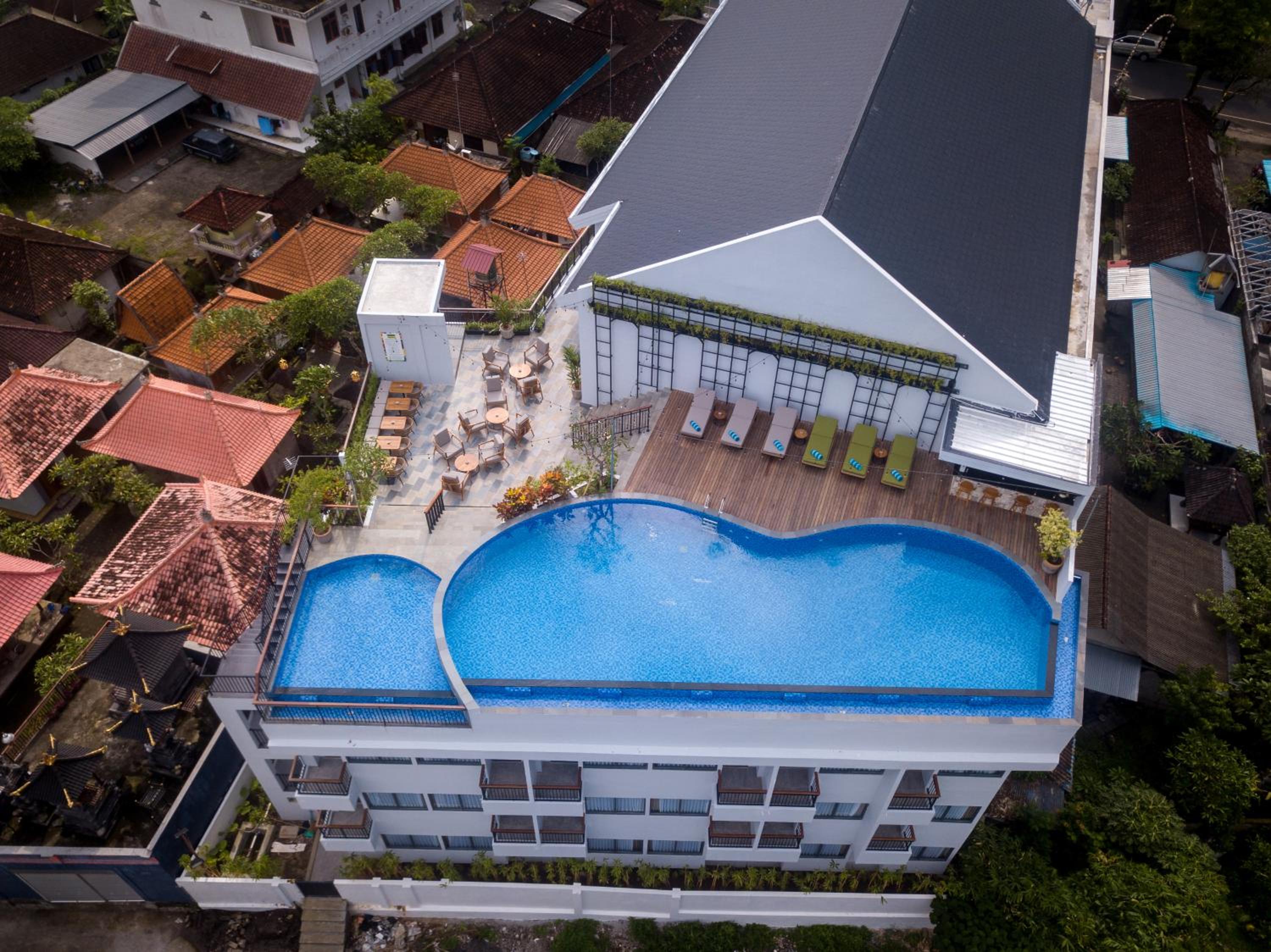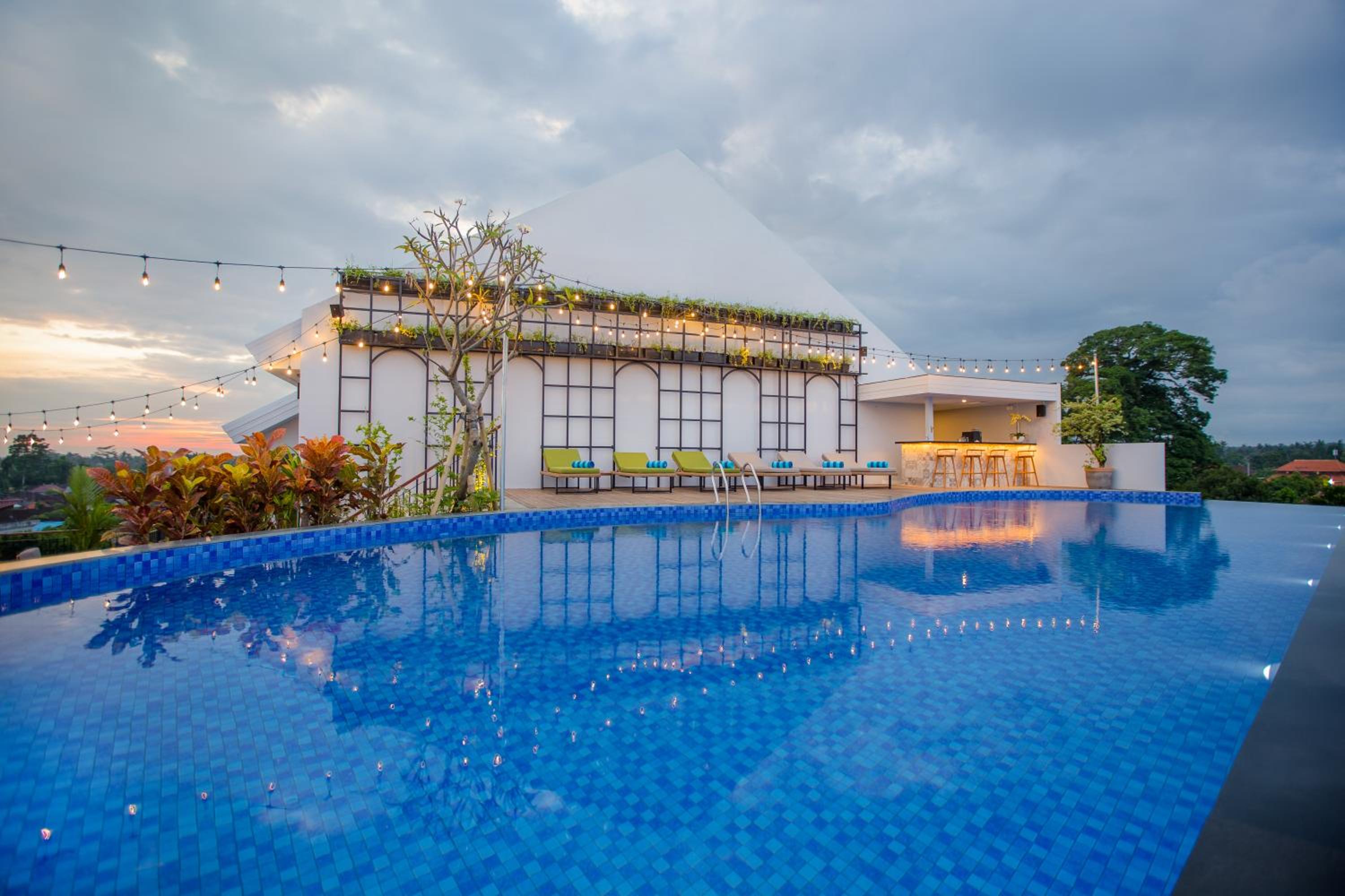 RV Hotel Kutus Kutus Gianyar Bali offers elegant rooms with modern amenities including air conditioning, flat-screen TVs, and private balconies with stunning city or mountain views. The cozy beds with premium linens ensure a comfortable stay for guests.