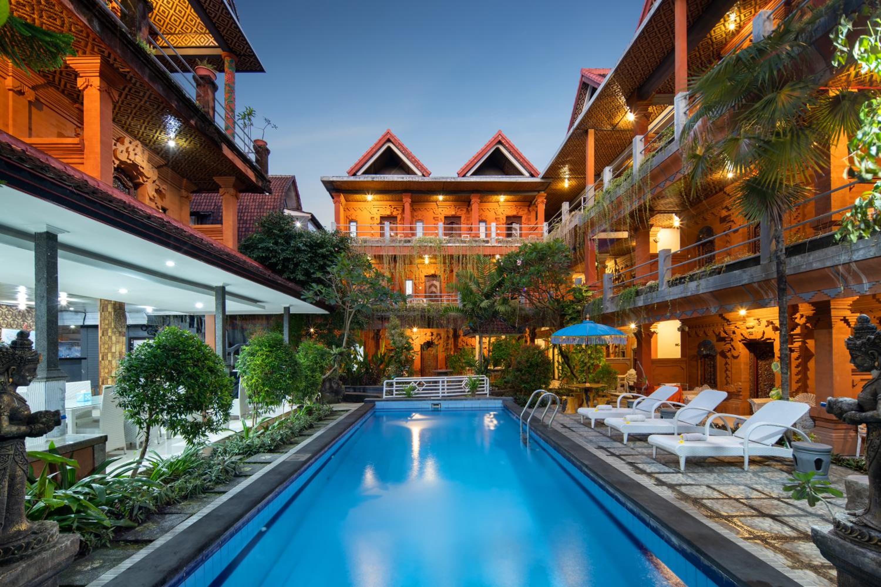 Hotel Lumbung Sari Legian offers a tranquil escape with its lush garden, inviting terrace, and picturesque pool views. The perfect setting for relaxation and unwinding amidst nature.