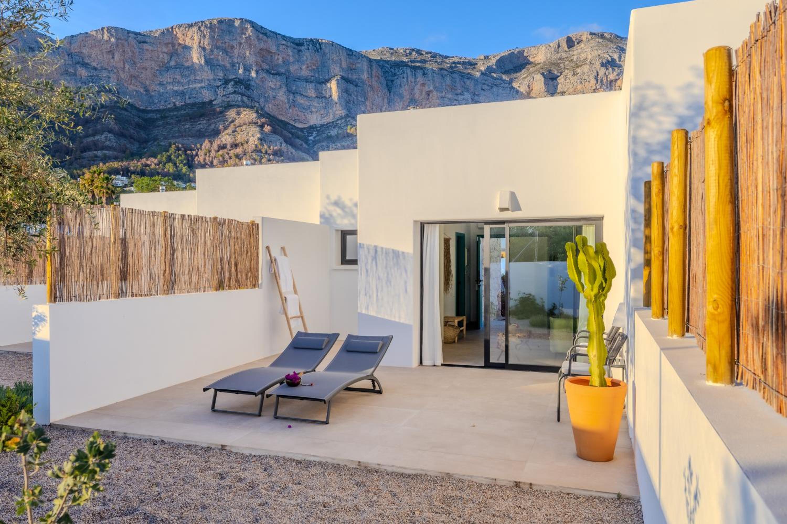 Supermooie locatie, ziet er echt prachtig uit. Met heel veel (goede) smaak ingericht en comfortbel. Heerlijke inloopdouche, prachtige tuin met zwembad. Vloerverwarming, airco, sfeerhaard, goede bedden, ieder dag schone handdoeken. Heel vriendelijk personeel. Uitstekend ontbijt met allemaal verse producten, verse sappen, vers fruit. Geweldig mooi uitzicht op de berg Montgo.
