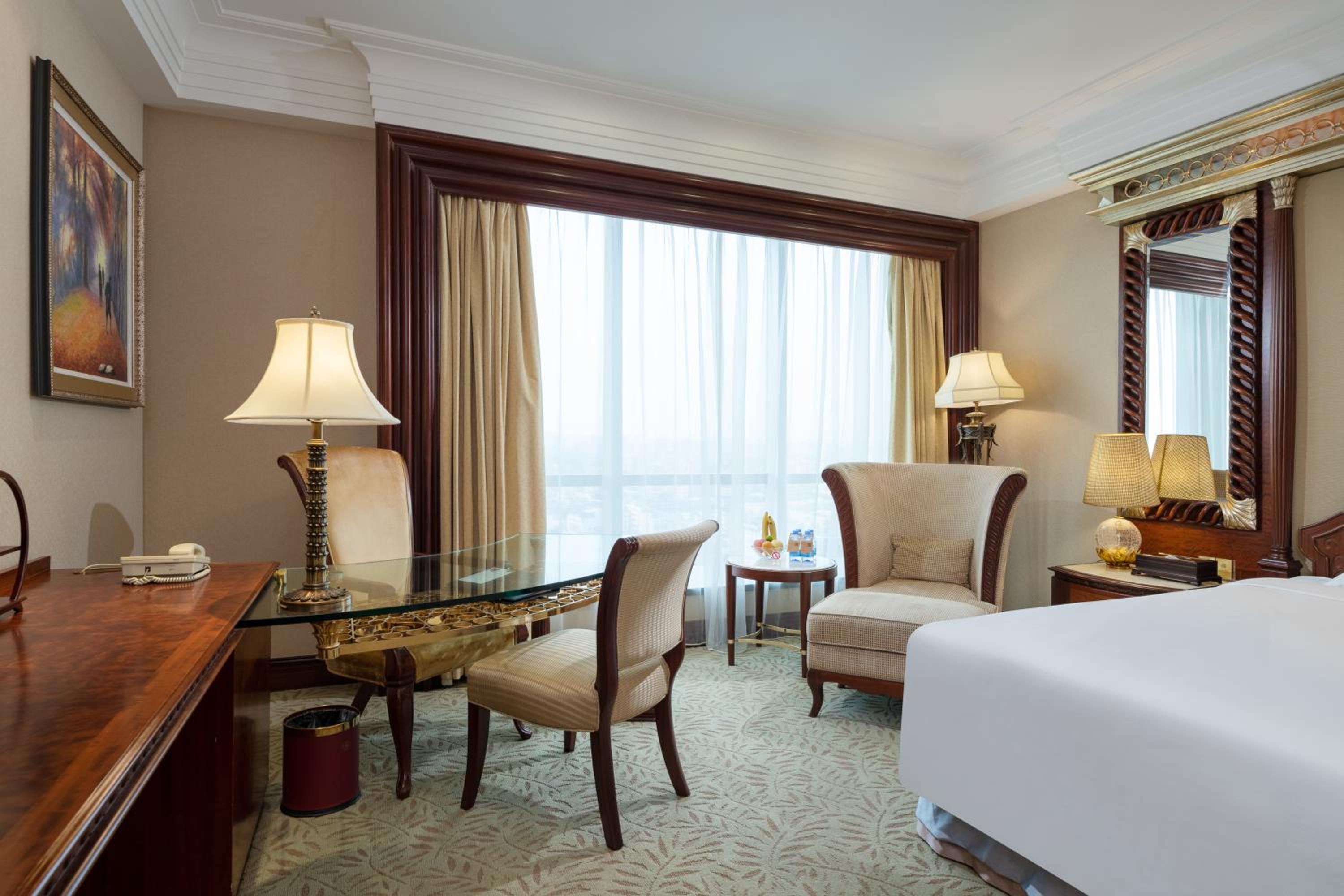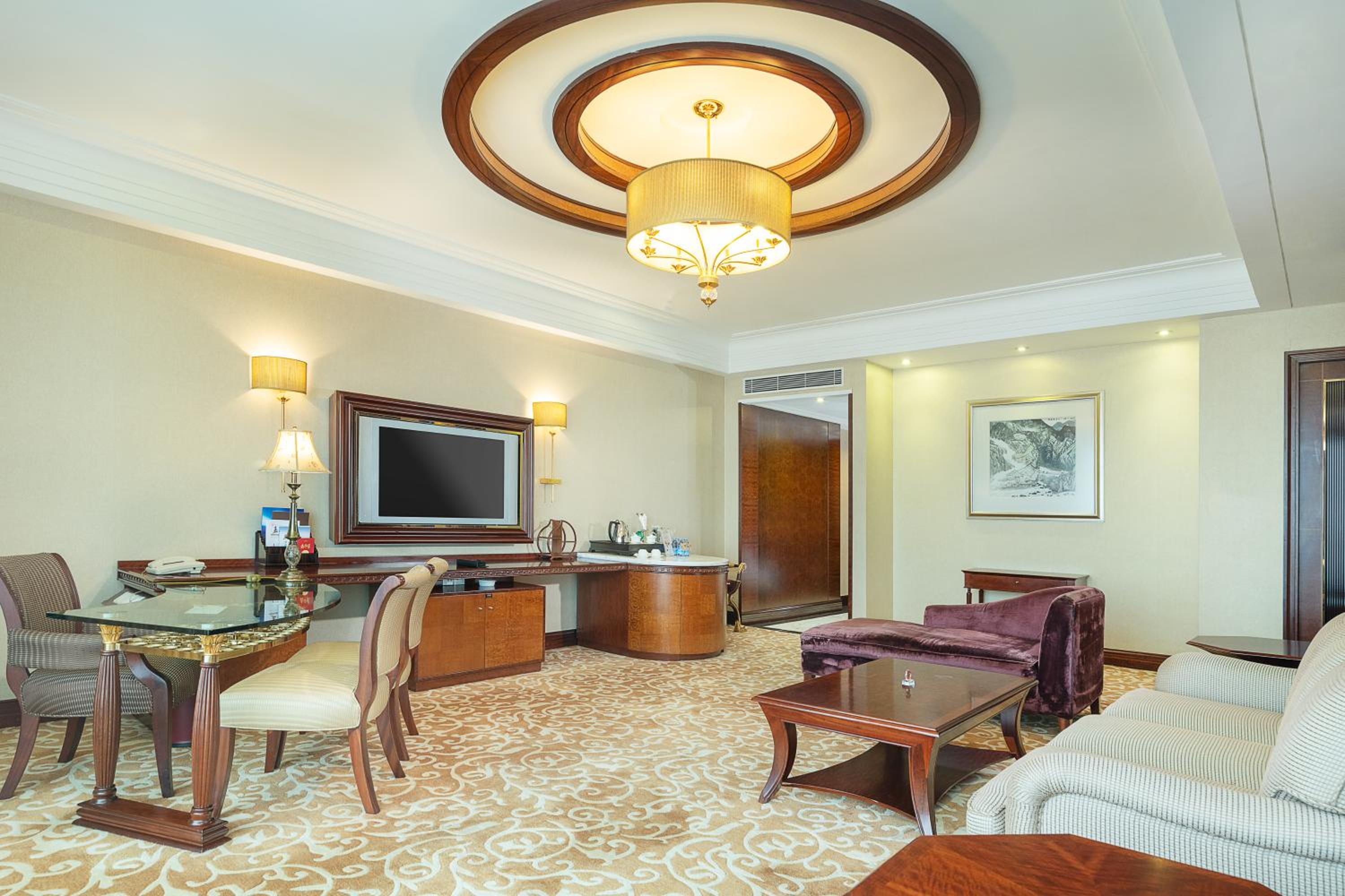 Indulge in a culinary journey at the hotel's 4 restaurants serving Chinese, Japanese, Italian, and Western cuisines. After dining, guests can enjoy drinks at the Peacock Bar or partake in recreational activities such as the fitness center, spa, nightclub, or karaoke room.