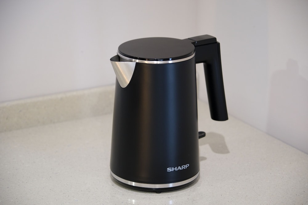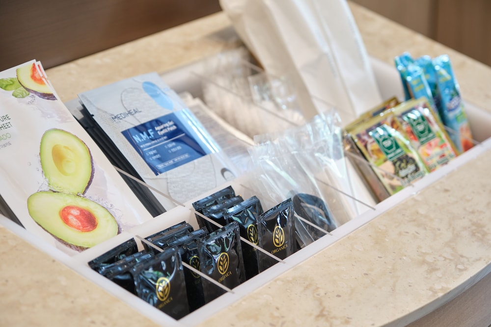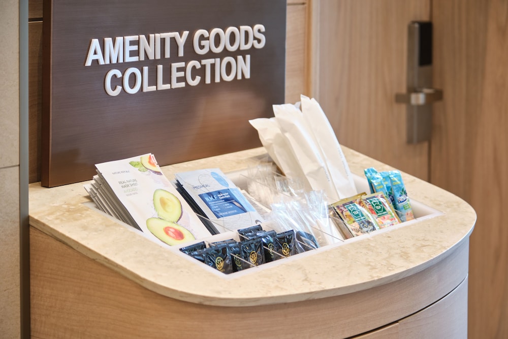 Tap water is filtered. The bathroom has no bathtub but it has a very high tech toilet seat. The room also has an air purifier/humidifier. Also a smart TV. Room accessories like toiletries & beverage sachets are available for top up at the lobby.