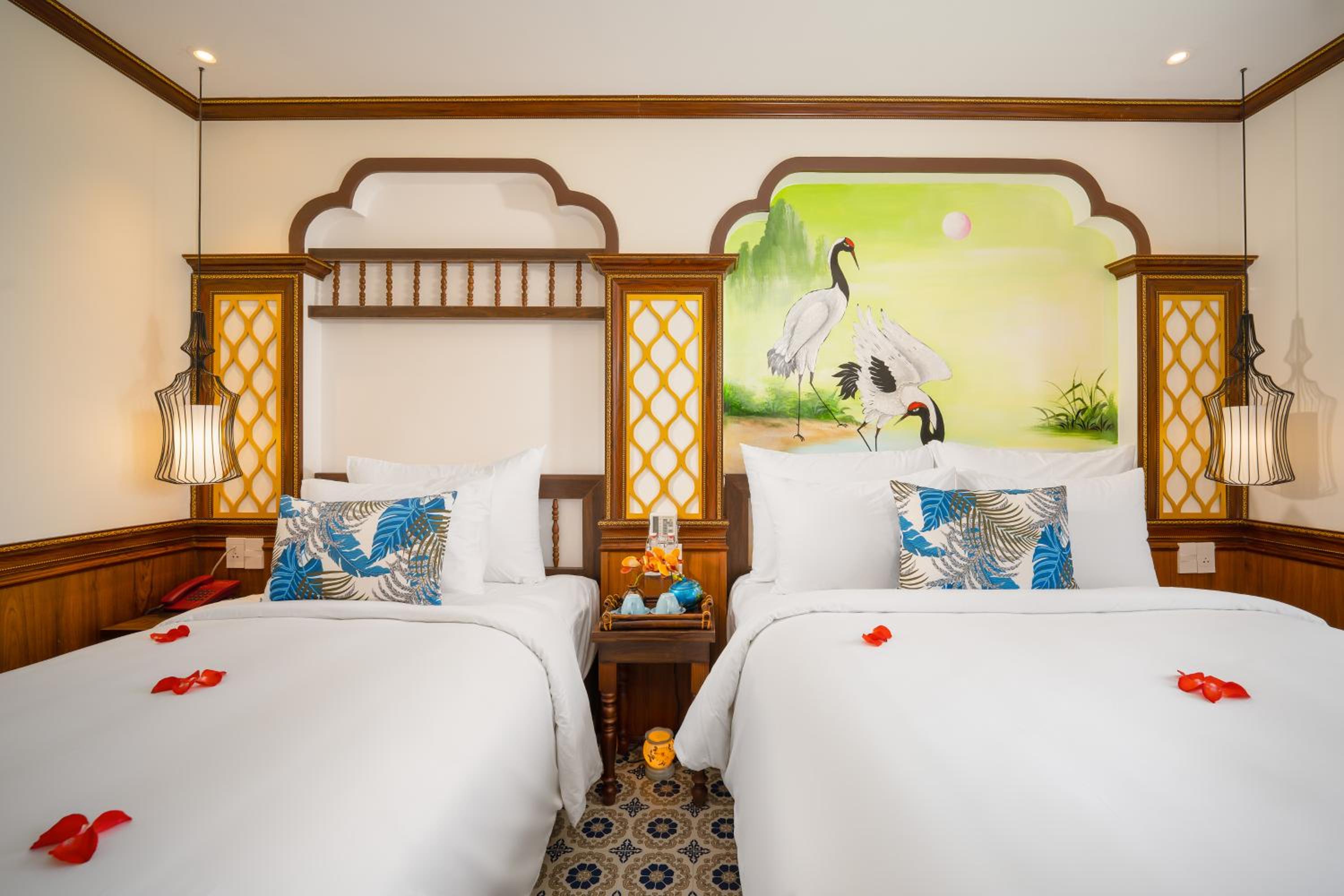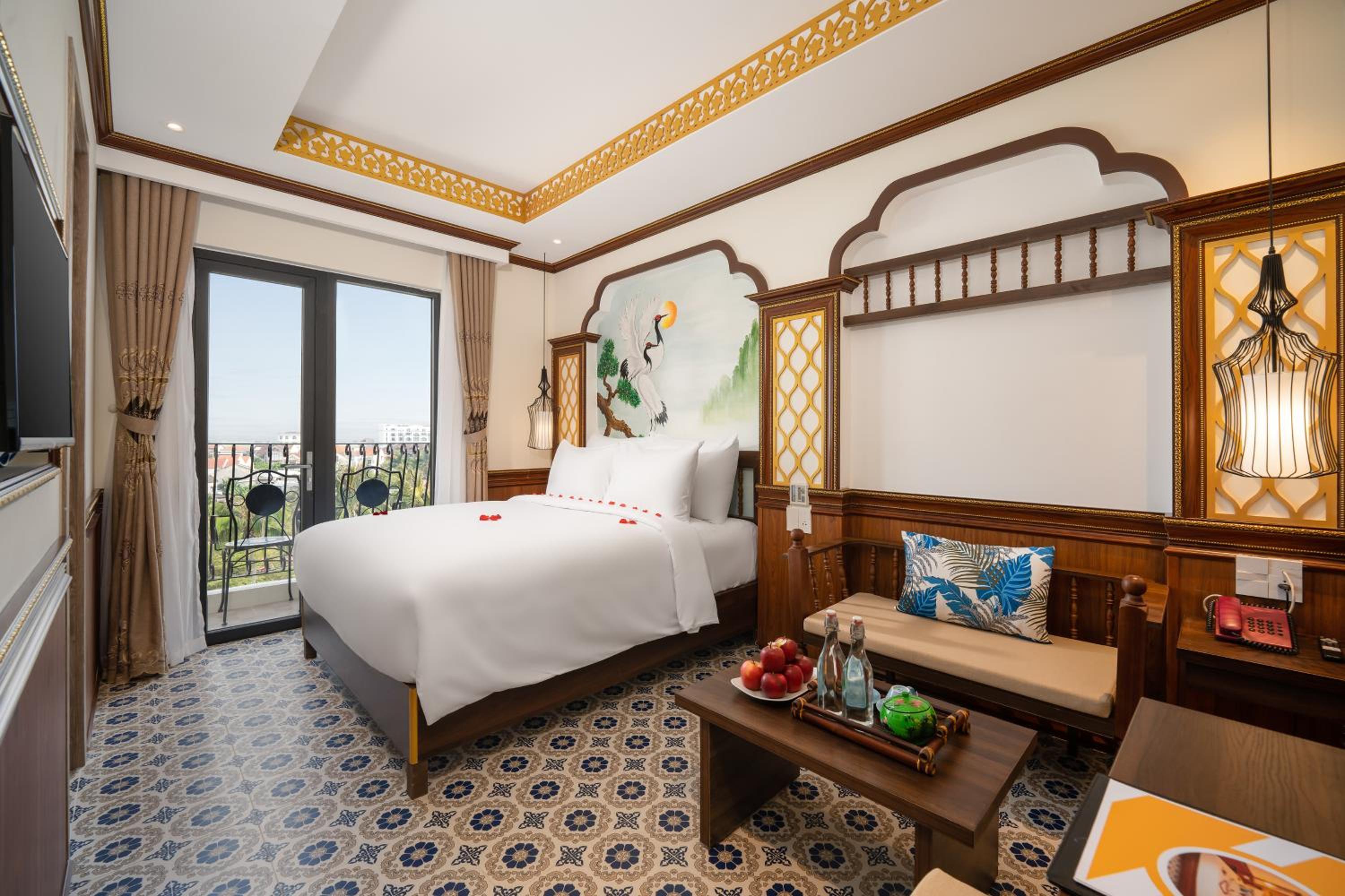Relax in style in our well-appointed rooms featuring modern amenities like air conditioning, flat-screen TVs, and private bathrooms. Some rooms offer balconies with city views for a truly memorable stay. Book now for a luxurious getaway at Hoi An Babylon Riverside Hotel & Spa.