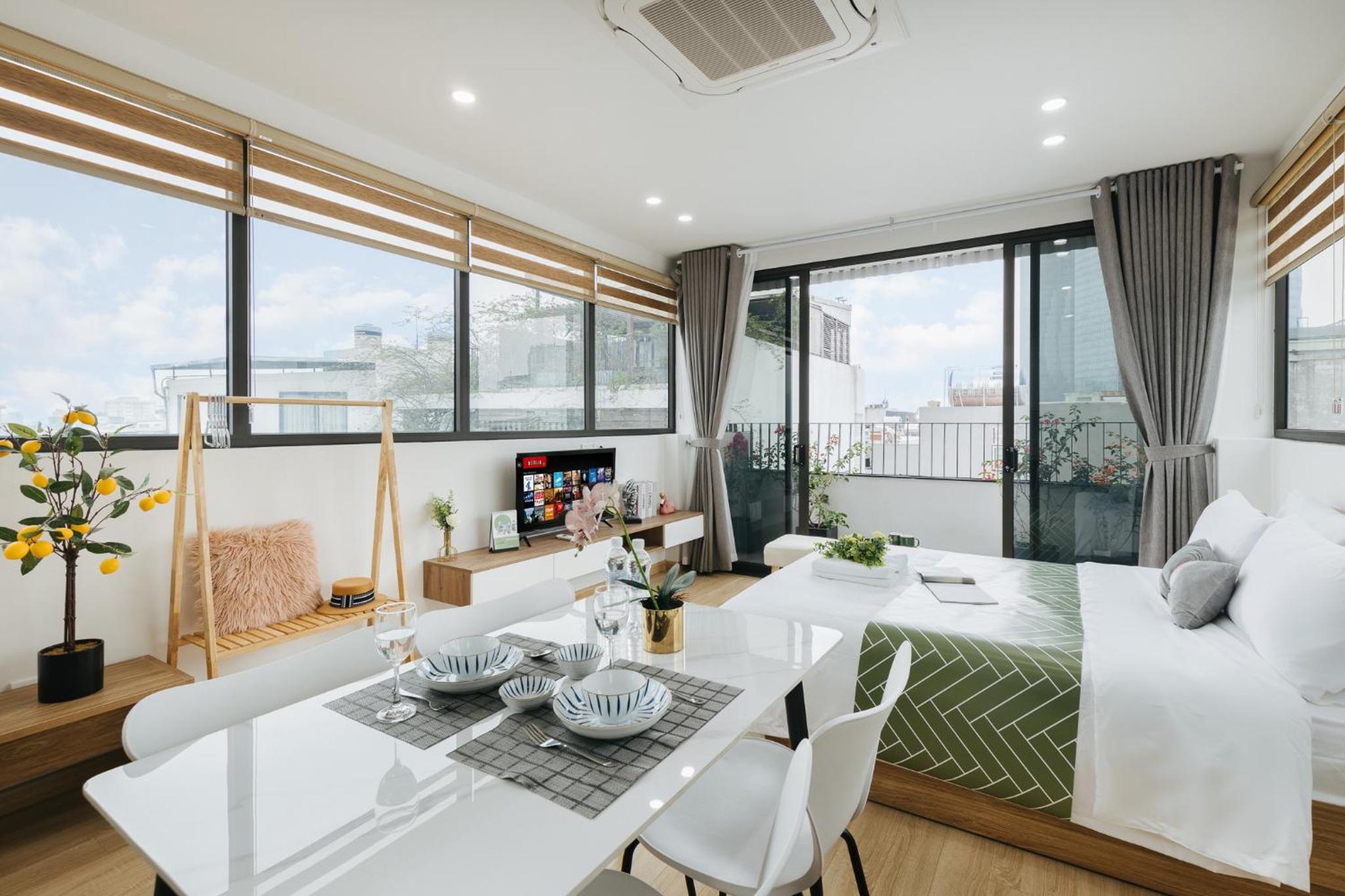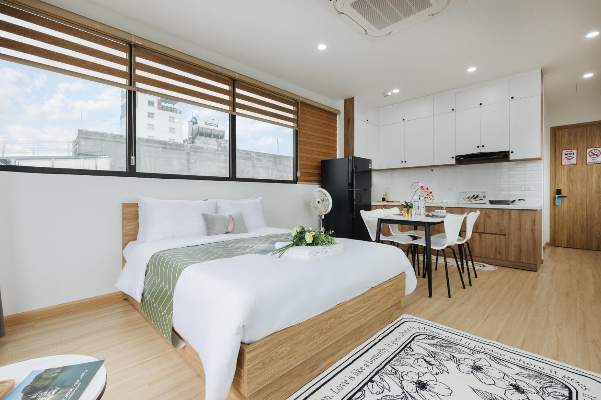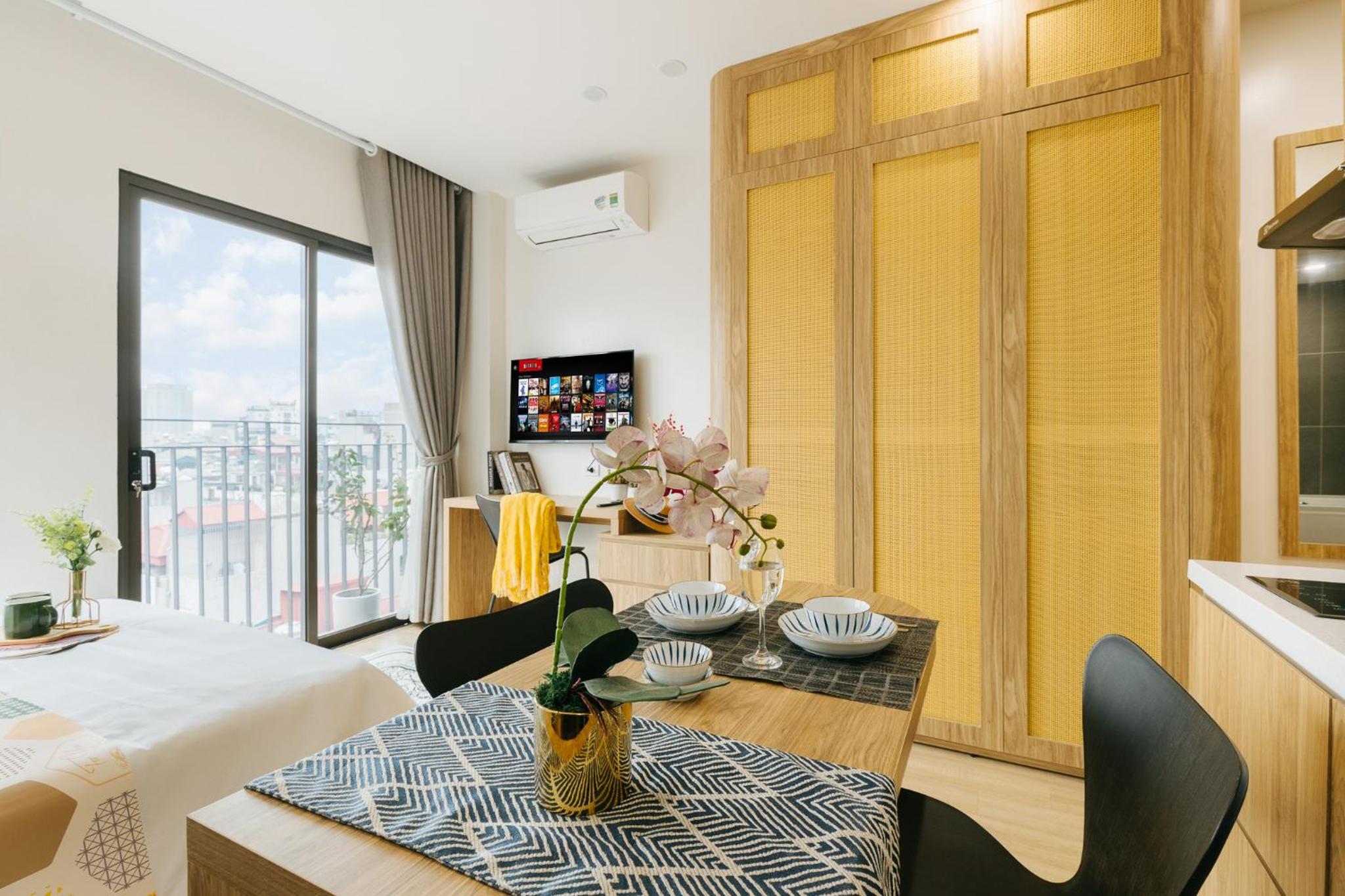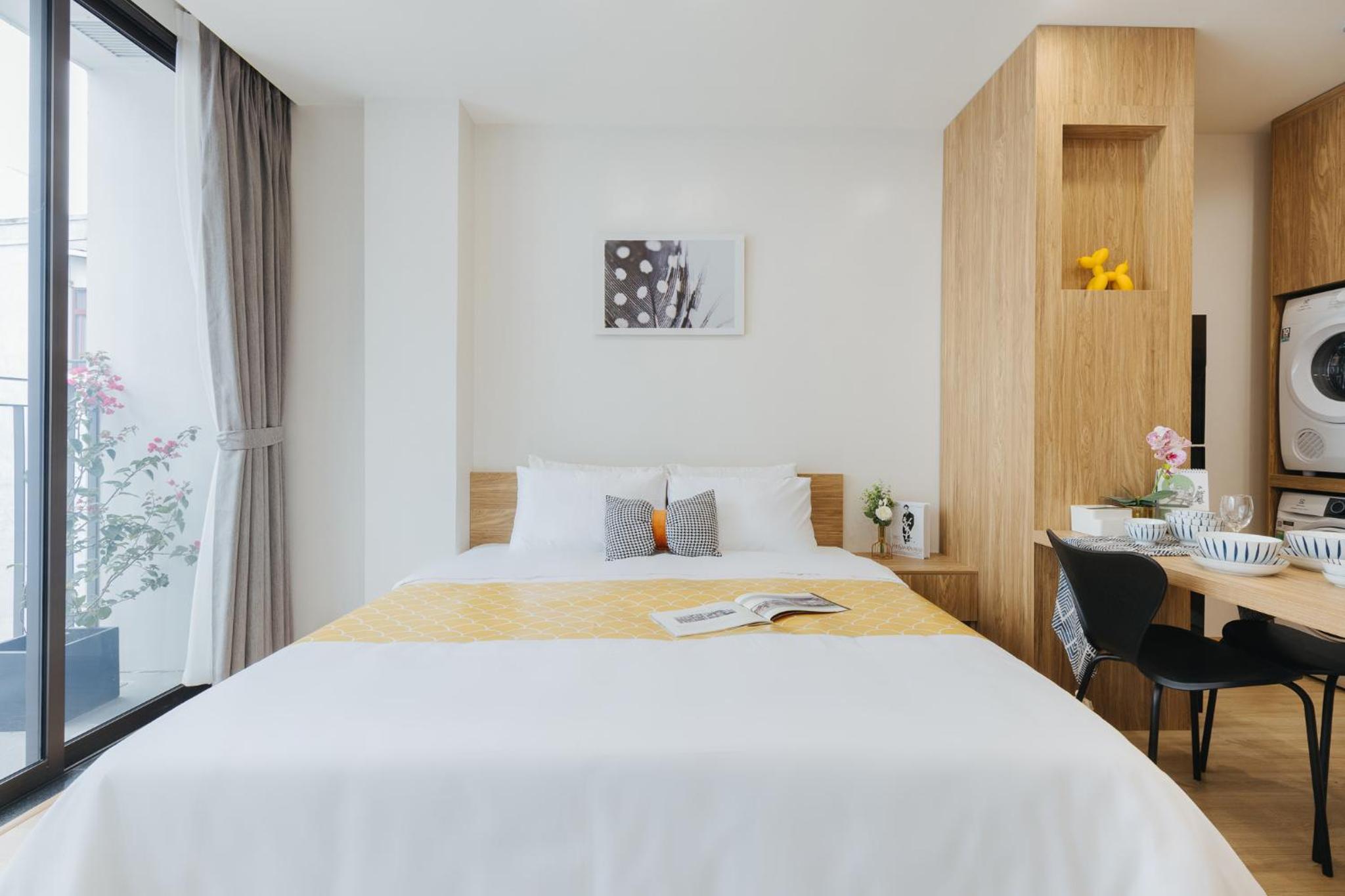 The studio is well facilitated. The location is great, where I can find numerous restaurants and markets around it. The staff are very kind and helpful. Shall you have a short or long-term trip in Hanoi, this studio will be your best option.