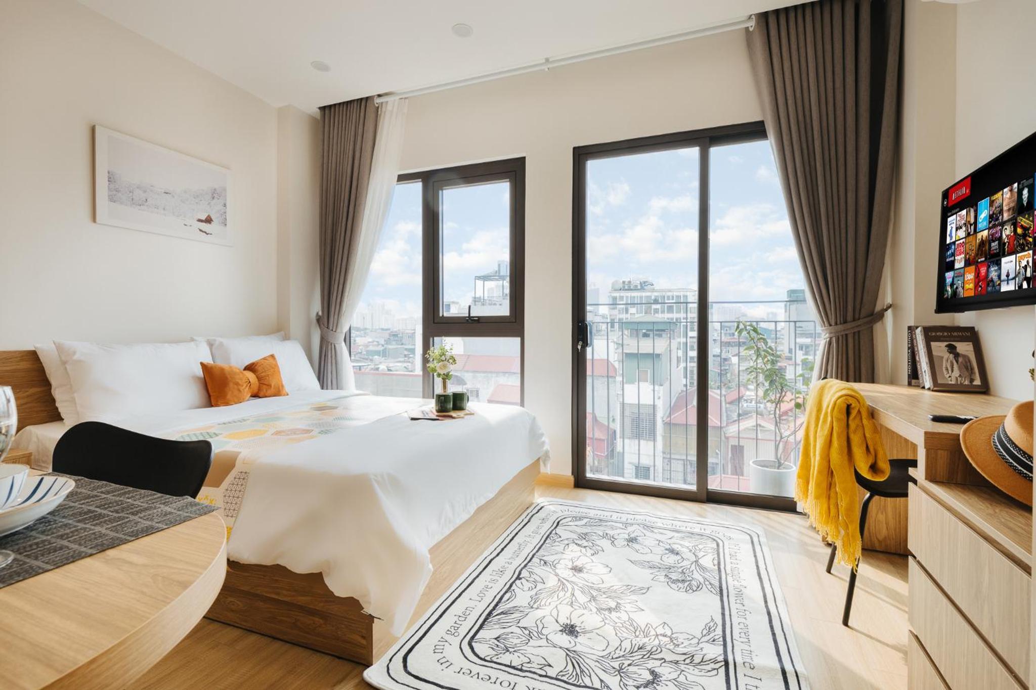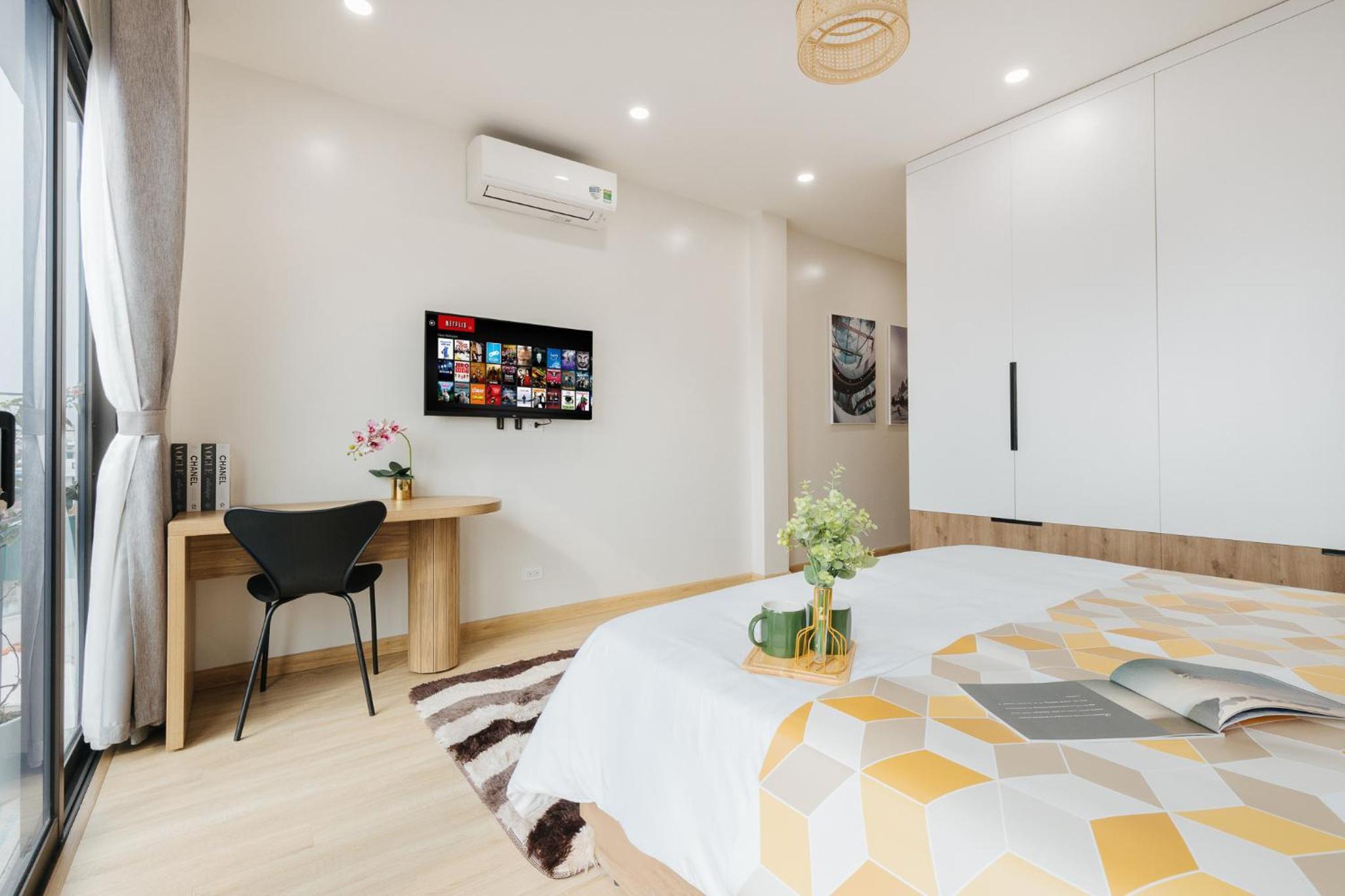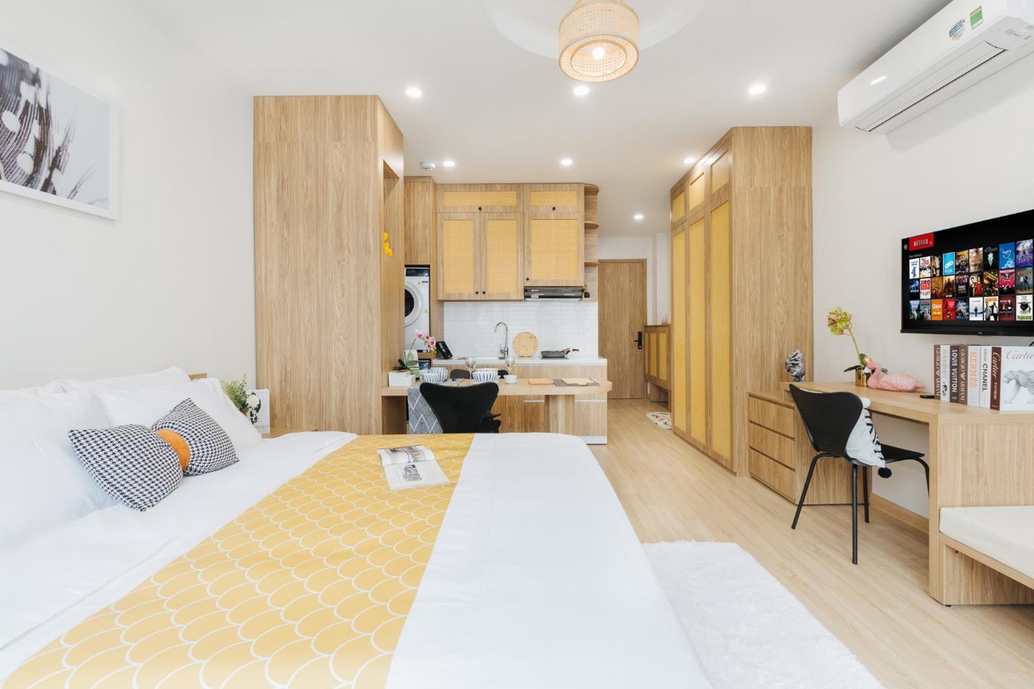 The studio is well facilitated. The location is great, where I can find numerous restaurants and markets around it. The staff are very kind and helpful. Shall you have a short or long-term trip in Hanoi, this studio will be your best option.