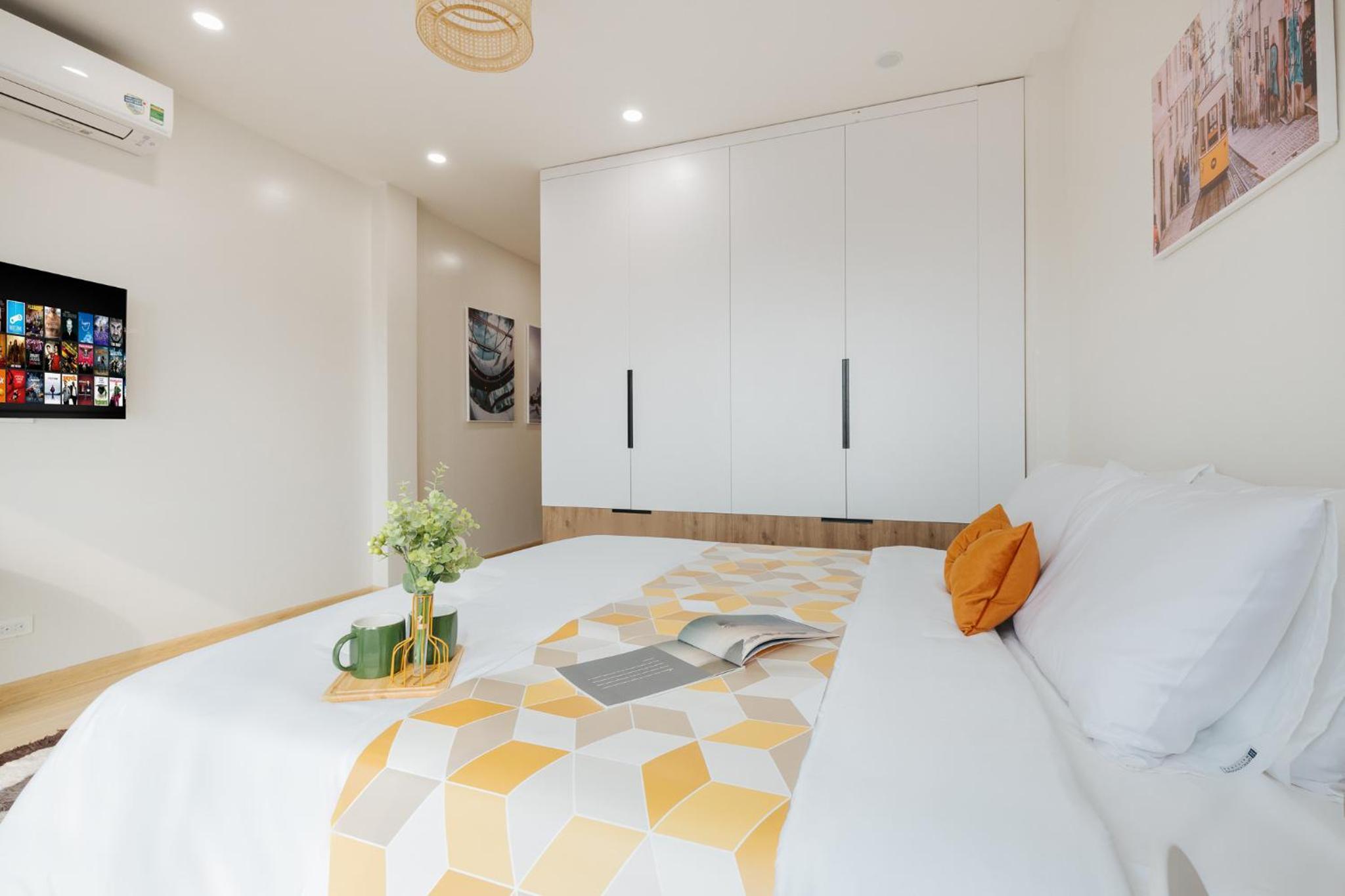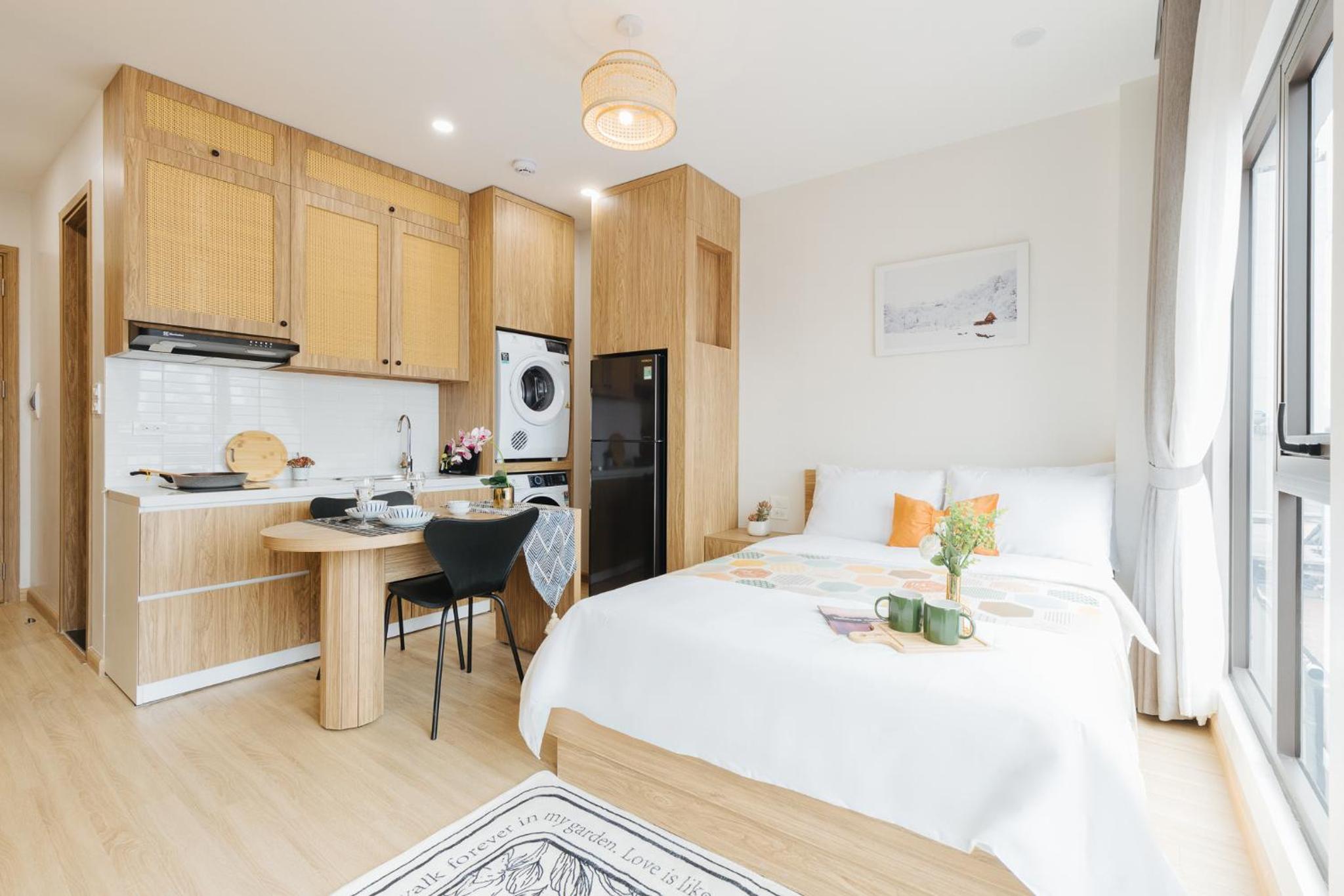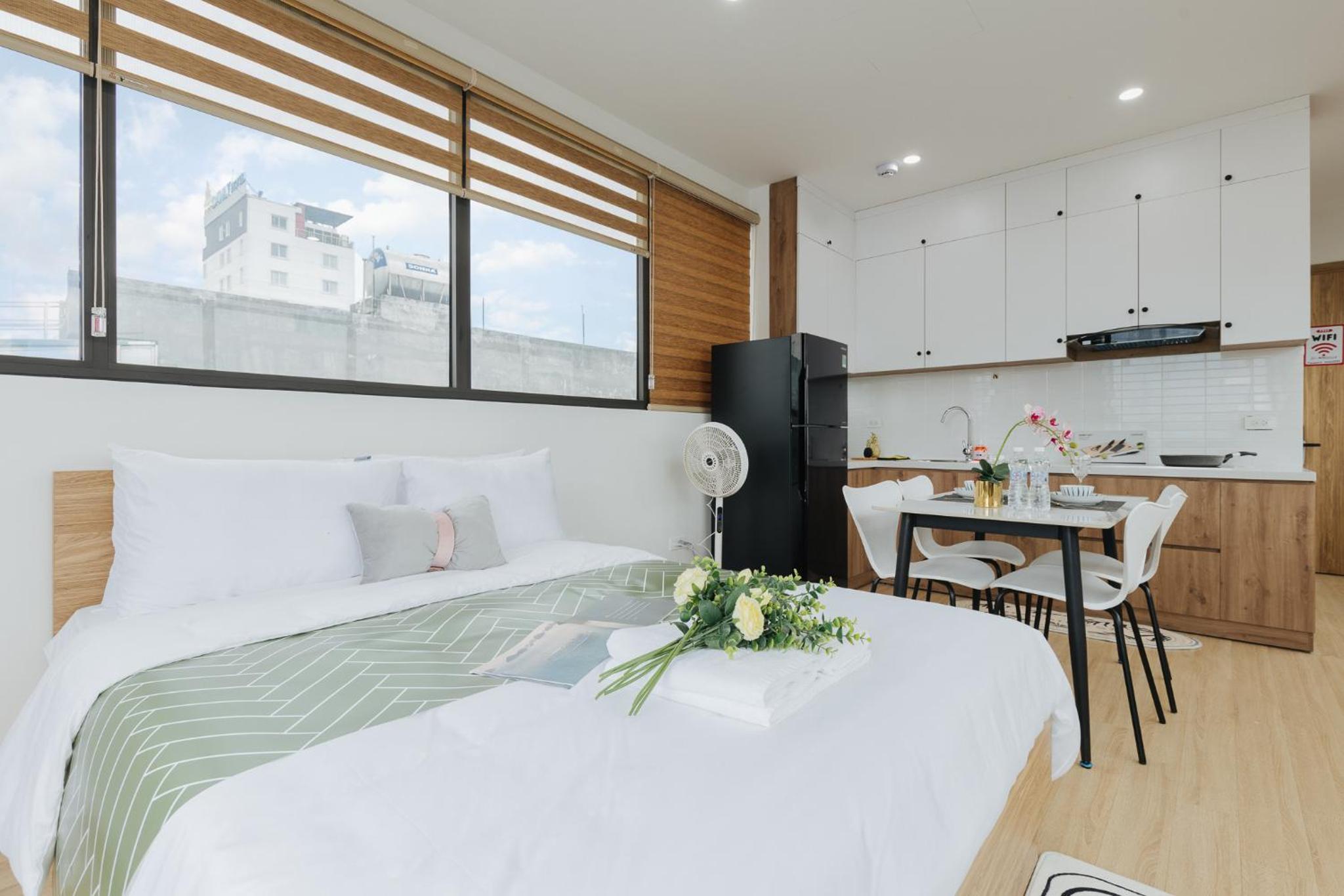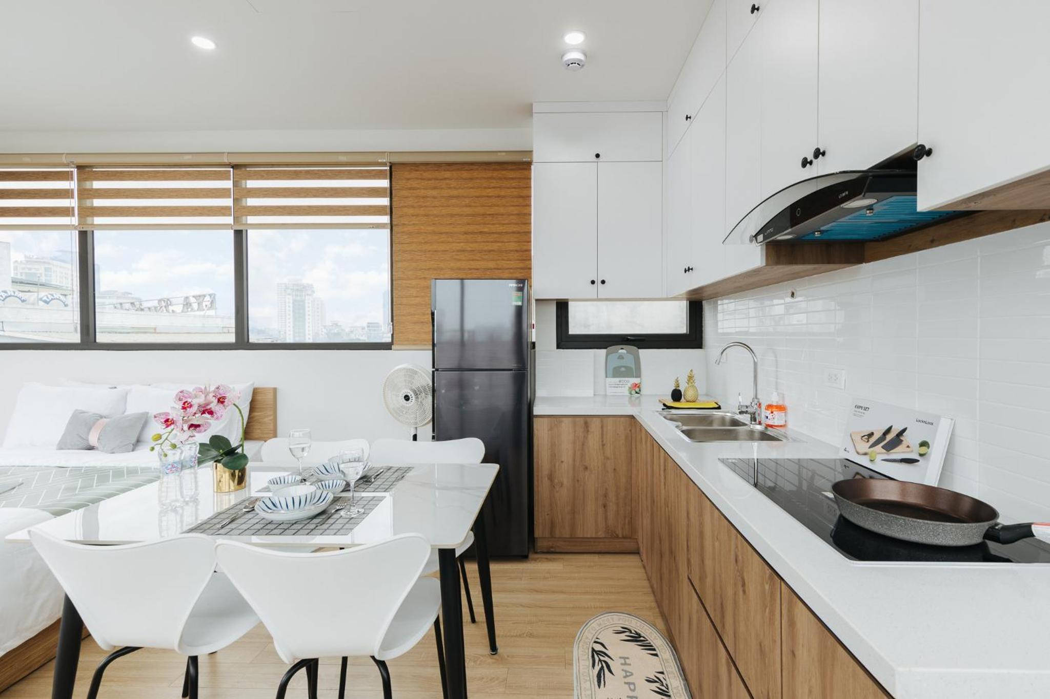 The studio is well facilitated. The location is great, where I can find numerous restaurants and markets around it. The staff are very kind and helpful. Shall you have a short or long-term trip in Hanoi, this studio will be your best option.