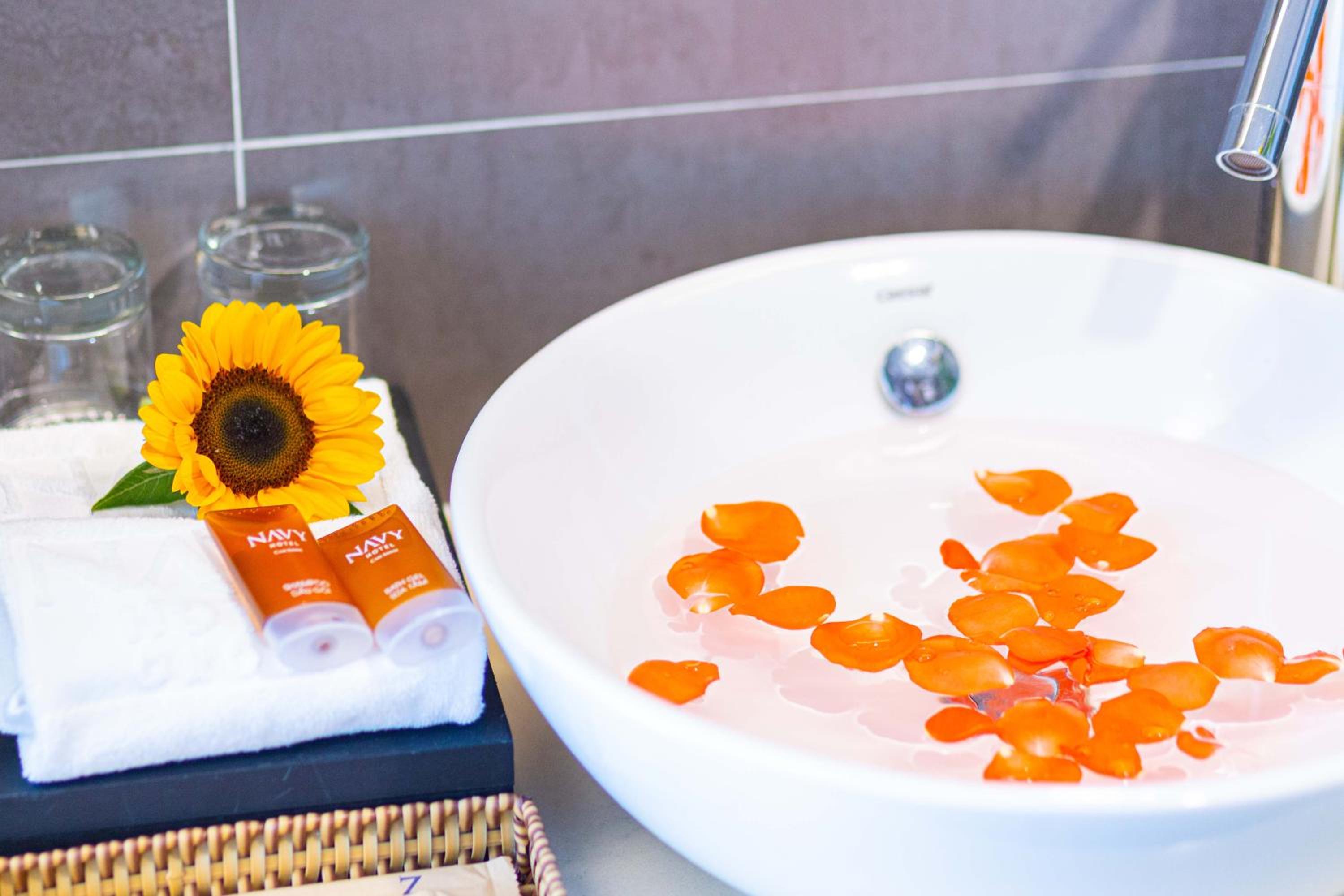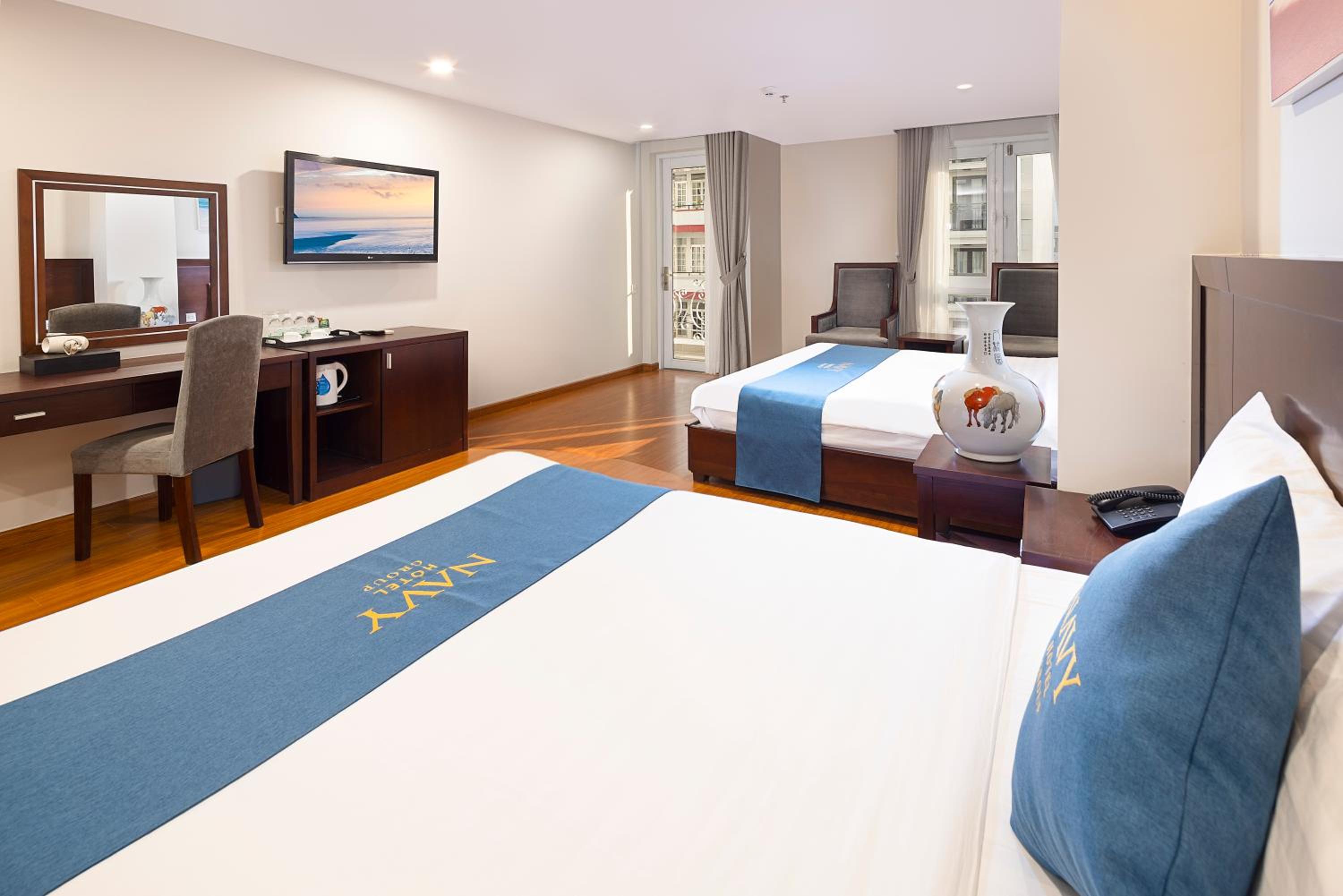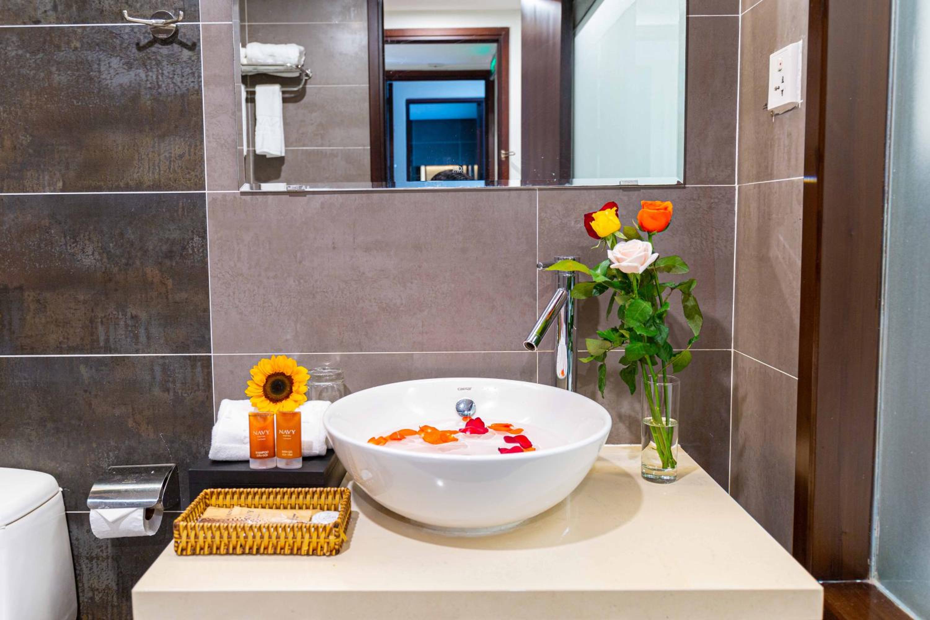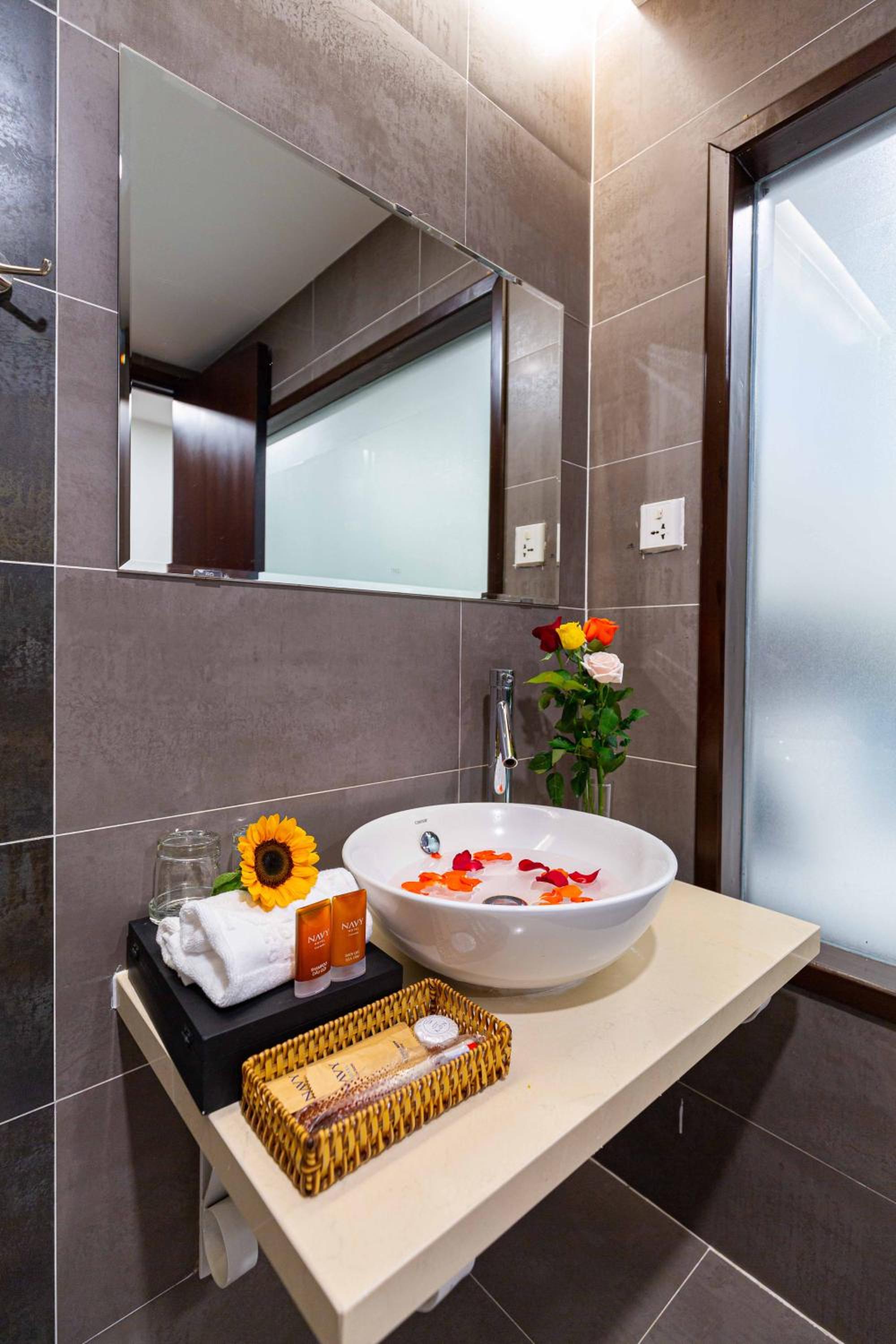 Navy Hotel Nha Trang offers air-conditioned rooms with modern amenities such as flat-screen TVs, minibars, and private bathrooms, ensuring a comfortable stay for guests.
