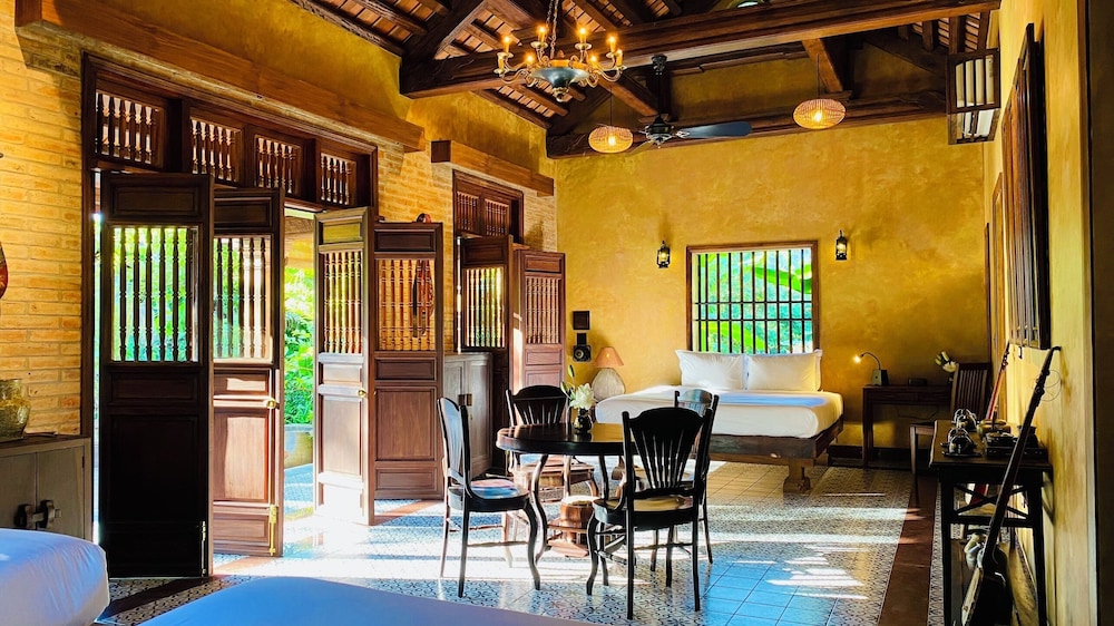 The grounds are beautiful. Peaceful serene setting. Our family house was immersive in Vietnamese culture with antique furniture and decor. Unfortunately, upon the morning we checked out, they accused us of stealing an antique fan. My son showed them the location on the counter in the room. Very awkward departure experience.