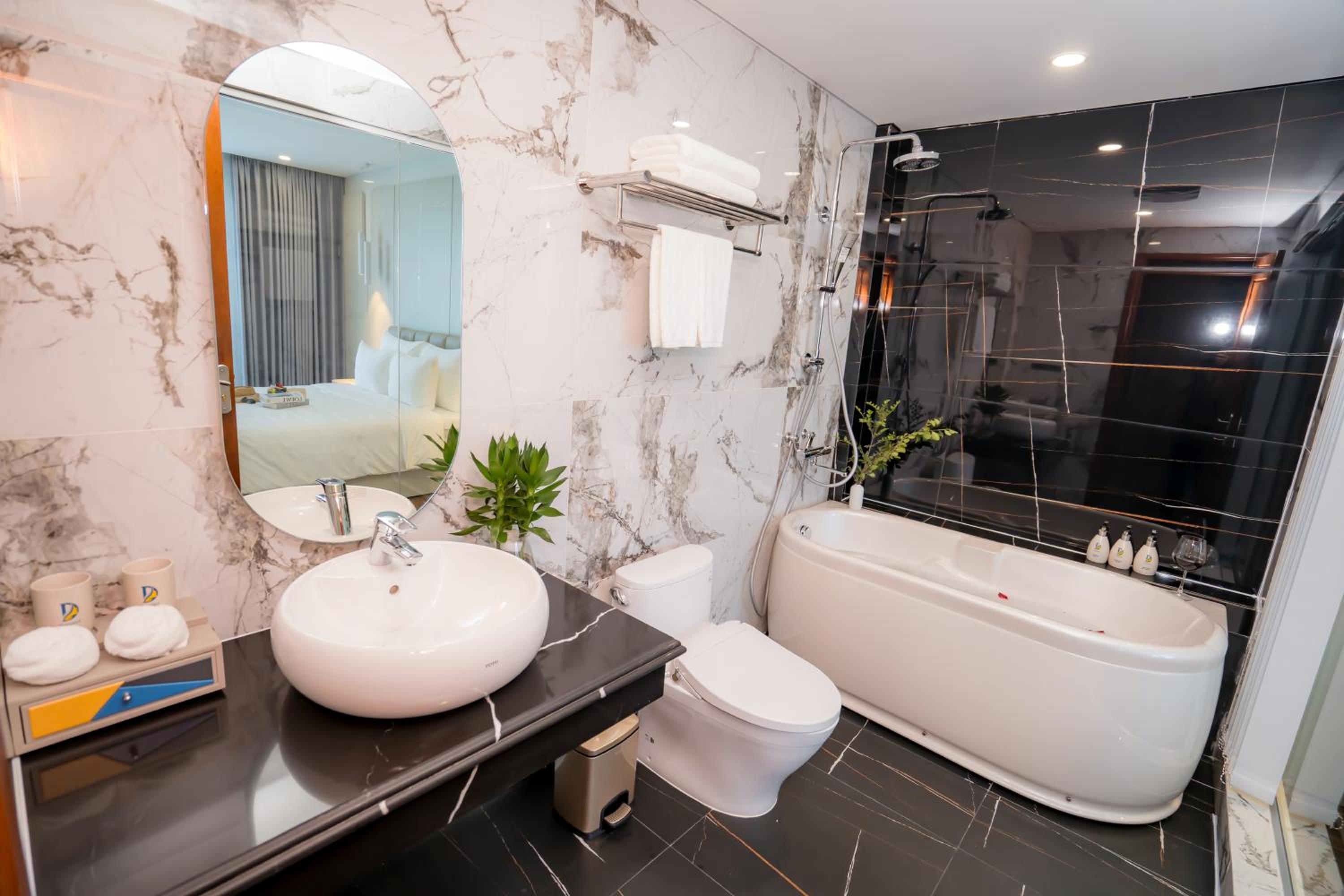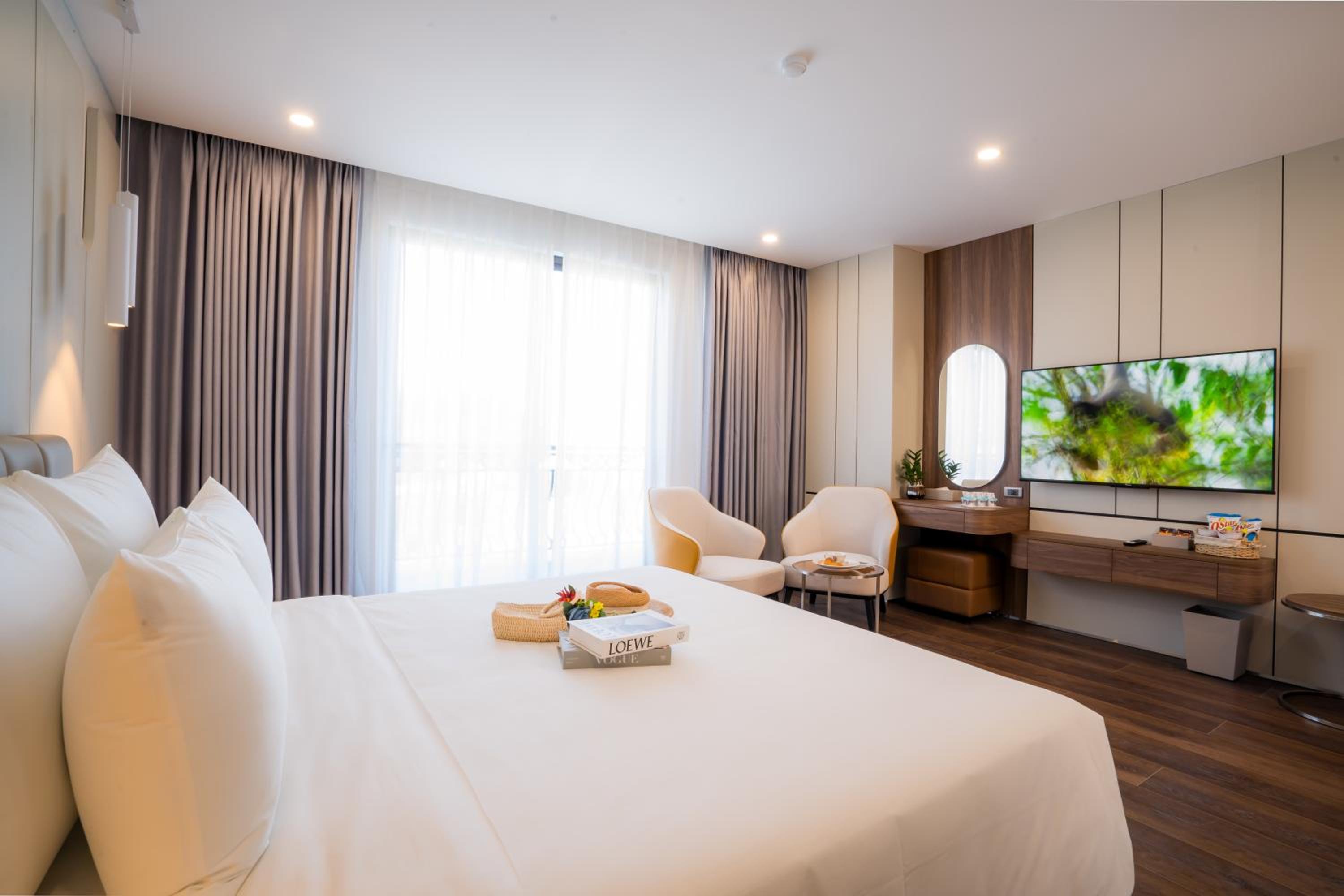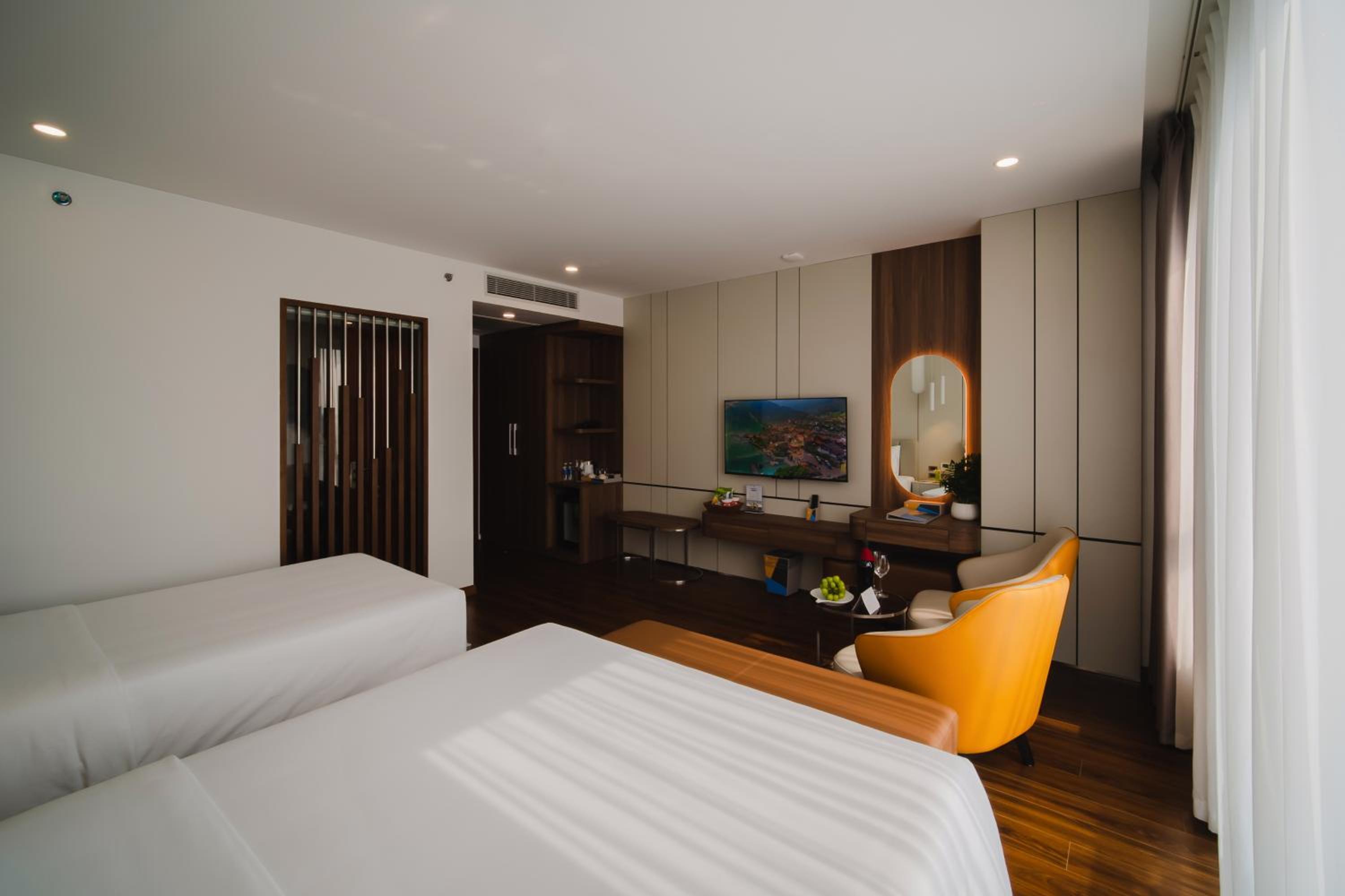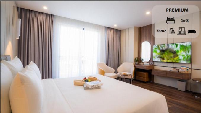 Danitel Halong, located in Ha Long, offers a 4-star experience just 700 meters from Bai Chay Beach. The hotel boasts an outdoor pool, free private parking, and a restaurant. Each air-conditioned unit features modern amenities like a flat-screen TV, safety deposit box, and private bathroom with free toiletries. Some rooms even offer balconies with city views.
