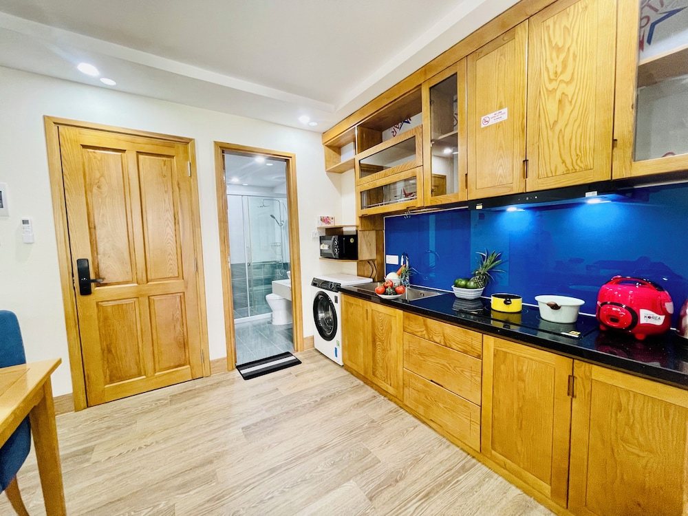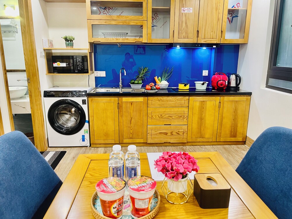 Firstly no receptionist to greet you, on entering unit the 2 sinks coated in grease, no cutlery, no dish washing liquid, requested extra pillows & was given answer only 2 per unit, floor not swept, food from previous tenant still in fridge, shower window ledge covered in mould, wifi ended at level 6, very noisy hard bed- can send pictures if needed - would not advise anyone to stay here - we have had 5 units while in Vietnam this holiday & this is beyond belief