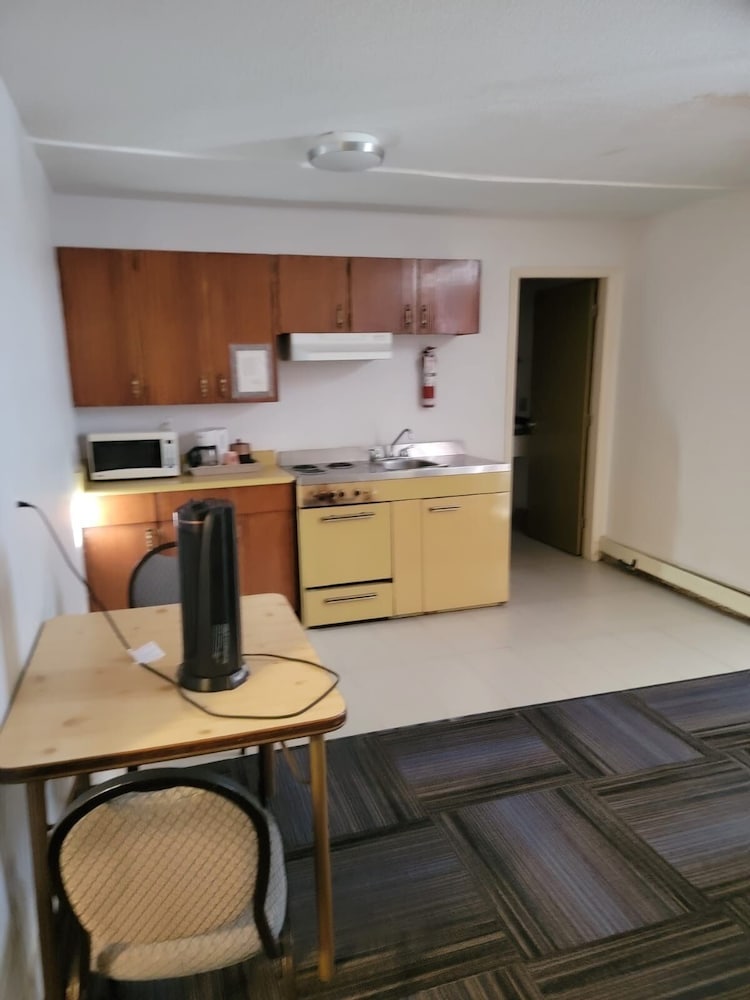 We had a kitchenette. It was lacking dishes and utensils. The hot water took a long time to come from the kitchen sink. Could not find the thermostat. Our room was cold. Had to ask for dish towels. The light in the bathroom was dim. Had to smack it to work. Missing lights in the main room. And the oven didnt work. Only two stove top burners worked.