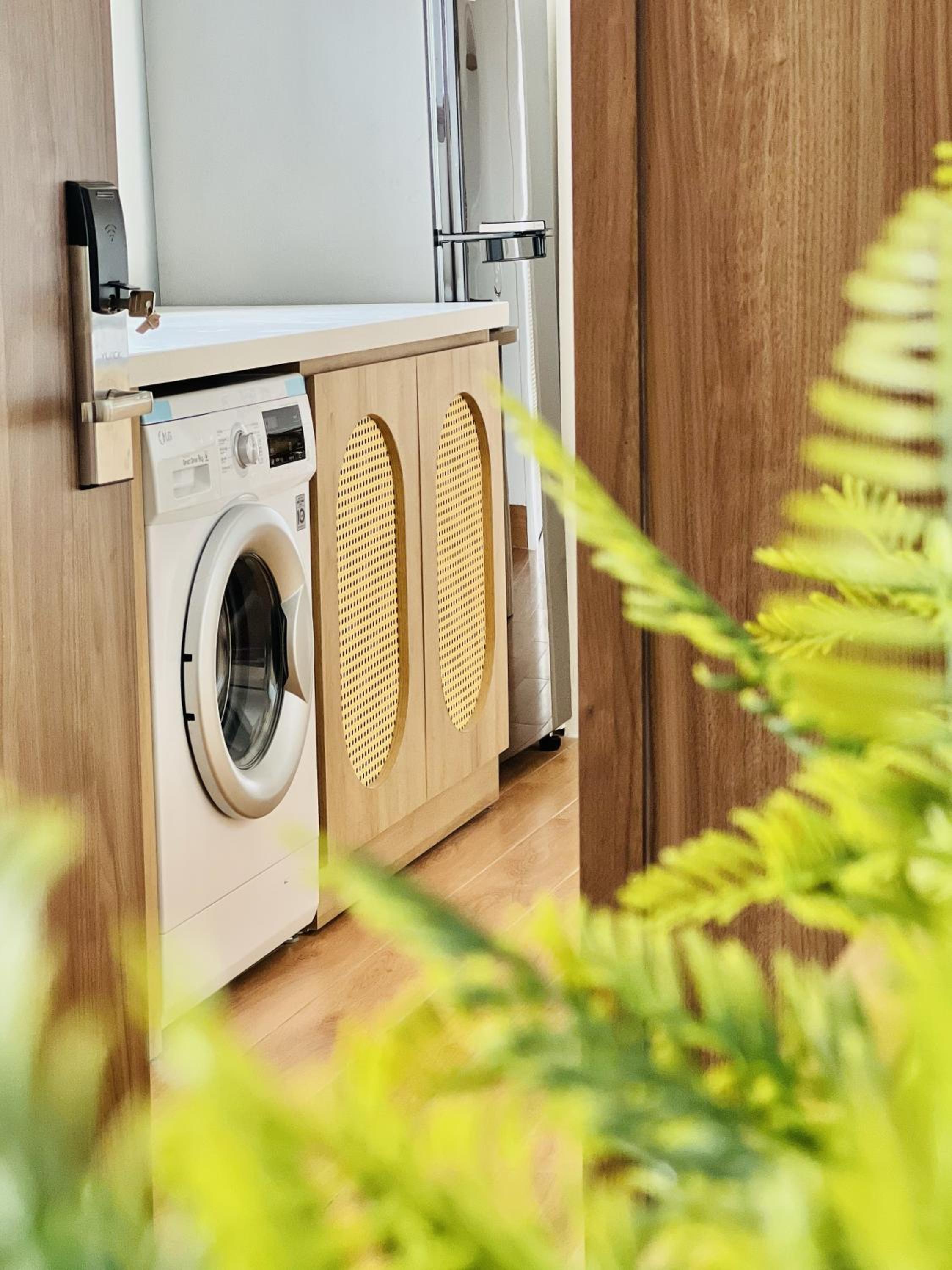 為公寓式飯店,含有廚房、客廳、洗衣機(洗衣球需自行付費)和烘衣機,是一個適合久住的飯店
