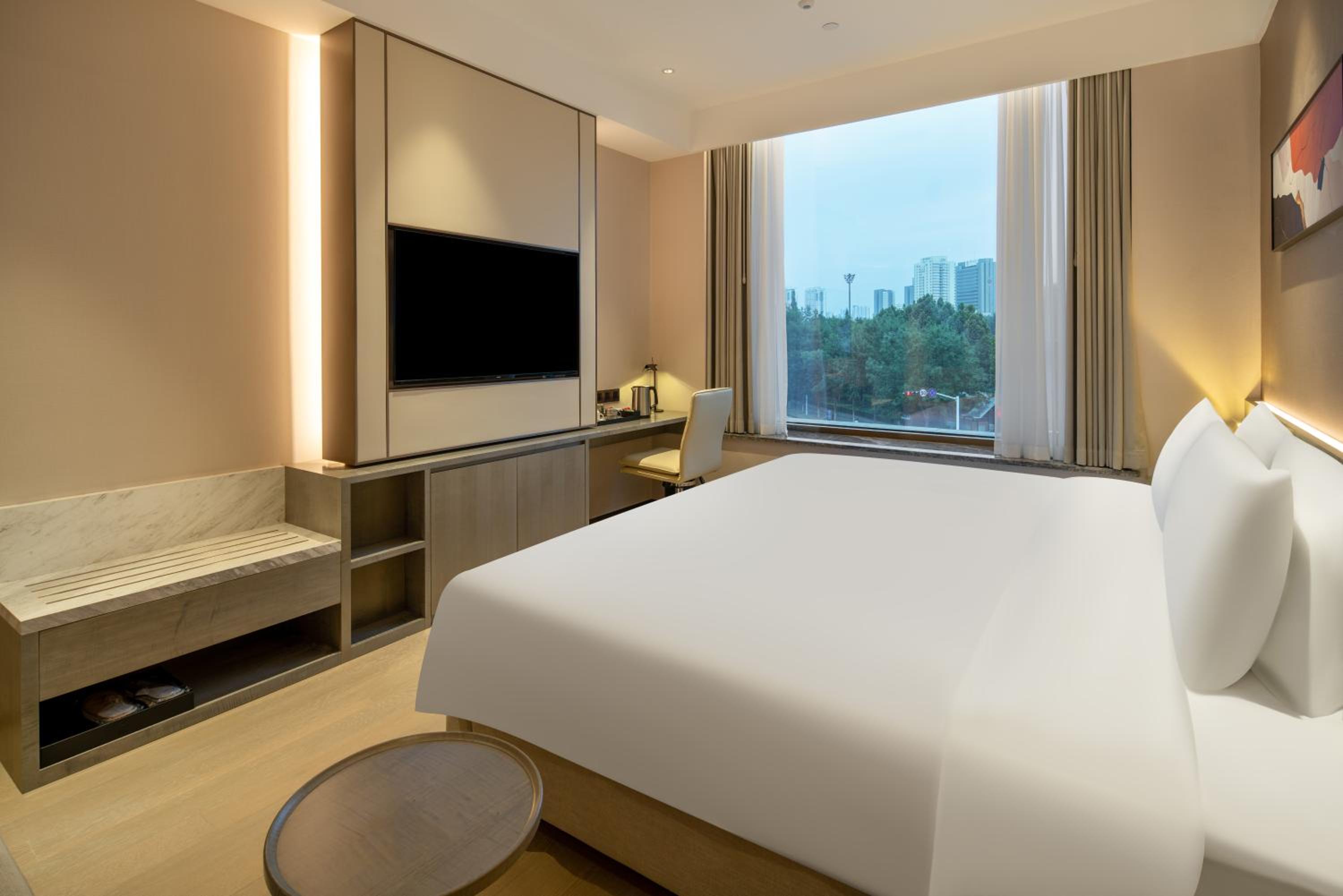 Experience comfort and elegance at Hyatt Place Linyi People Square with spacious rooms featuring modern amenities like air conditioning, flat-screen TVs, and private bathrooms. Some rooms even offer stunning city views, adding a touch of luxury to your stay.