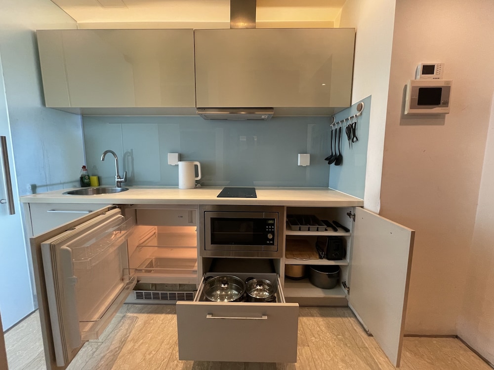 Relax in the air-conditioned apartment with a fully equipped kitchen and complimentary wired and wireless internet. Housekeeping is provided weekly for a hassle-free stay.