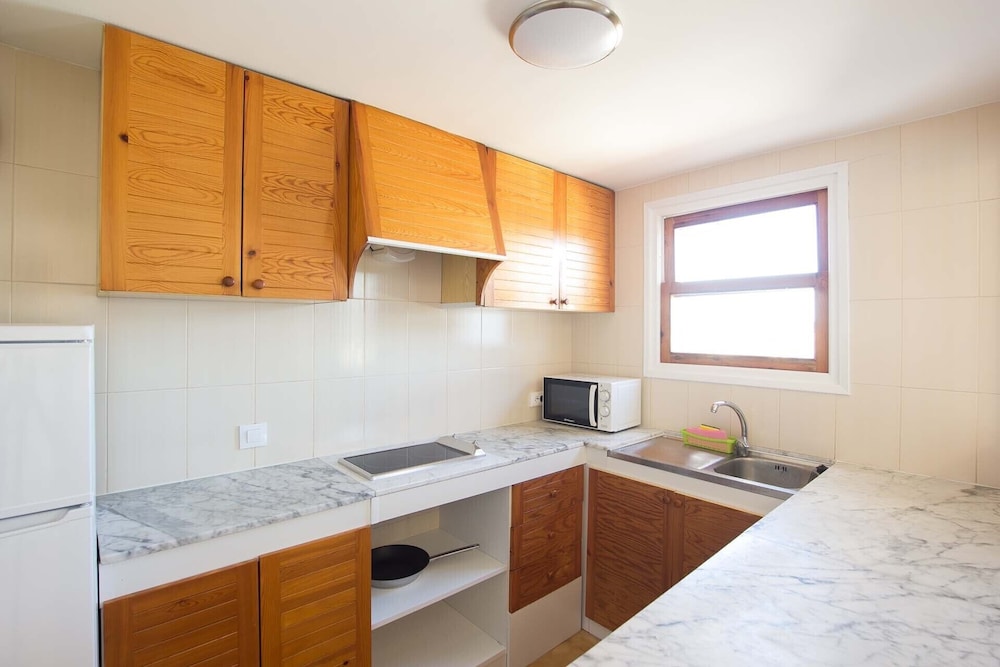 Cuando llegamos, menos mal q estaba la señora de la limpieza porque solo había un cartel que si llegabas más tarde de las 12 de la noche, tenias q llamar pero antes……Nos mintieron con la wifi, nos dijeron que no había y cuando le dijimos que se que tenía, nos dieron las claves, es algo que me sentó fatal, que me tratará como tontos y no funciona, la necesitaba por trabajo, nos quejamos y no lo arreglaron, además apenas teníamos cobertura. El mobiliario bastante estropeado y con lo que se paga podría estar mejor. El apartamento un poco antiguo. Y la limpieza podría ser mejor, sobre todo en la cocina. Había dos aparatos de aire acondicionado en el salón y una de las habitaciones, pero en las dos del fondo no y hacia un calor….. no llegaba el fresco. Lo único bueno la piscina.
