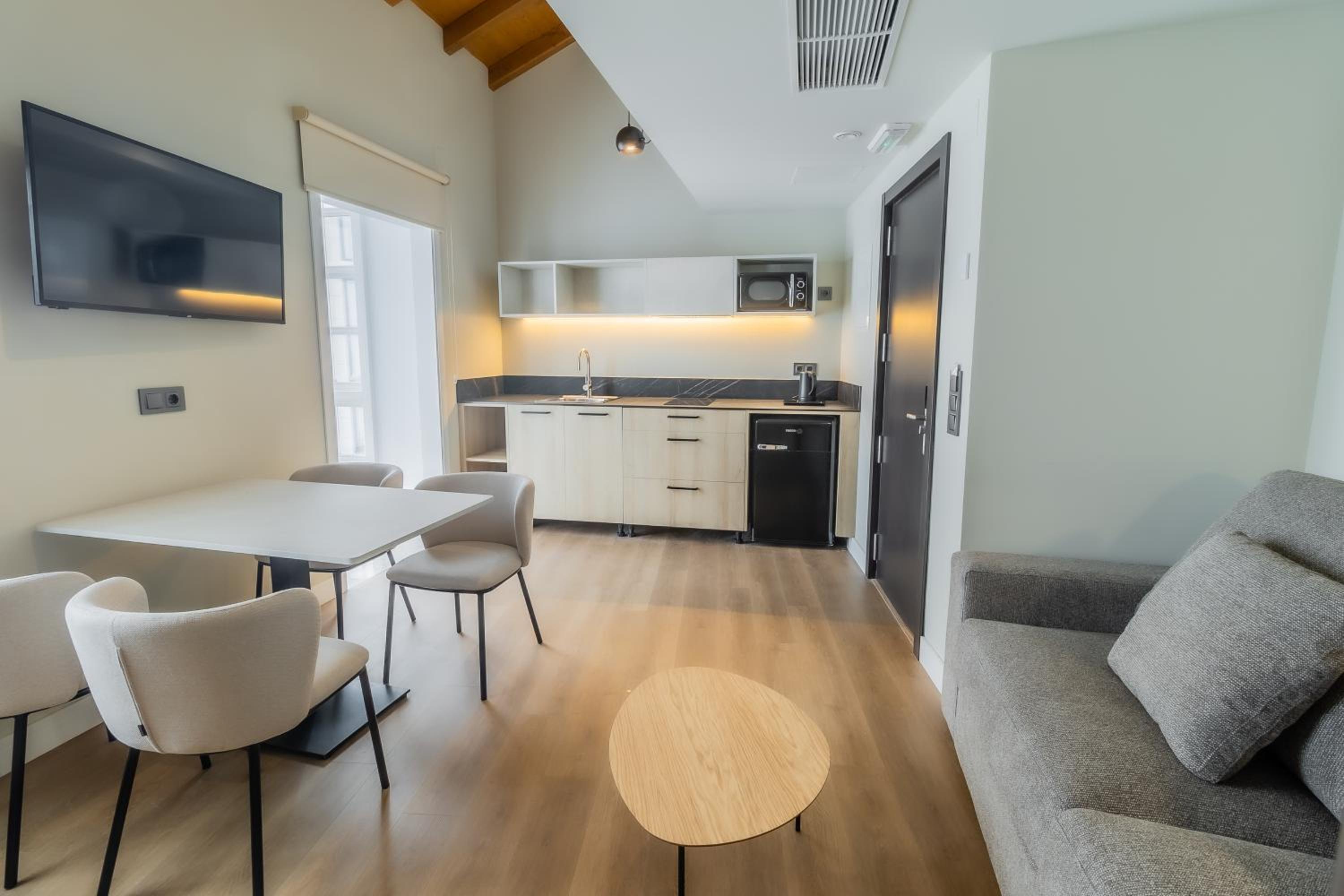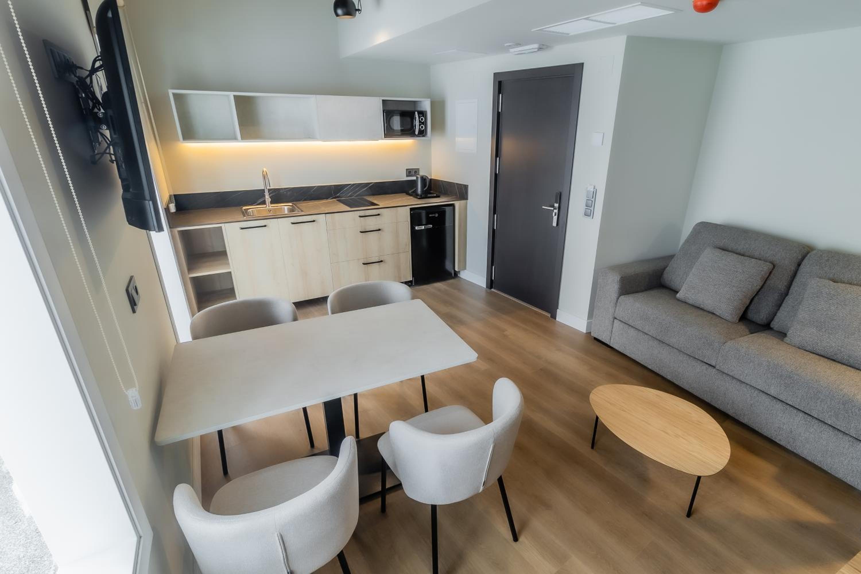 No nos gustó que el mini apartamento tuviera cocina pero no tenía nada de menaje, ni un plato , ni una sartén , ni cazo, ni paño de cocina , ni cubiertos. Solo tenía 4 vasos con 4 servilletas y una tetera para calentar el agua y unas infusiones.