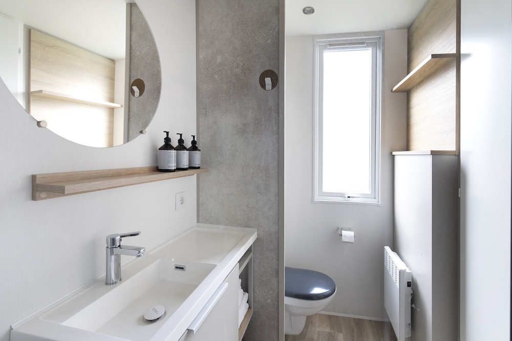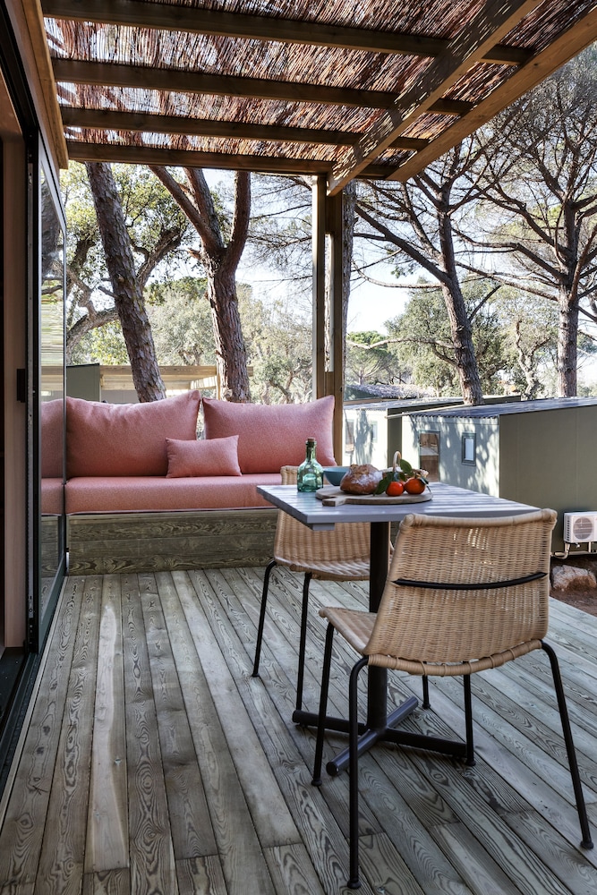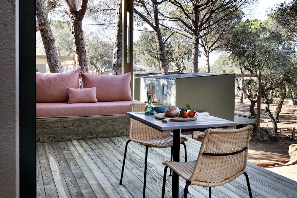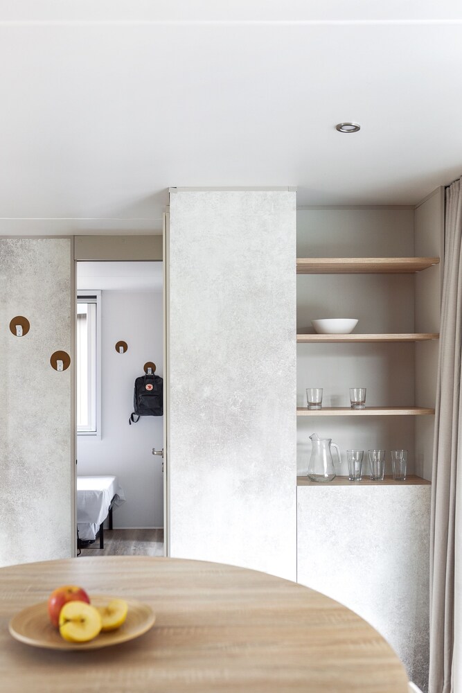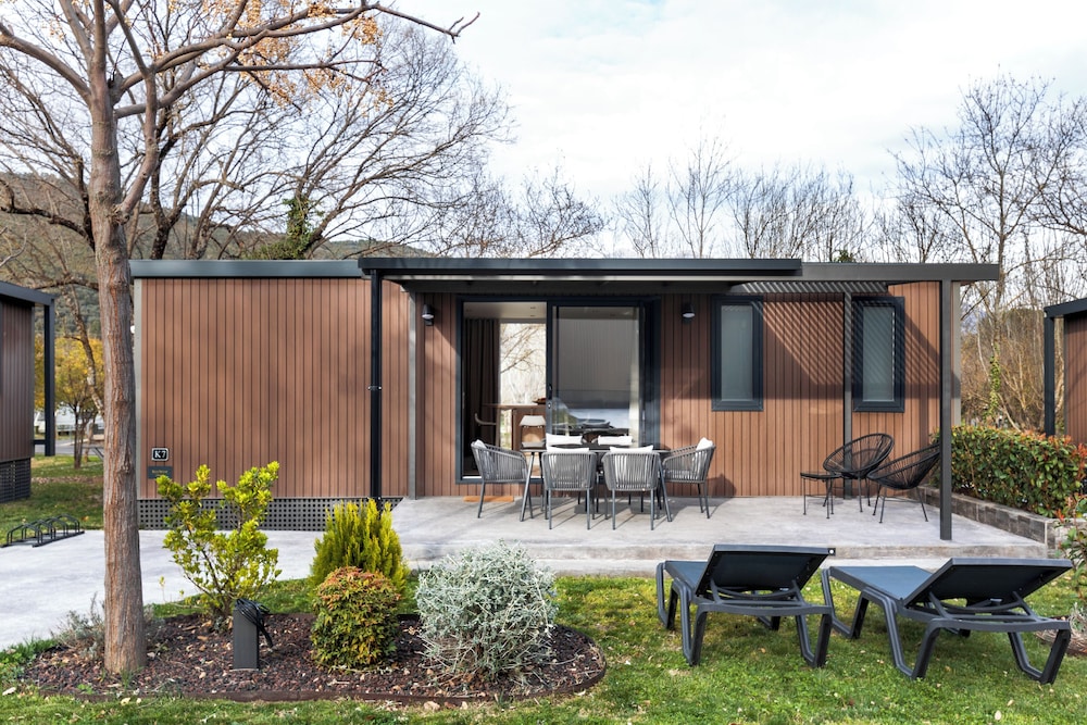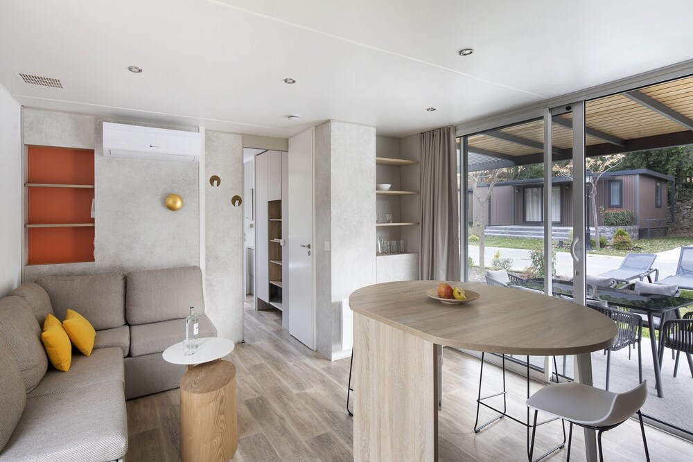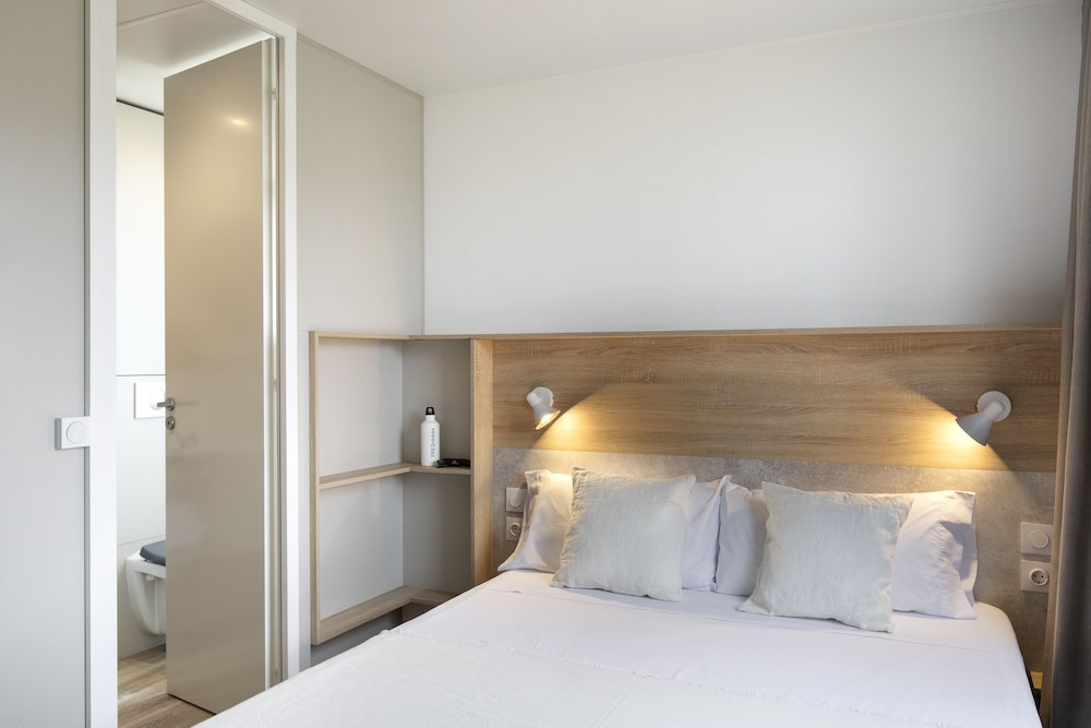 Hemos pasado 3 días en una mobilHome, el alojamiento en sí, esta bien, limpio y tienes toallas y sabanas incluidas. Como "pero" diré que las camas individuales son super estrechas y no hay manera de juntarlas, para hacer una cama más grande. O sea que 4 adultos NO pueden dormir en ese tipo de mobilHome. La limpieza en todo es excelente, pero les falta limpiar las fundas de los sofás y las sillas. El ambiente en el camping es muy tranquilo a pesar de que hay bastante gente. En general me ha gustado, pero el precio me ha parecido un poco excesivo. Y no hay wifi en el MobilHome.