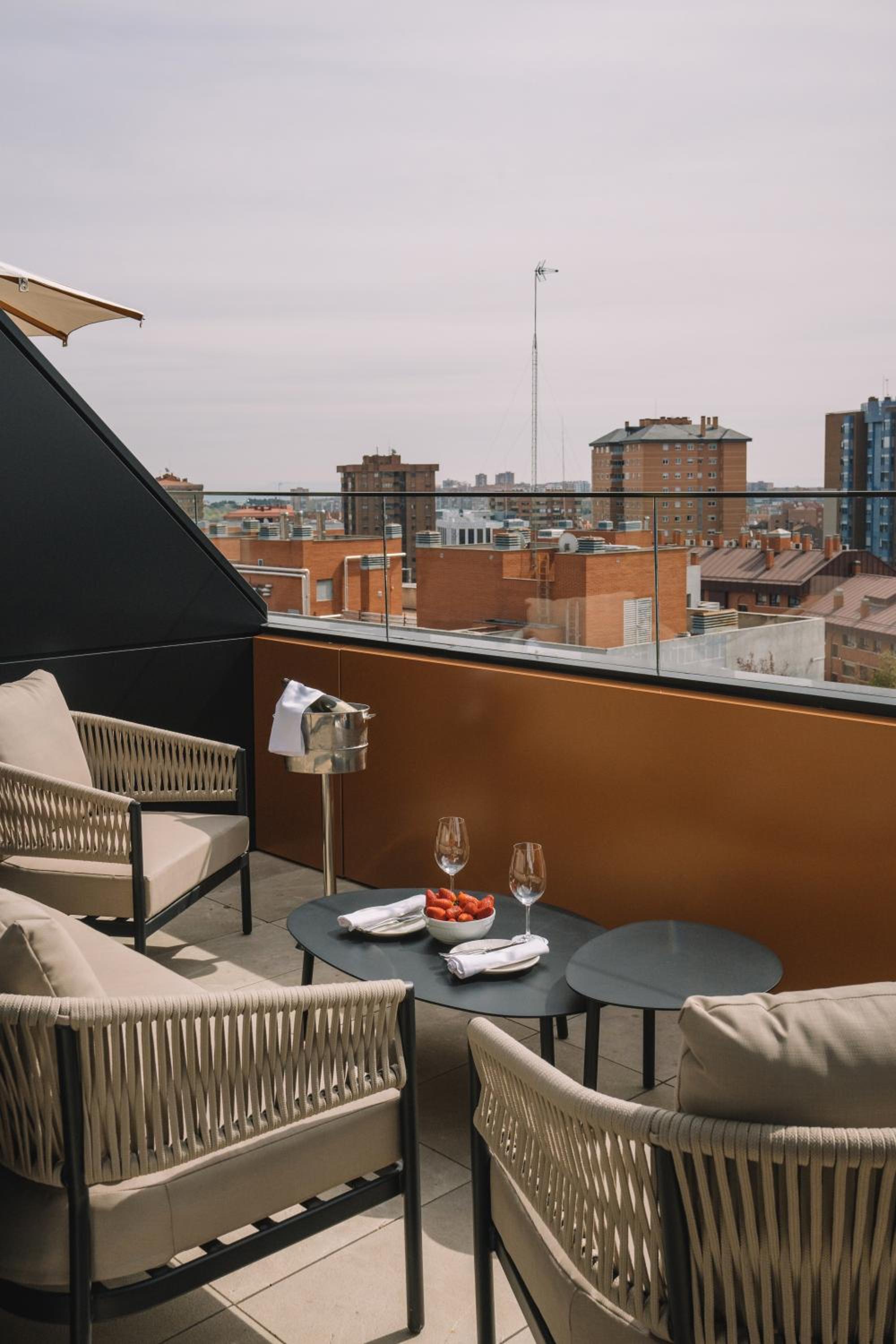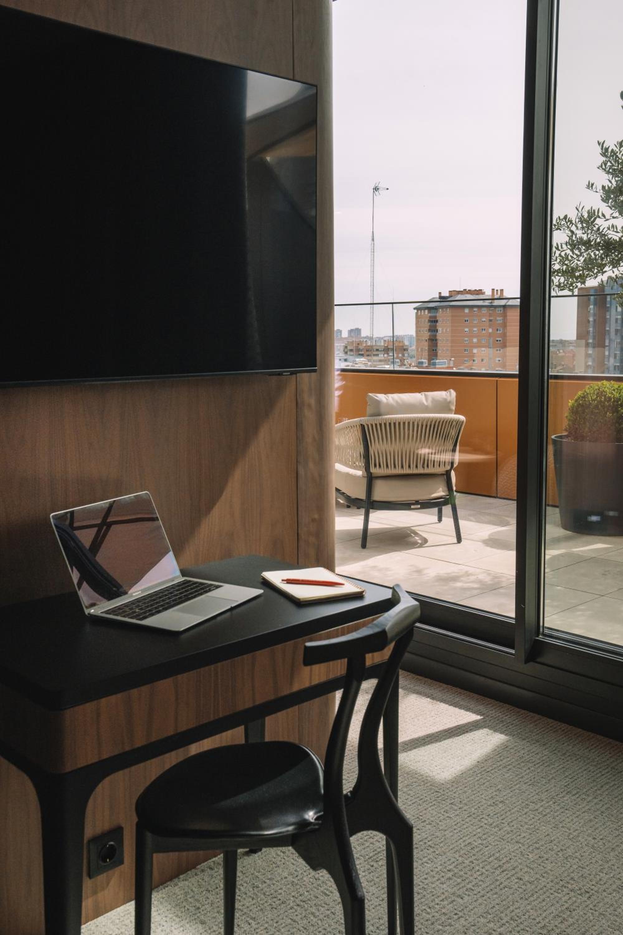 The hotel is located in a quiet area of the city, which is 10-15 minutes away from the airport by car. The metro station is a ten-minute walk away, and the line goes directly to the city center. The staff is very polite, helpful and unobtrusive. The breakfast was correct, and the restaurant has a pleasant atmosphere (light music with a piano is played). The rooms are extremely neat and clean, and the TV is large. Overall, I would recommend the hotel and it made our stay in Madrid even more enjoyable.
