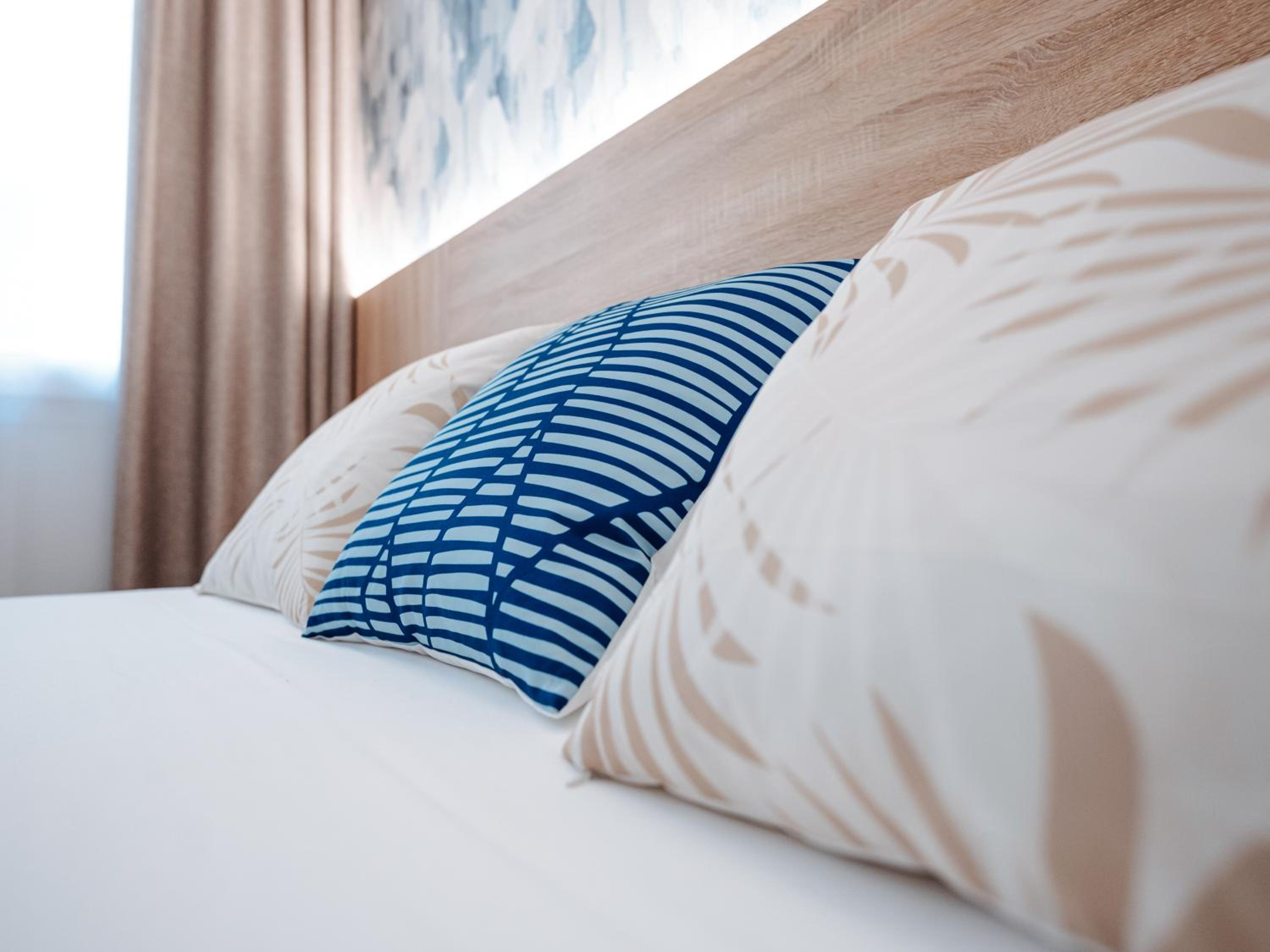 Para mi gusto las almohadas muy poco cómodas fina y blandas como si durmieras encima del colchón casi y la luz de emergencia siempre encendida en verde iluminando toda la habitación. Por lo demás todo bien