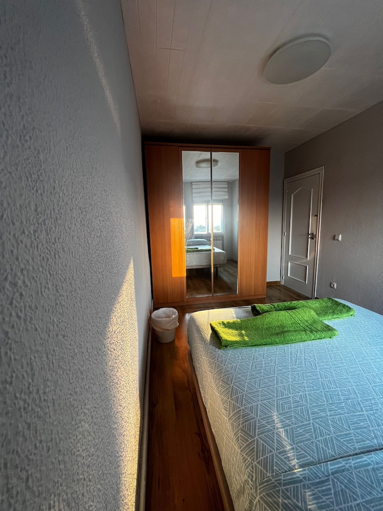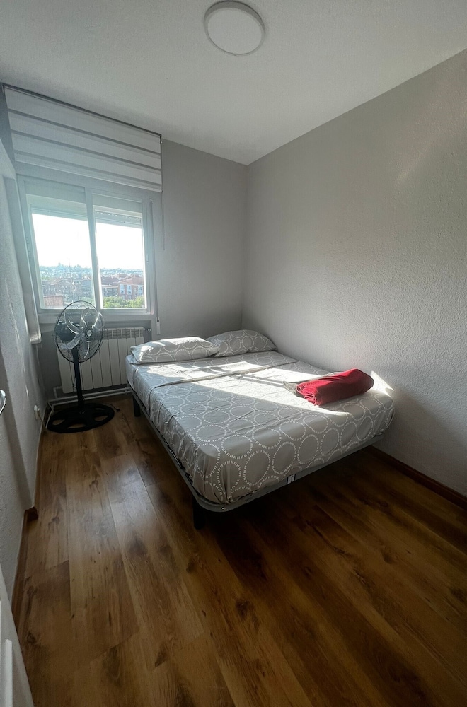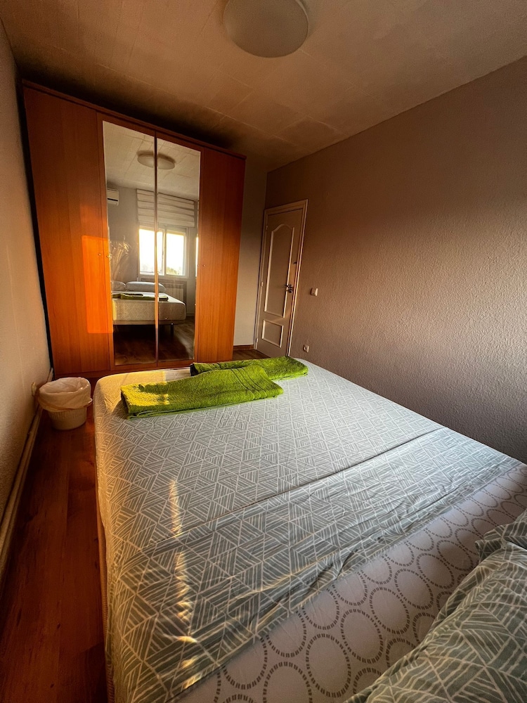 this is an apartment in a less well-off area of Madrid, far from public transport, shops and restaurants. It has 4 double bedrooms (the advert stated 2 bedroom flat) and only one bathroom where a larger person would not fit in the shower. Kitchen is not equipped properly - no coffee mugs, no bowls, no bottle opener, to name a few. Furniture in the room is non existent - a pole for wardrobe and a small coffee table for everything else. Pillows were strange long ones and uncomfortable. Communication was difficult - no English, AT ALL - I had to translate every word. We had a brand new TV though, so had to remove the foil from the screen and tune it etc - it was not guest ready as it should have been.
