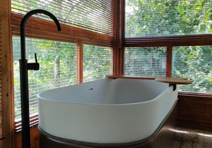 We stayed for one night, and it was simply magical. The peace and quiet, surrounded by pure nature, made the whole experience unforgettable. The interiors are beautifully minimal, with carefully chosen furniture pieces that make the space feel both calming and special.