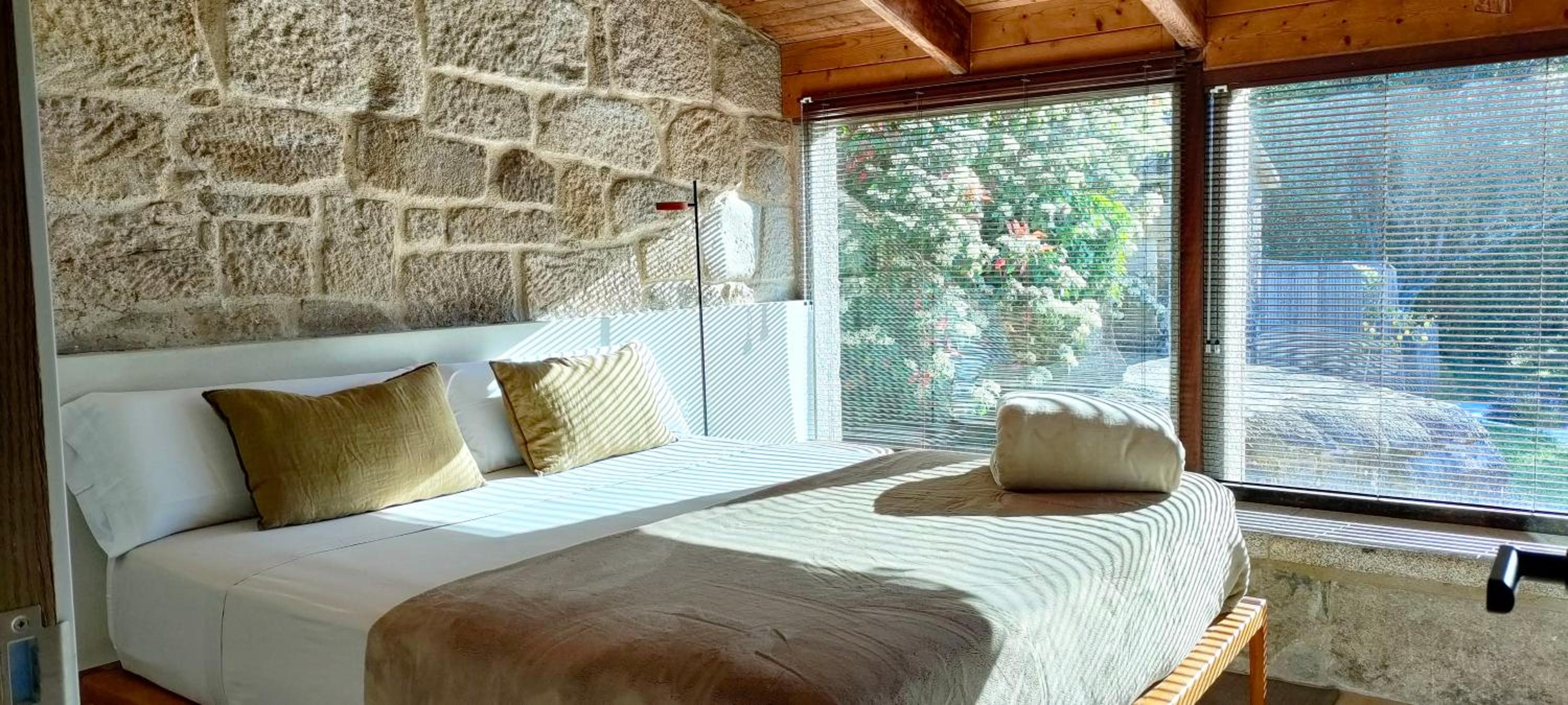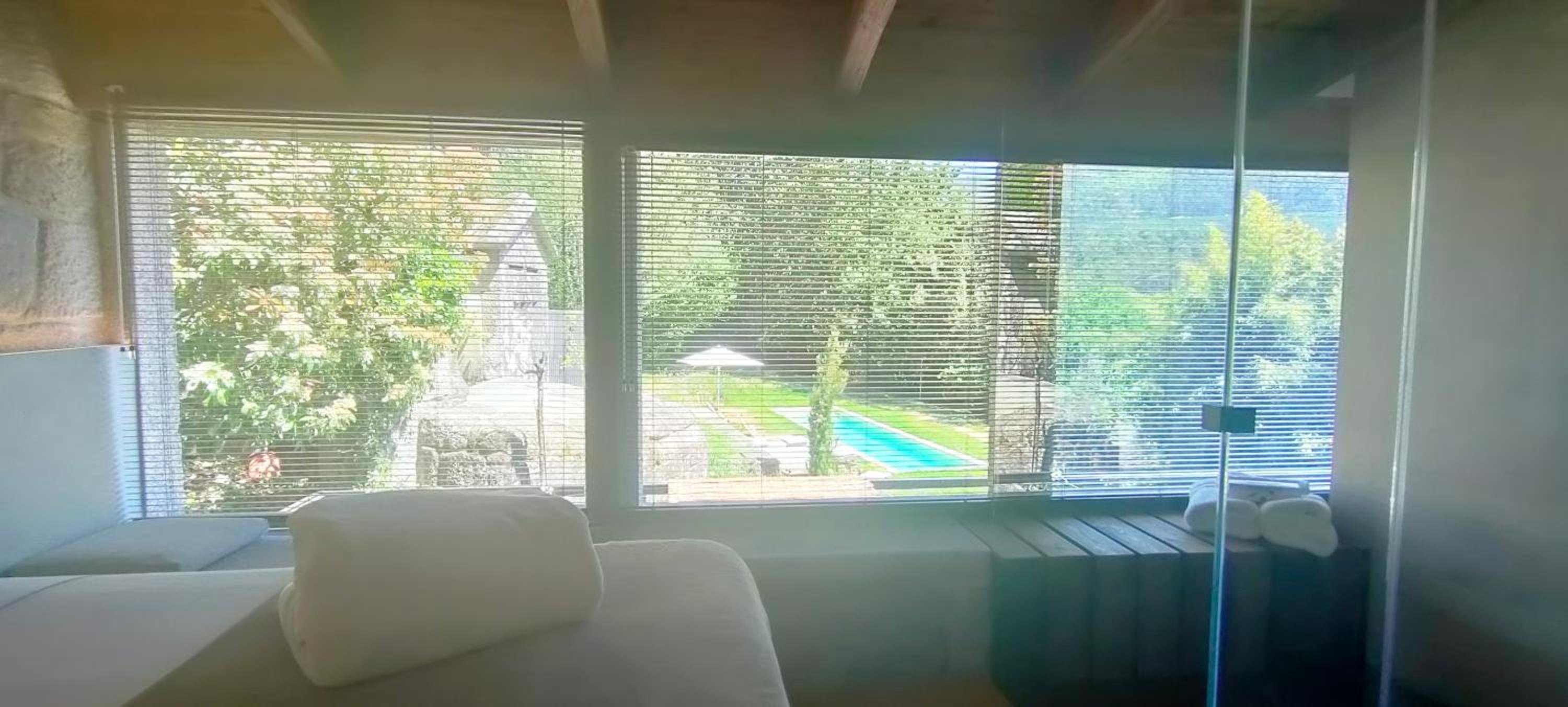 Todo fue excelente . La restauracion del edificio precioso .La luz de los interiores , tanto con luz natural como artificial. La decoración limpia y clara, perfecta para un lugar así. El jardin con especies autoctonas y arboles frutales. Esa pequeña piscina que añade paz a todo el conjunto.La atencion tanto de Paula como de Ana. El desayuno.Todo maravilloso.