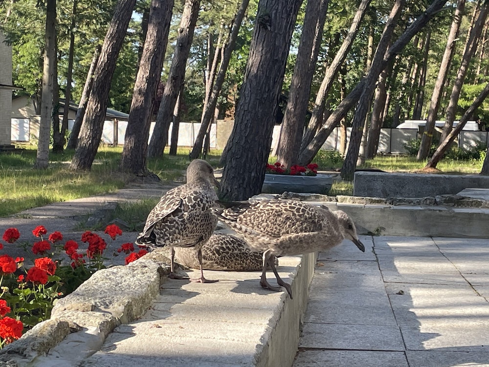 Das Gebäude ist von Pinien umgeben und man kann Meer hören. Das Meer ist um die Ecke.
