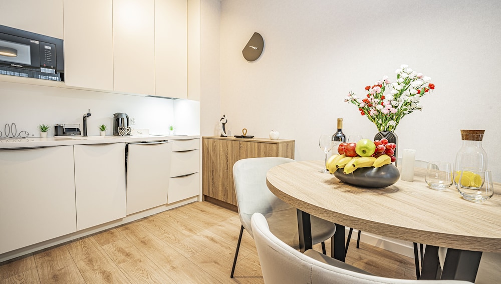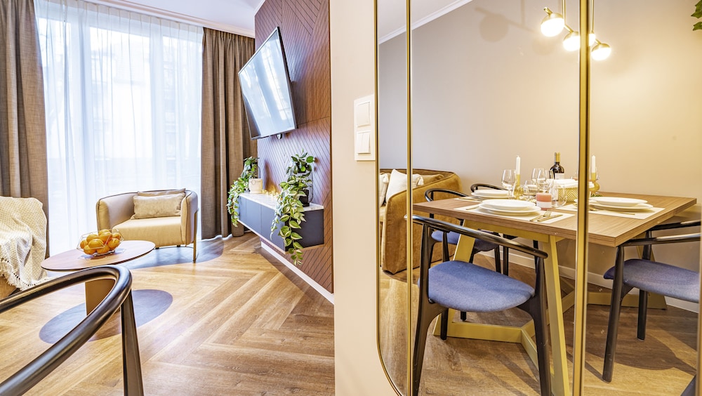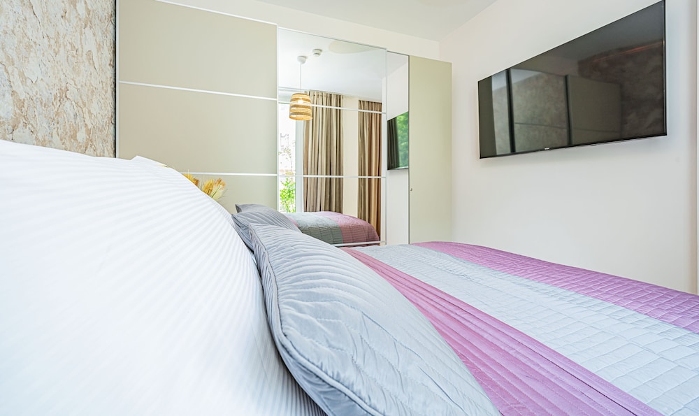 Nytt of flott leilighetshotel. Velsig rent når vi ankom, ingen rengjøring underveis i oppholdet på 6 dager. Trenger du nye håndduker koster det ca 45 EUR ekstra for 4 personer. Sengene var noe harde for oss nordmenn. Totalt sett meget flott sted med hyggelig personale i resepsjonen. Resepsjonen ringte på innsjekkingsdag for å avklare innsjekkingstidspunkt, og la ut nøkkel i nøkkelboks da vi ankom sent på kvelden. Vi kunne ønsket at innsjekkingsinstruksjoner i tillegg ble sent på epost. Stedet er helt nytt og standarden var høy med fult utrustet kjøkken og fin spa avdeling på taket med basseng, boblebad og badstuer.