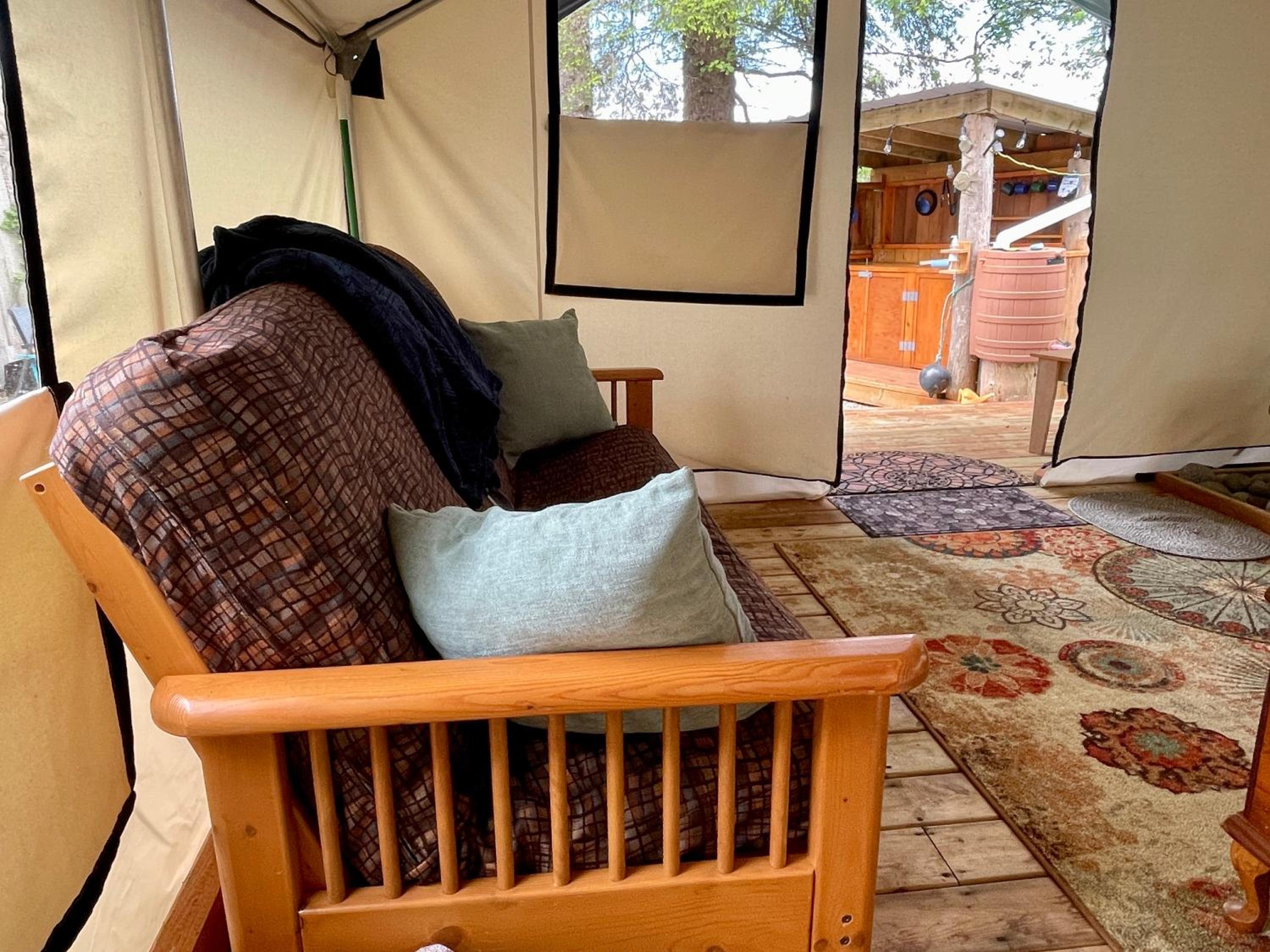 Book now at So Damn Lucky Glamping for a memorable and luxurious glamping experience by the beach!