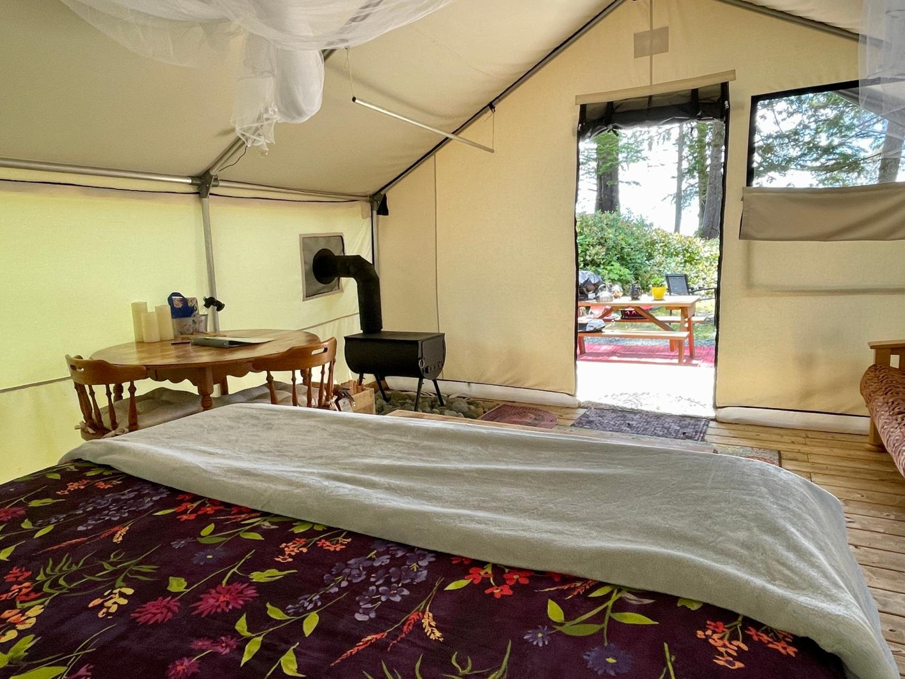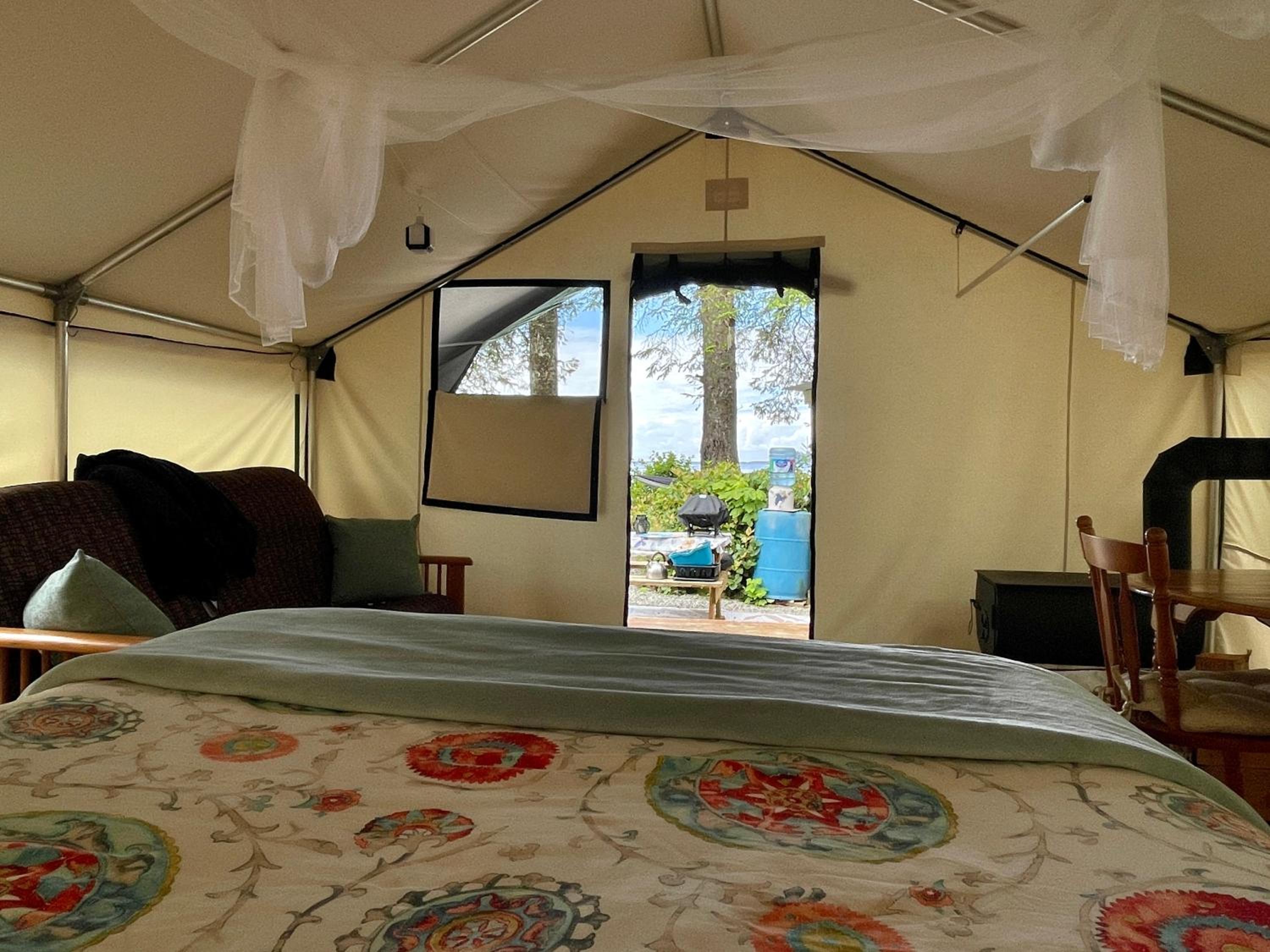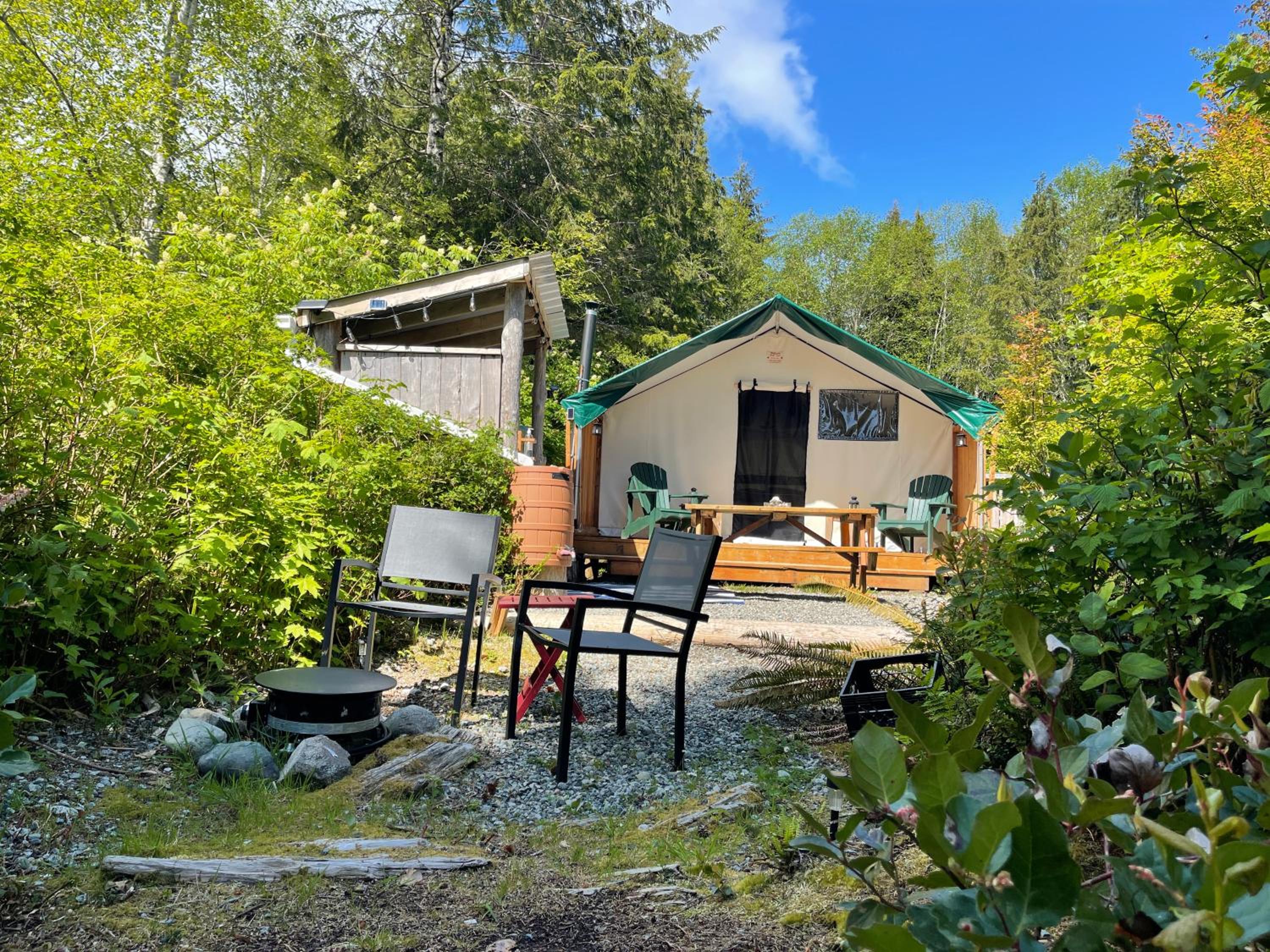 This is an amazing property. Peaceful, well taken care of. Pristine. The views of the beach right from your campsite are amazing. We saw a whale and many bears right from the beach. Would absolutely recommend