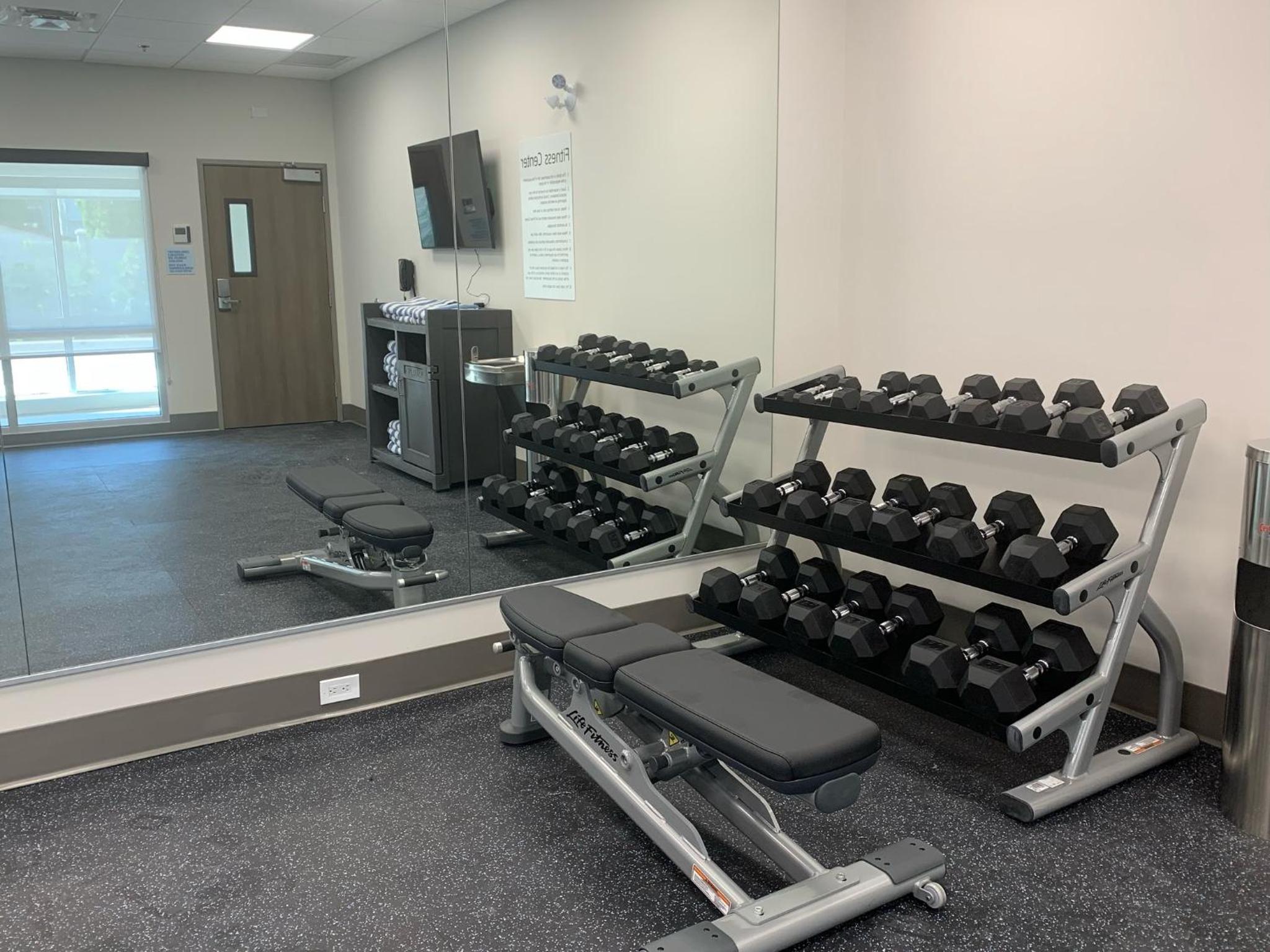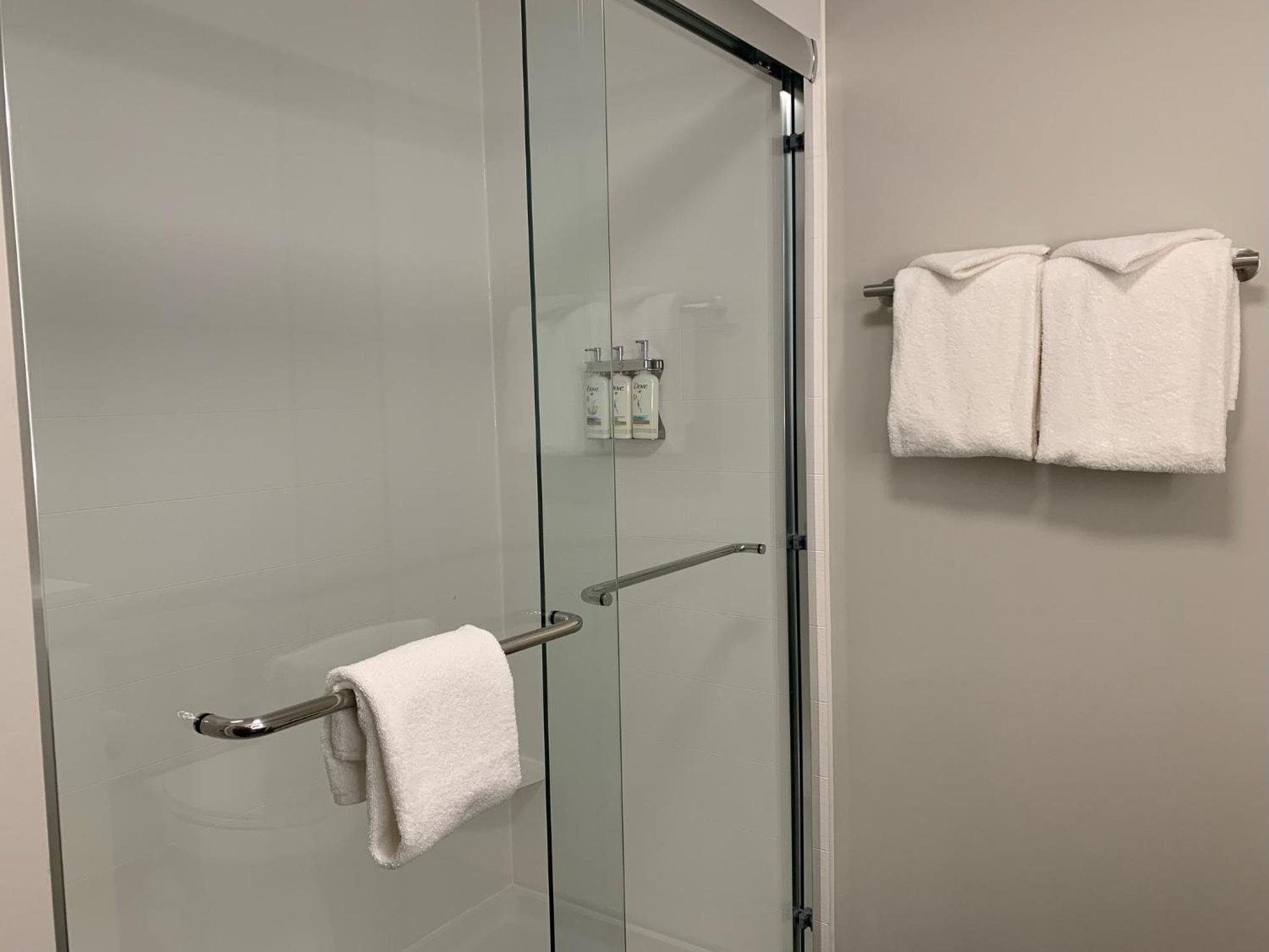 Great buffet-style breakfast! Eggs, sausage or bacon, baked beans, potatoes, pancakes, plus the typical continental breakfast items. Loved the self-serve coffee/tea station that was stocked all day. Nice pool, not cold, also not too warm. Front desk staff were friendly, professional and attentive. Room had lots of lighting settings, outlets, USB ports, and the A/C worked well. The windows can be opened a few inches for fresh air if desired. Nice showerhead in the bathroom with three settings. Dove products supplied in shower and at sink. In-room safe (not bolted down though). Overall a modern and well-provisioned room. Lots of parking, and you could use your key card to enter the hotel from the back. Key card required in the elevator and for the fitness room and pool. Also, they have two washers and two dryers ($2.50 each at time of writing).