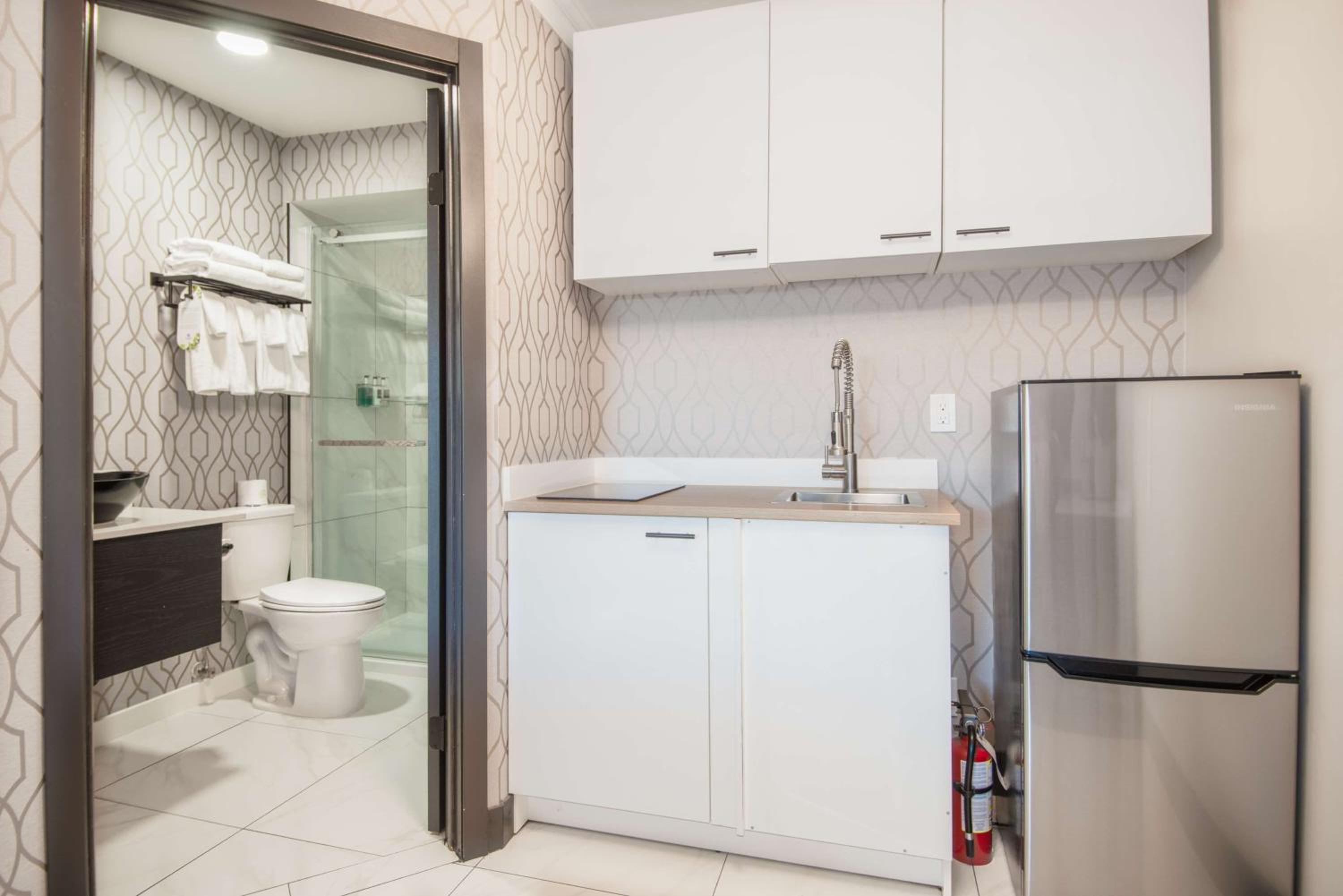 Room was all new and fresh! The linens and toiletries were fabulous. Super handy location within walking distance to pretty much everything you might need