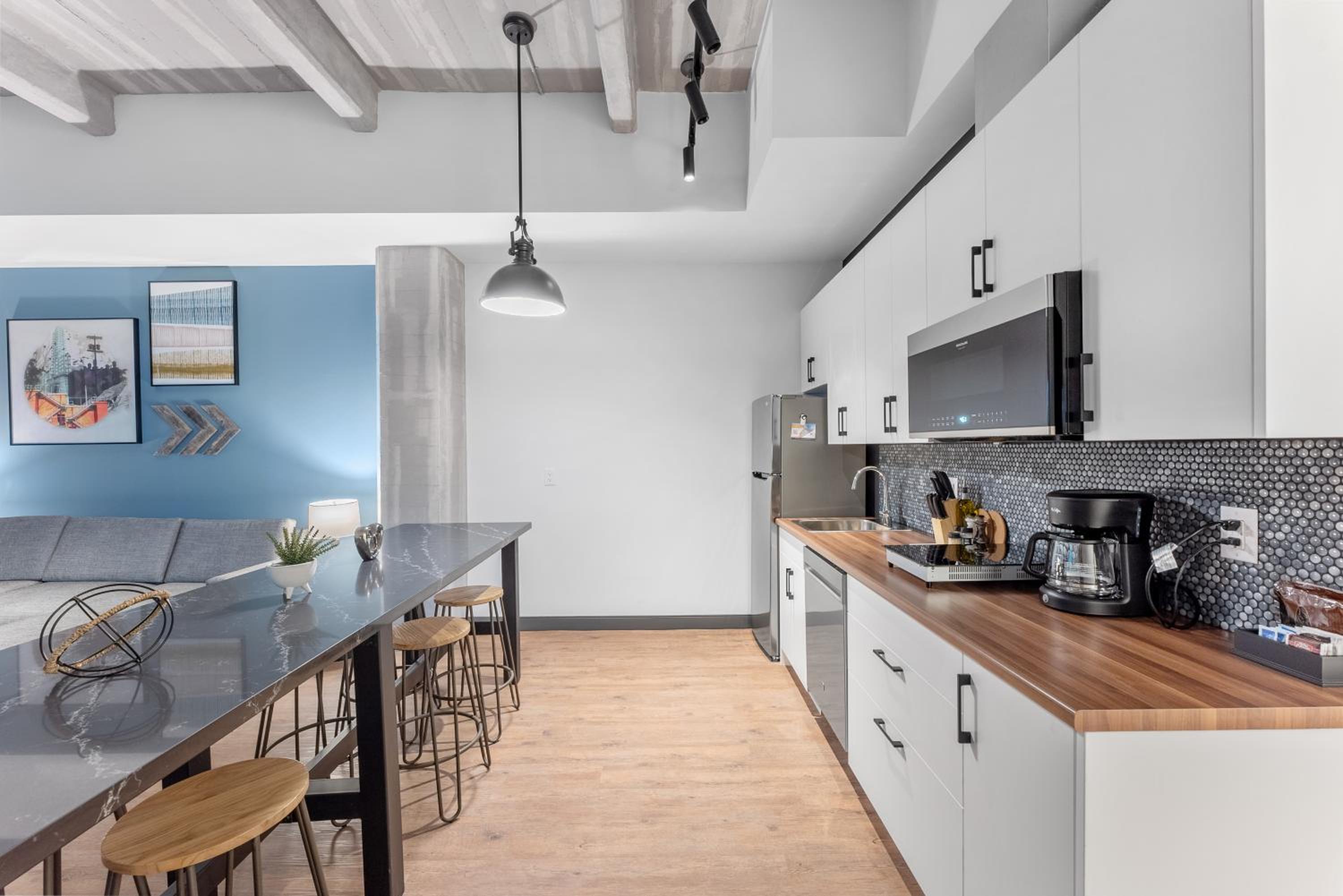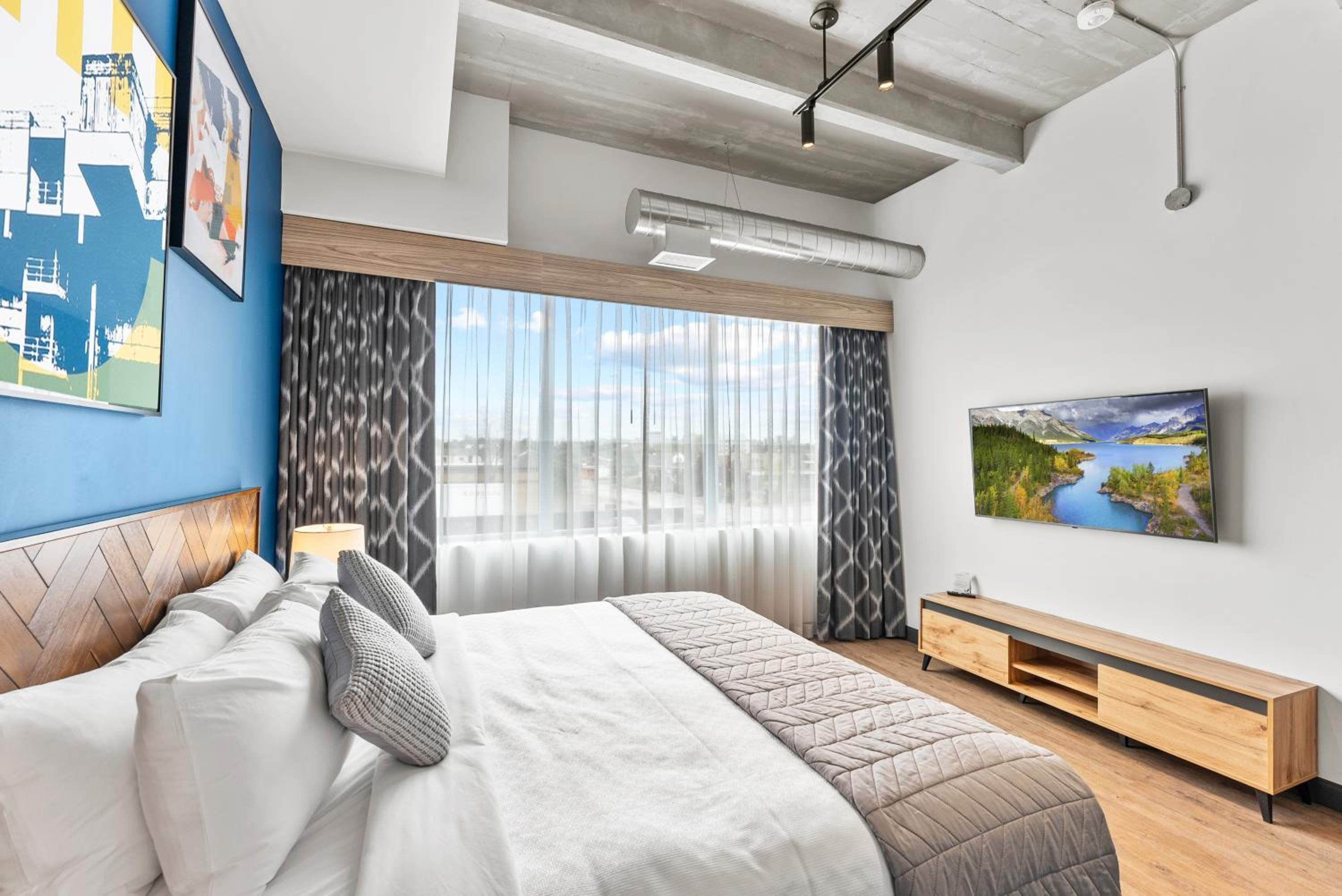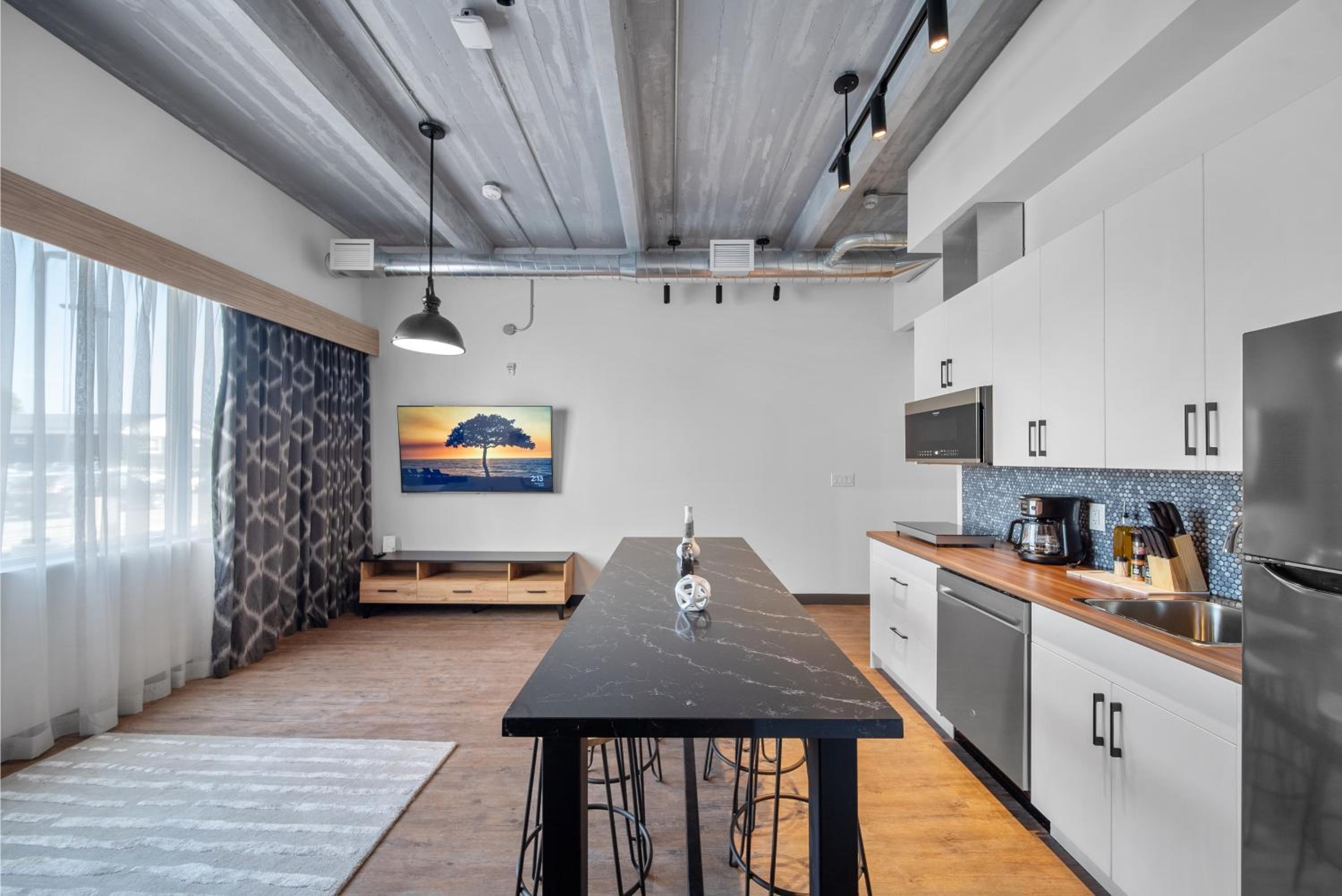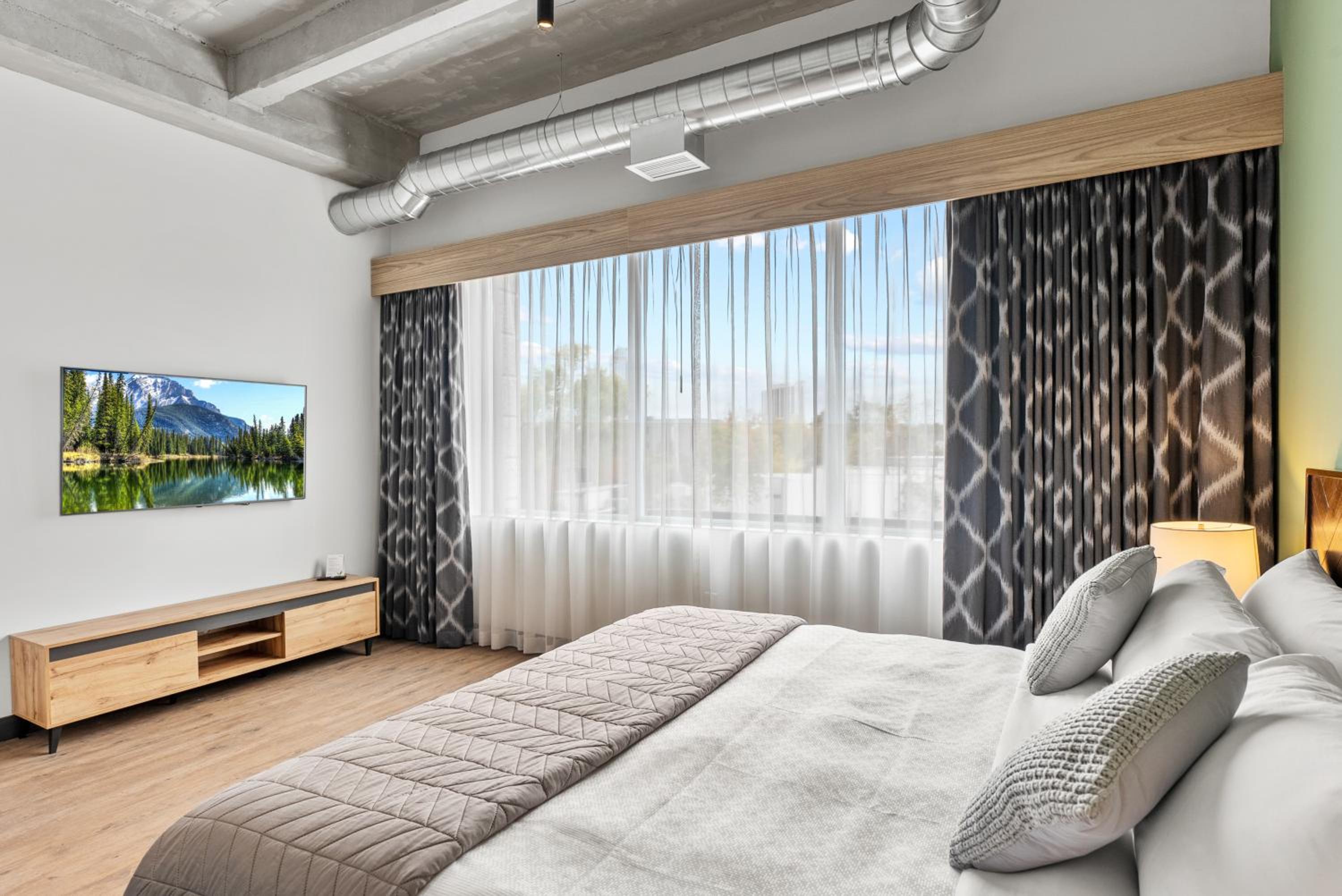 Experience the epitome of comfort and style at Cannery Lofts Niagara. Each room is thoughtfully designed with modern amenities such as air conditioning, a fridge, and a coffee machine. The plush bedding and free toiletries ensure a relaxing stay for every guest.
