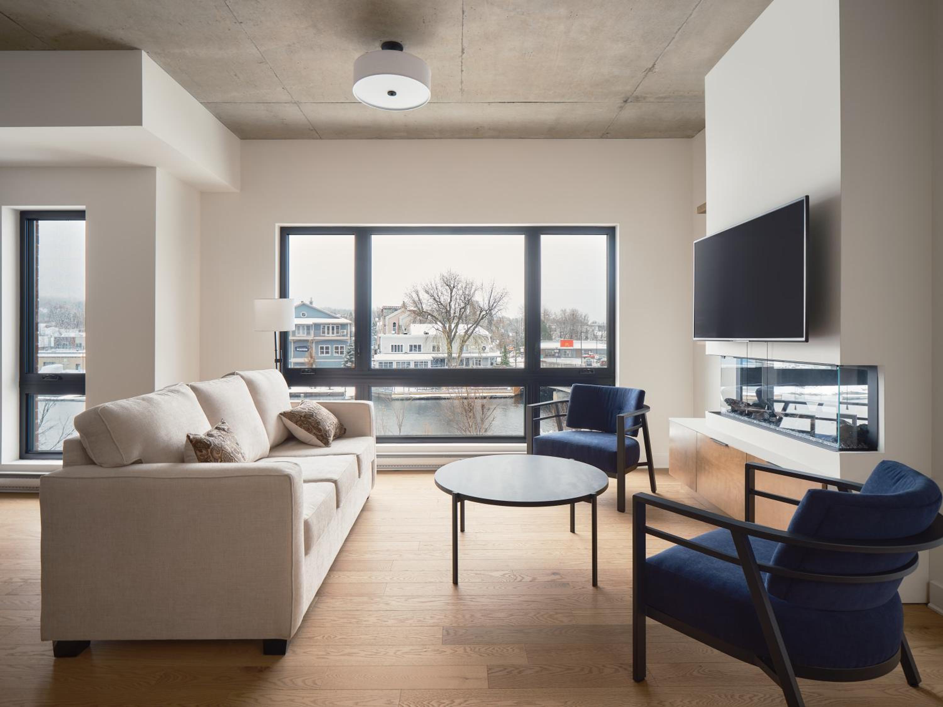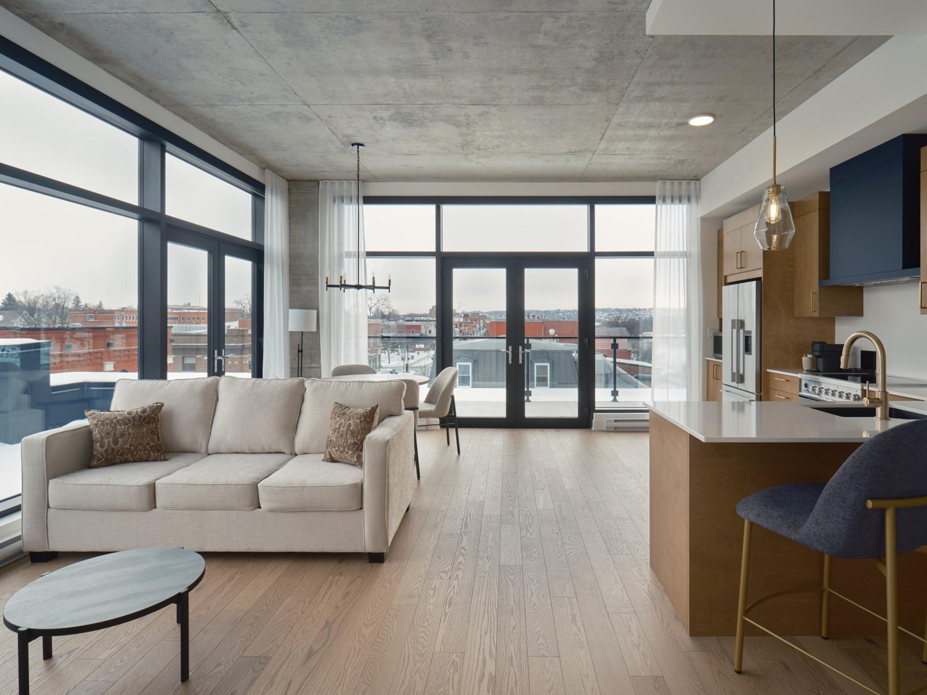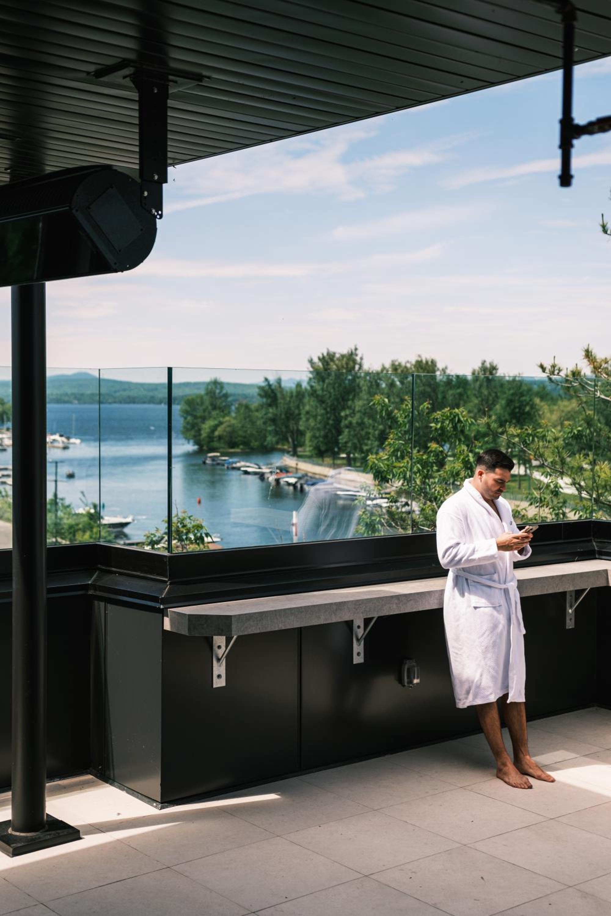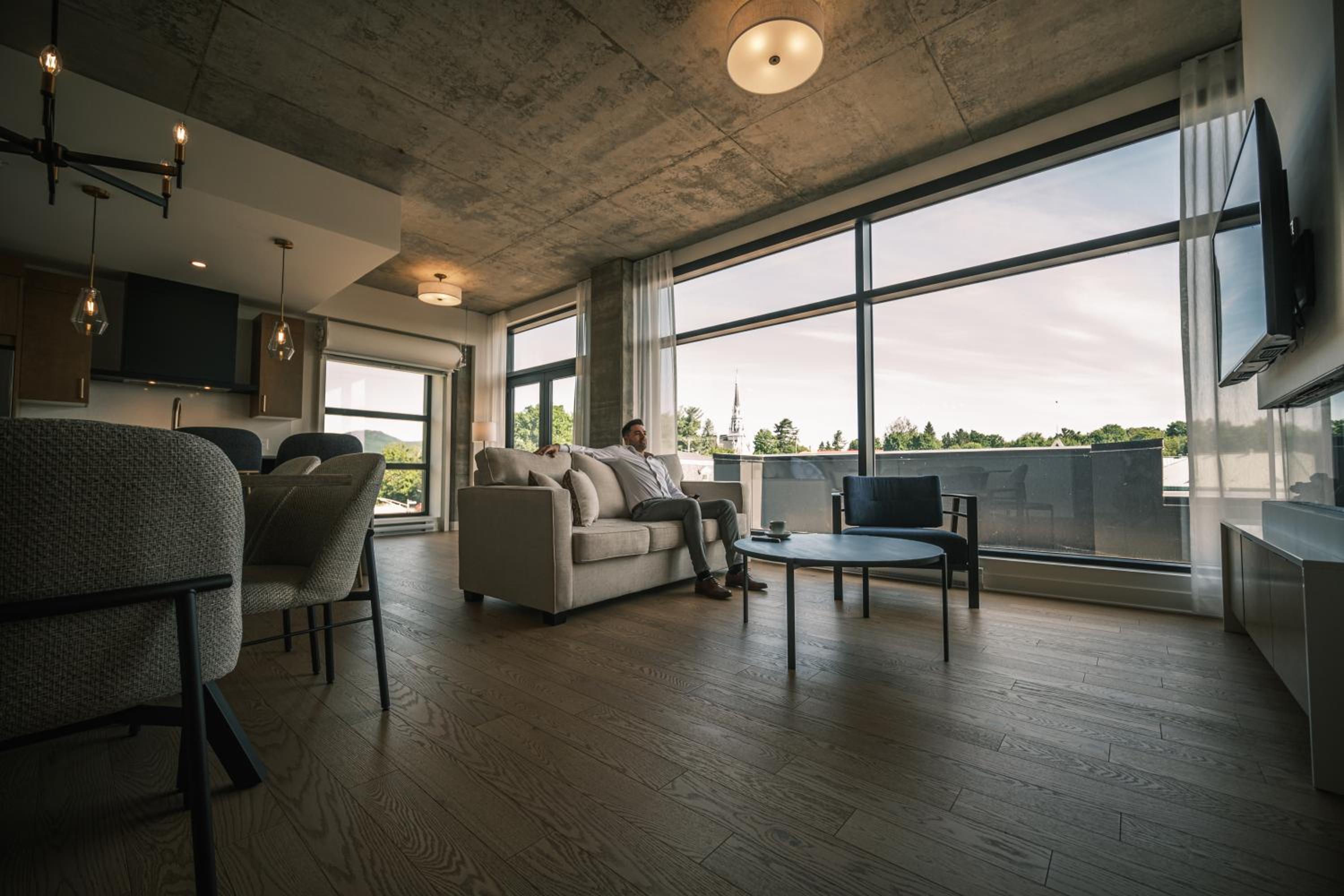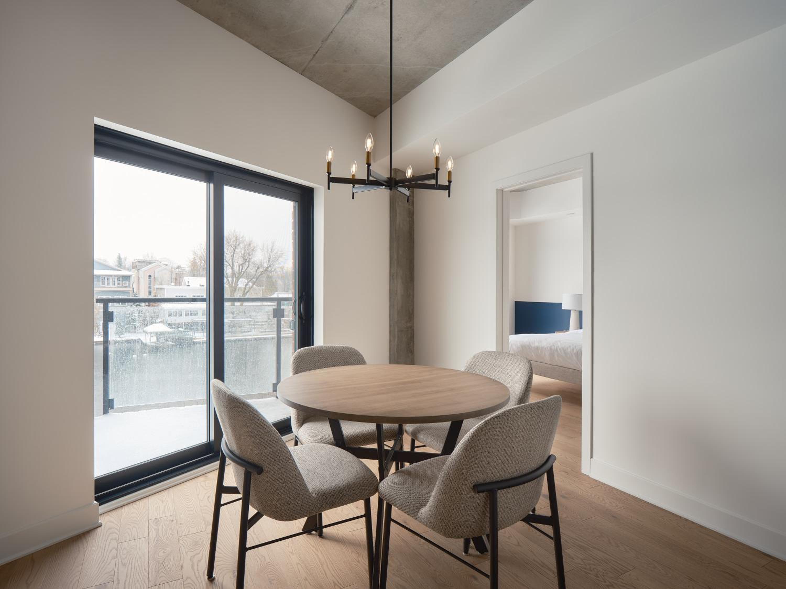 Experience a stay like no other at Hôtel - Expérience - Quartier Des Marinas, where you can enjoy breathtaking river views from the comfort of your terrace.