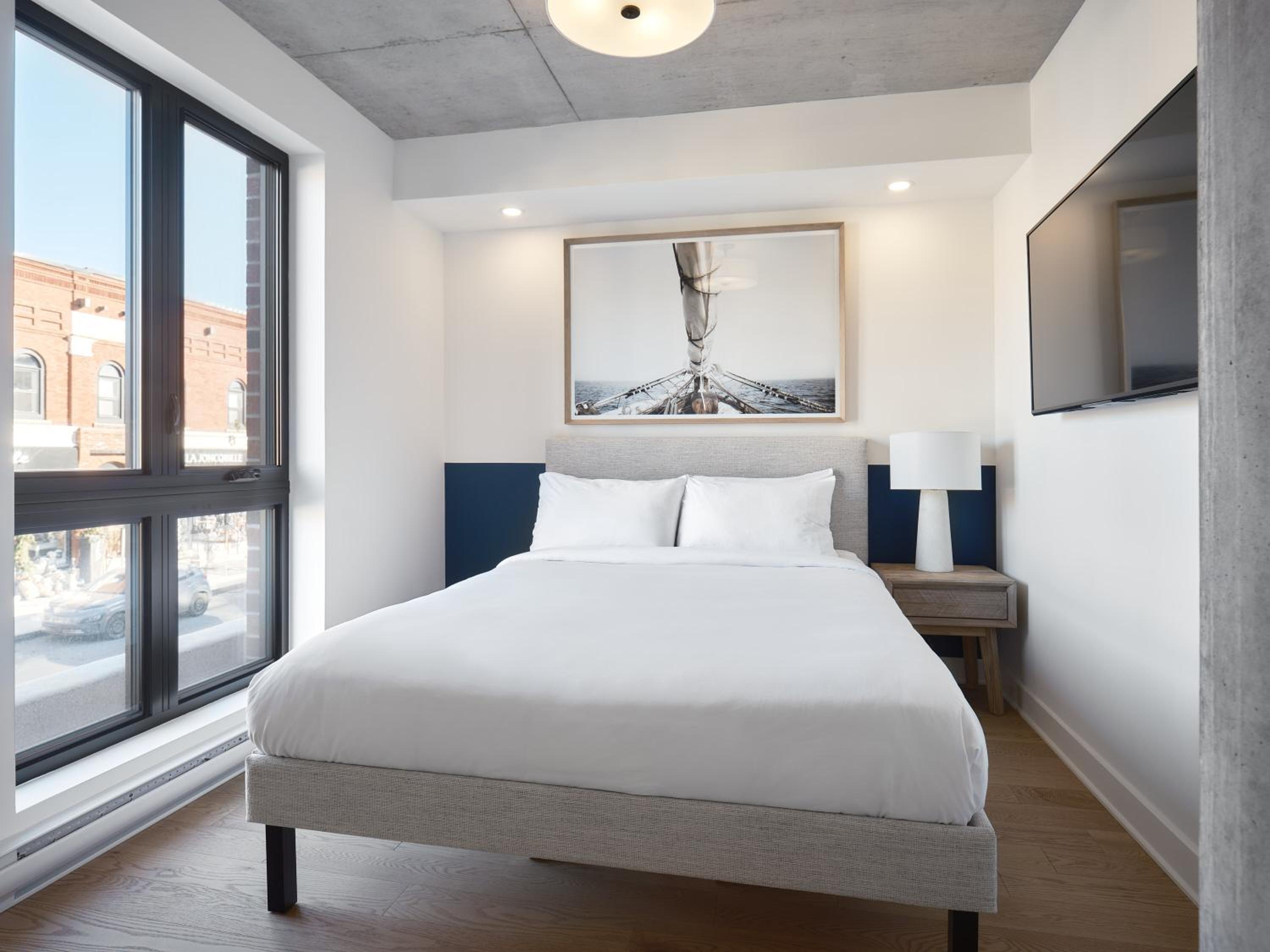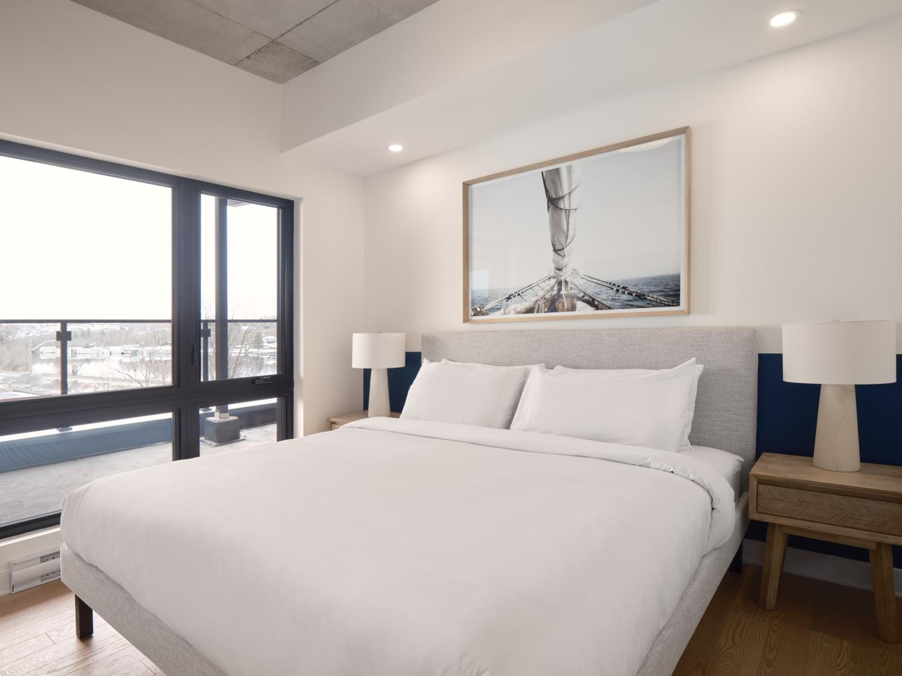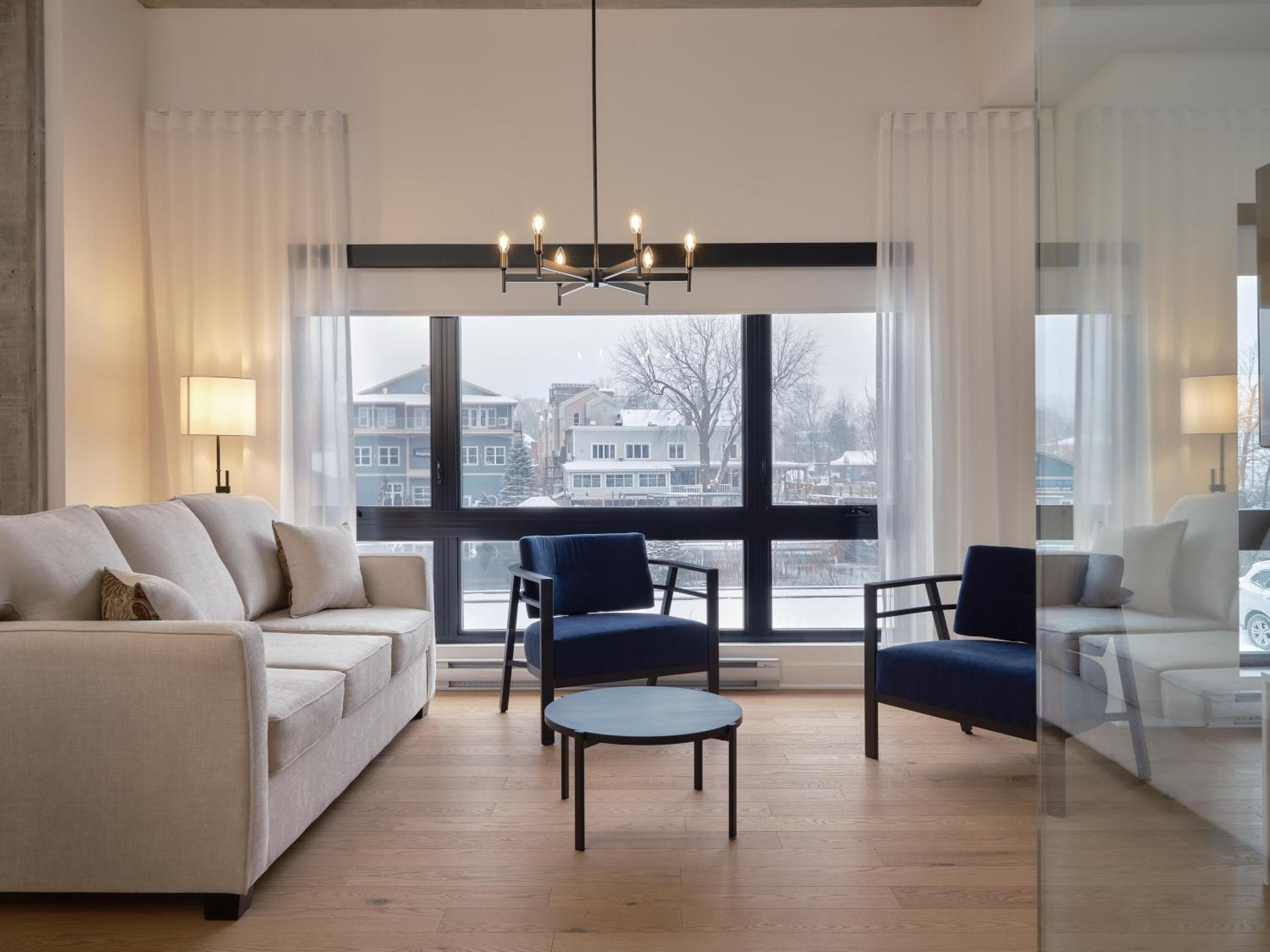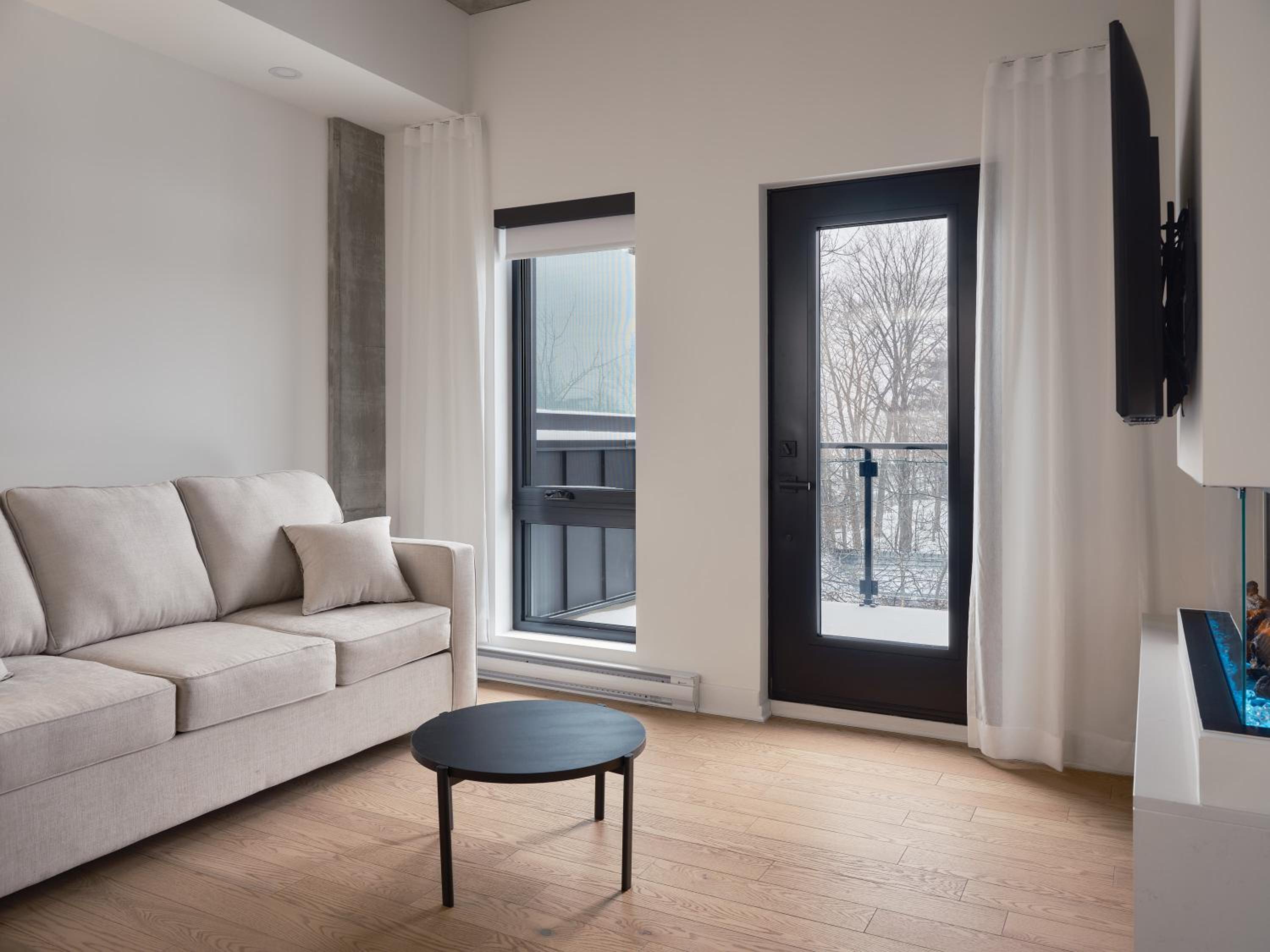 Experience a stay like no other at Hôtel - Expérience - Quartier Des Marinas, where you can enjoy breathtaking river views from the comfort of your terrace.