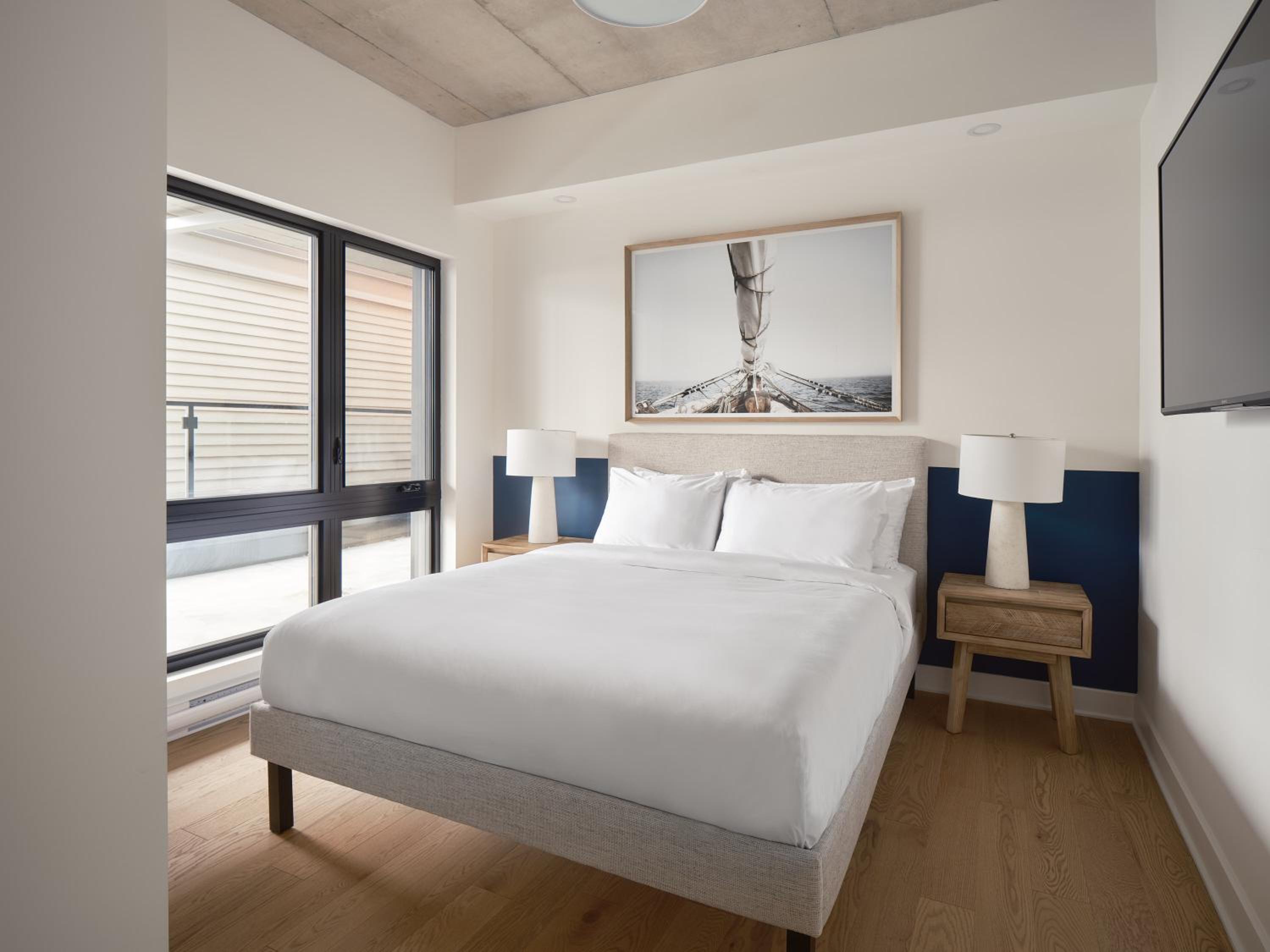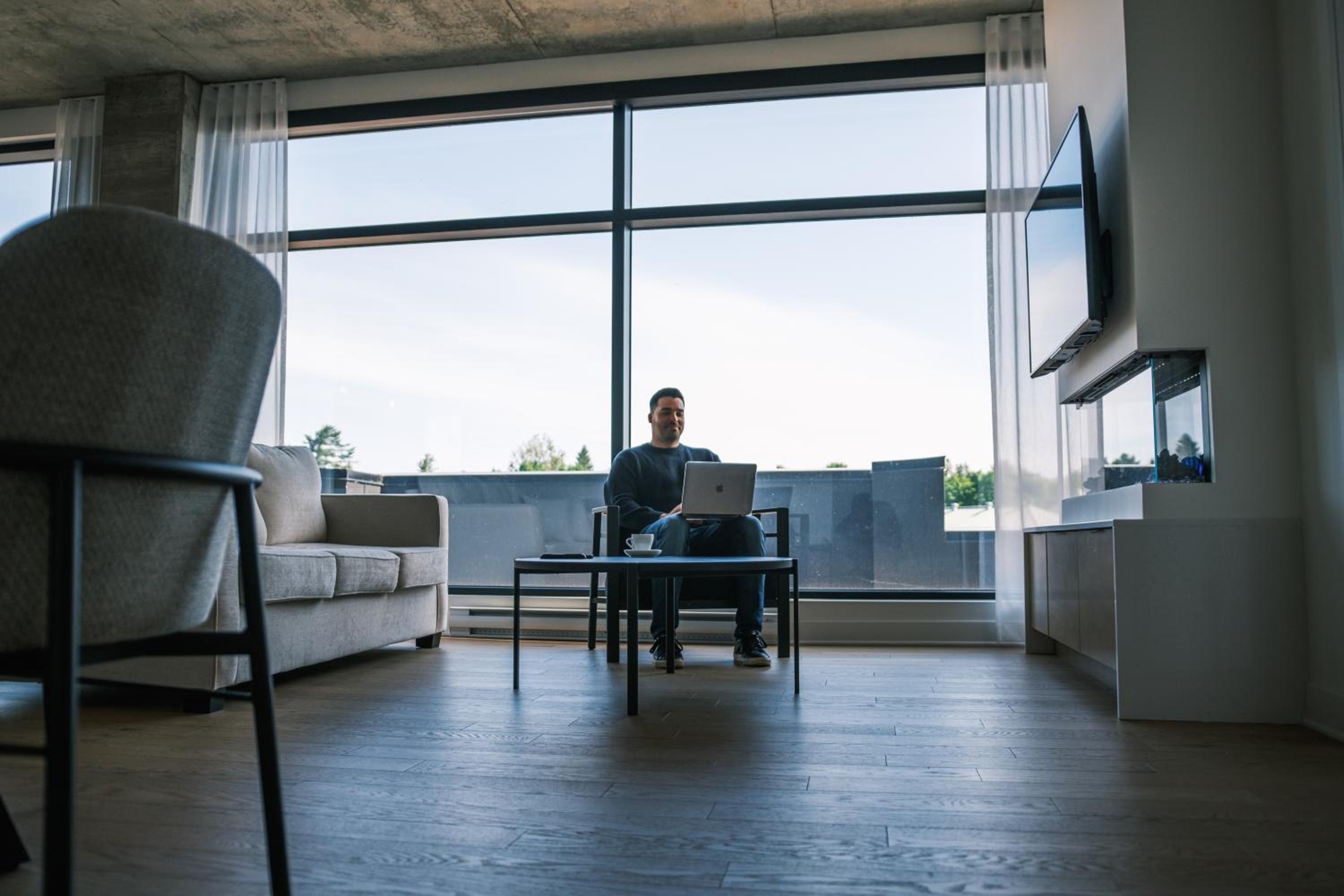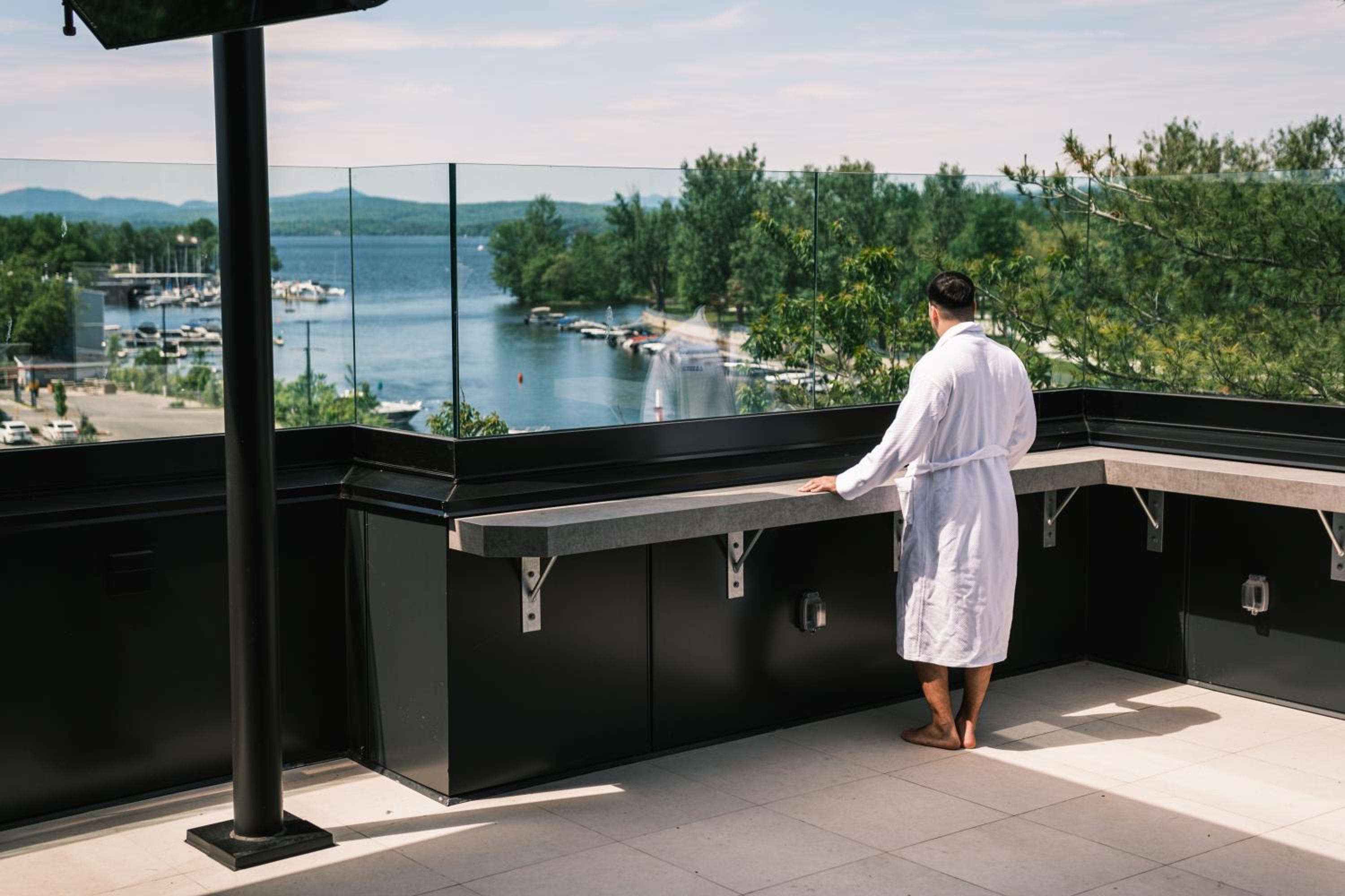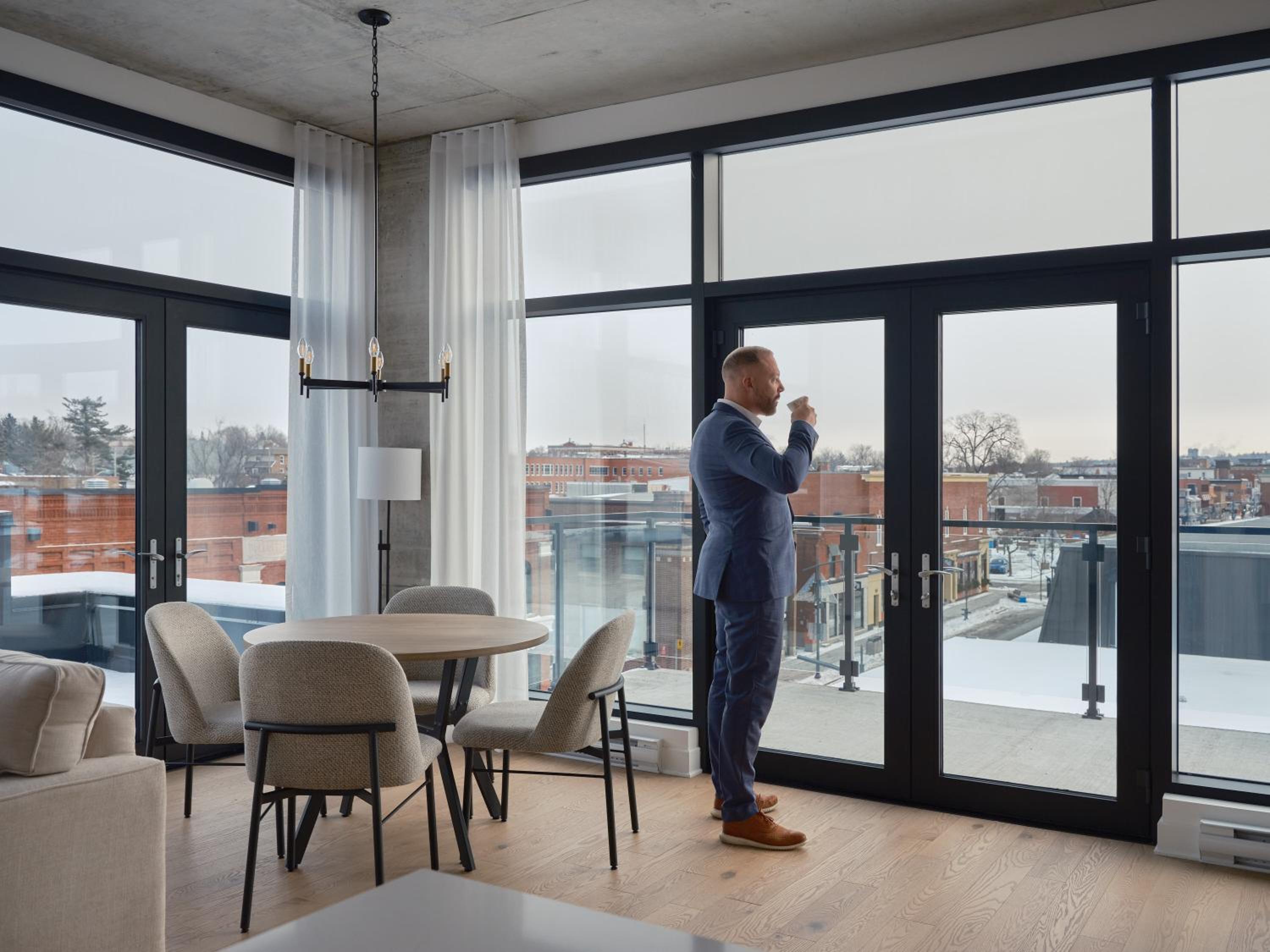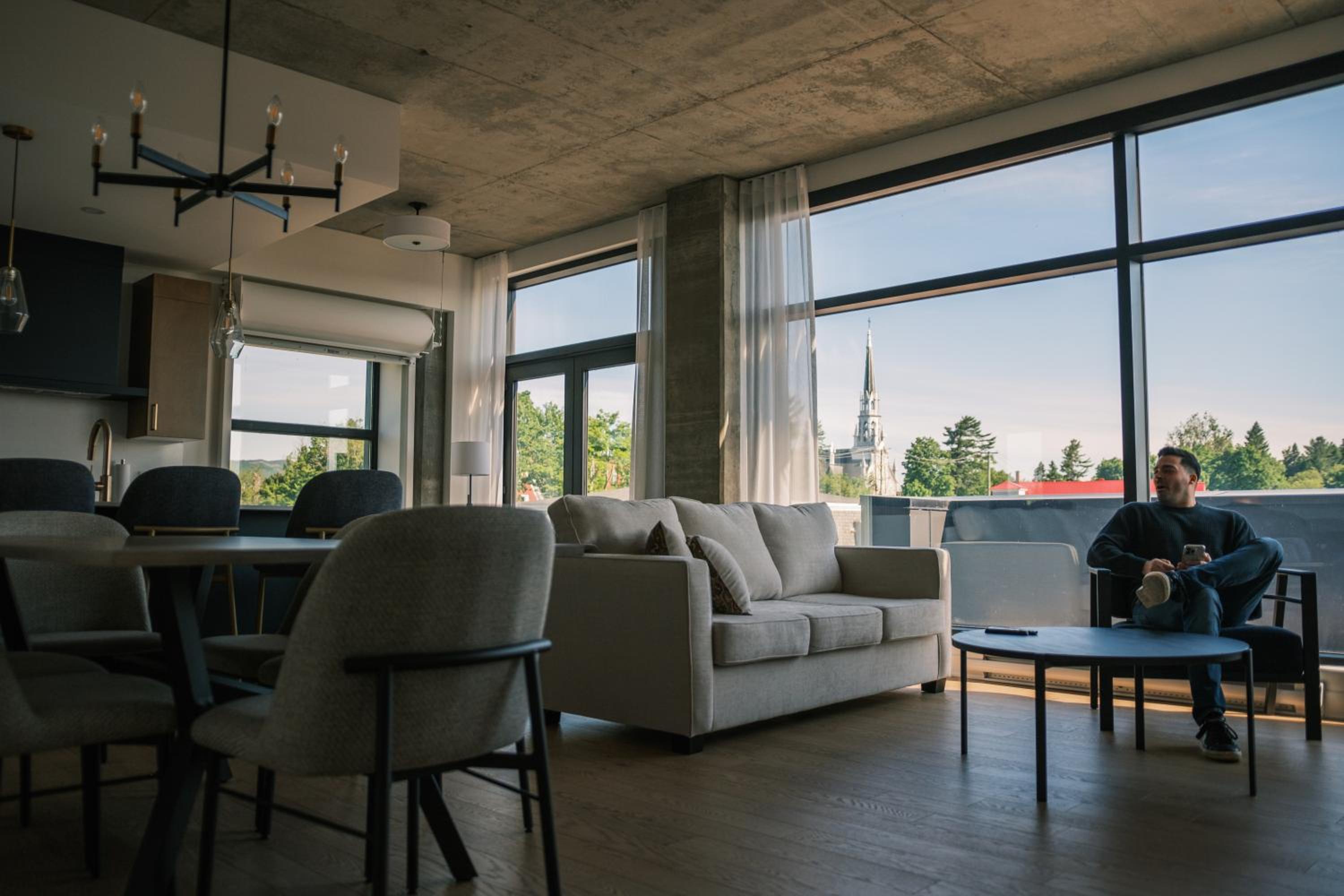 Experience a stay like no other at Hôtel - Expérience - Quartier Des Marinas, where you can enjoy breathtaking river views from the comfort of your terrace.