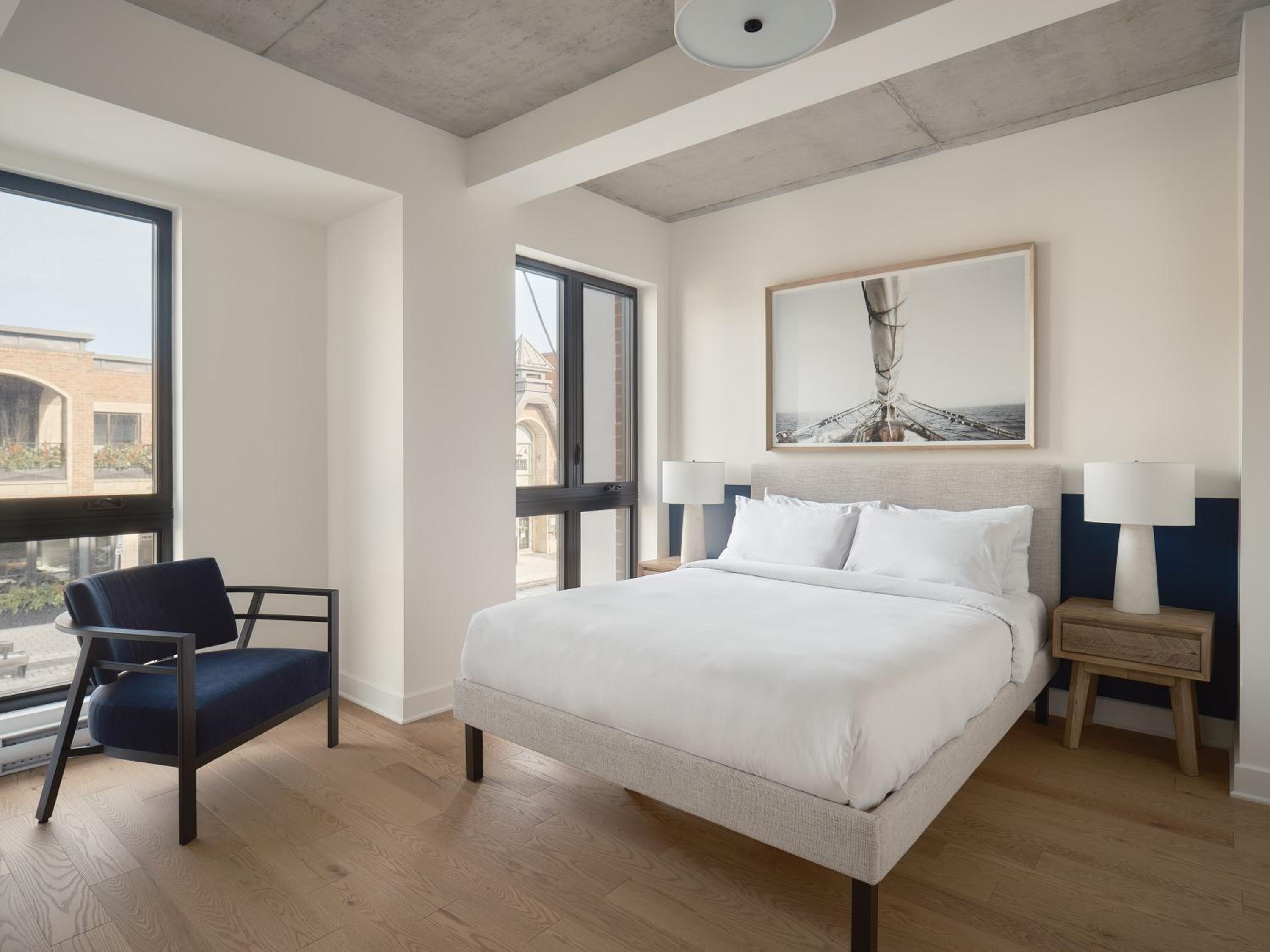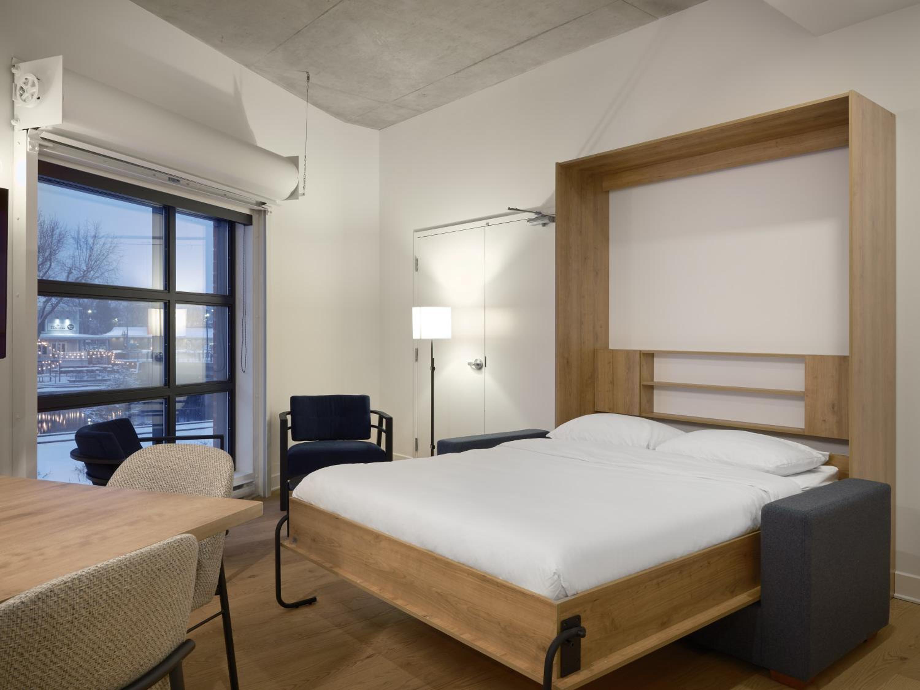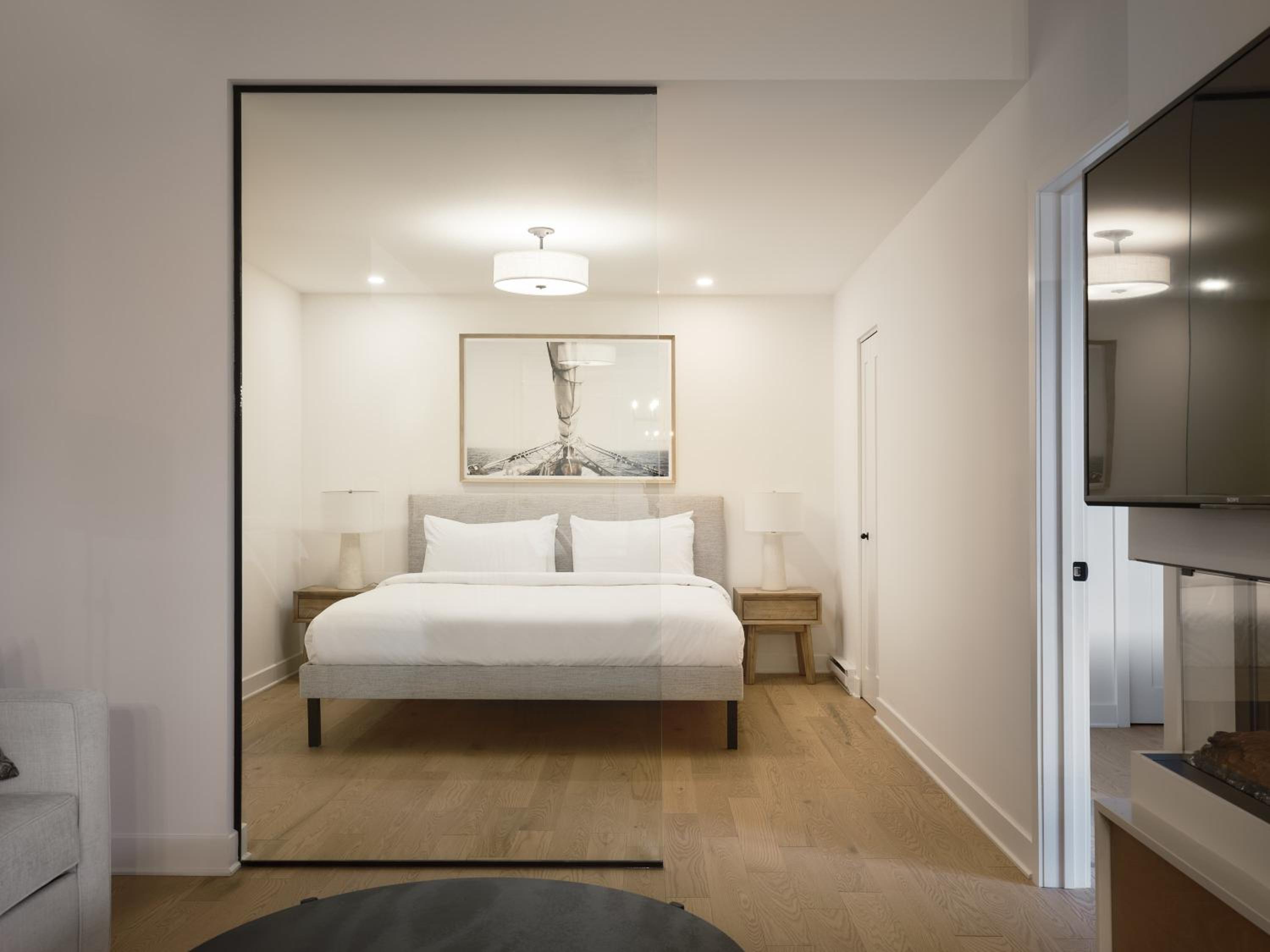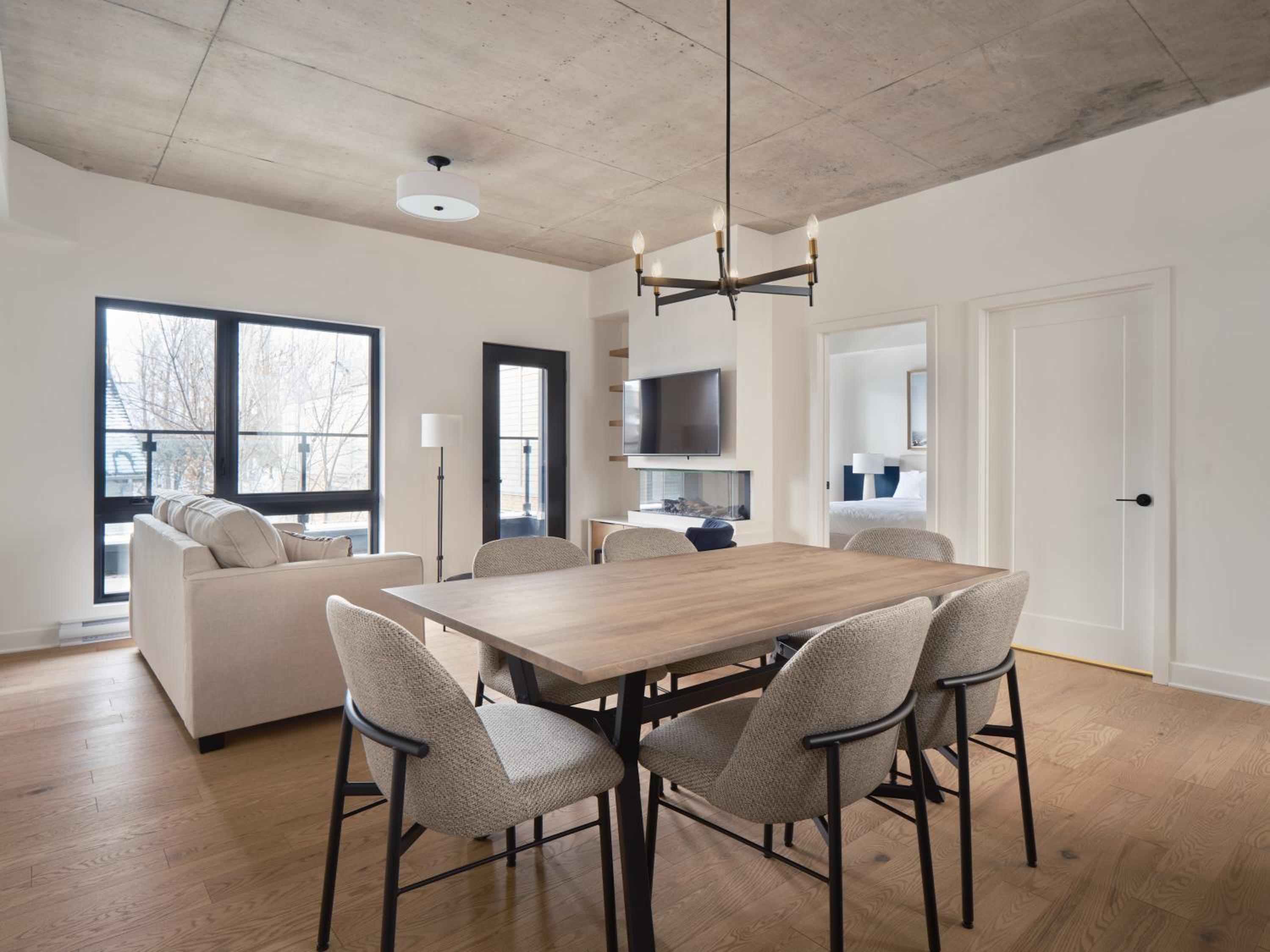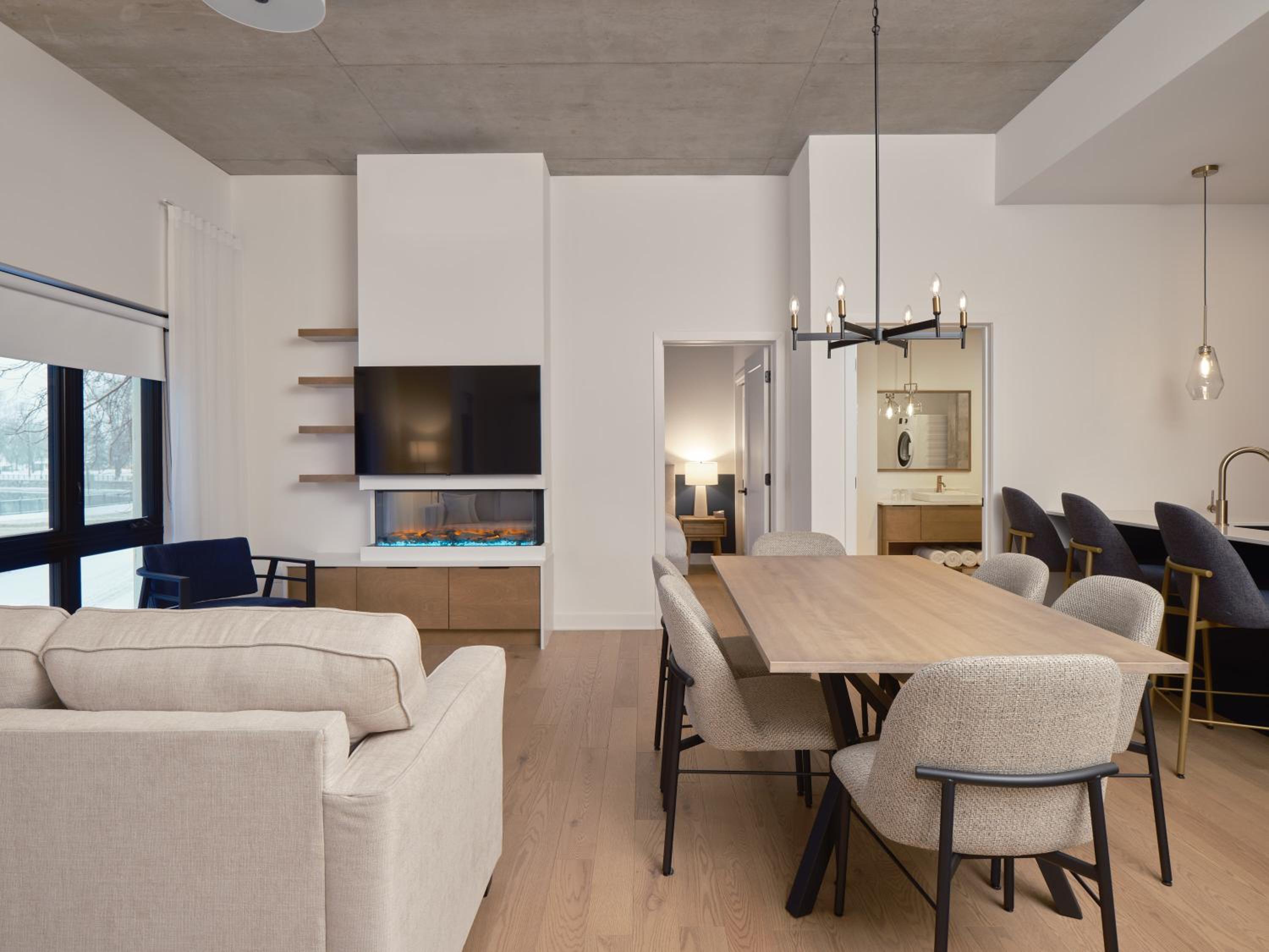 Experience a stay like no other at Hôtel - Expérience - Quartier Des Marinas, where you can enjoy breathtaking river views from the comfort of your terrace.