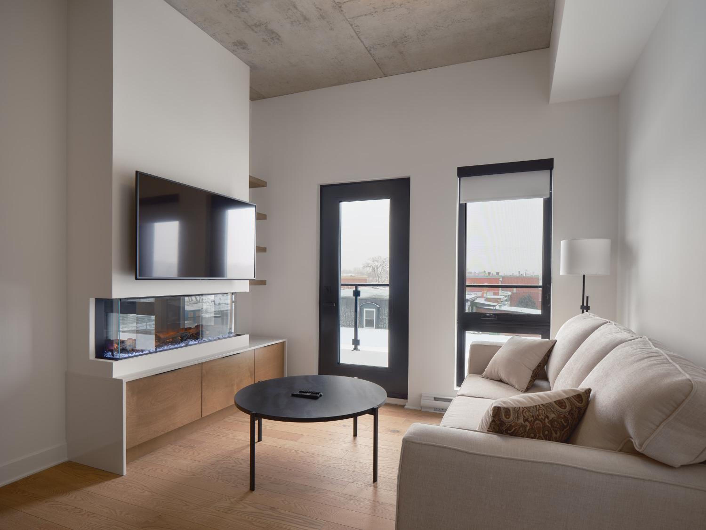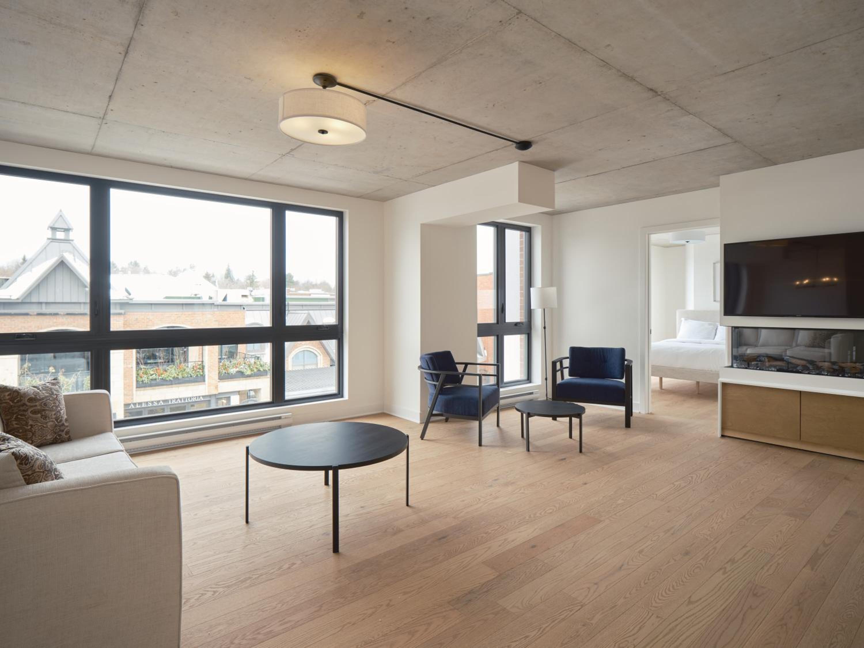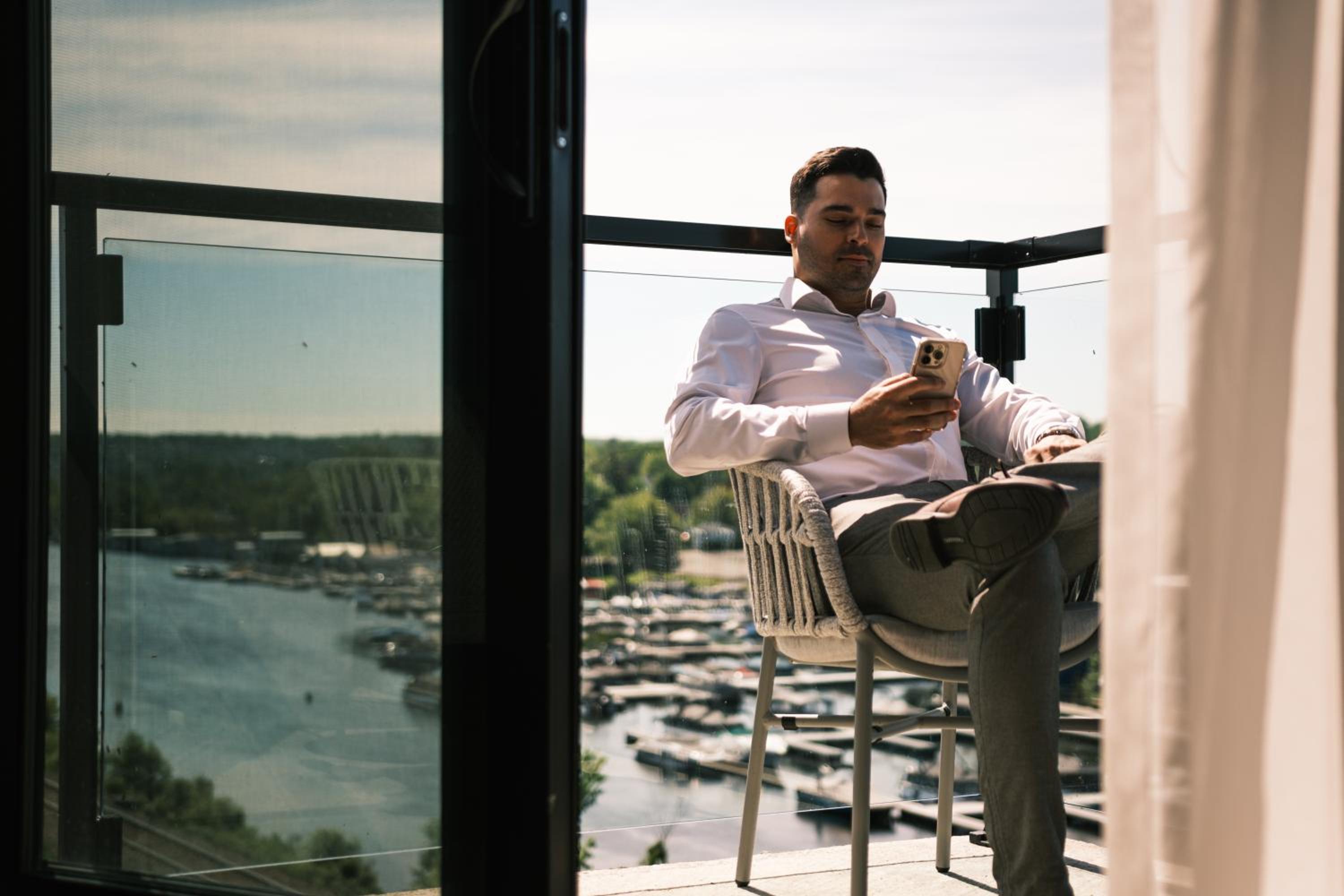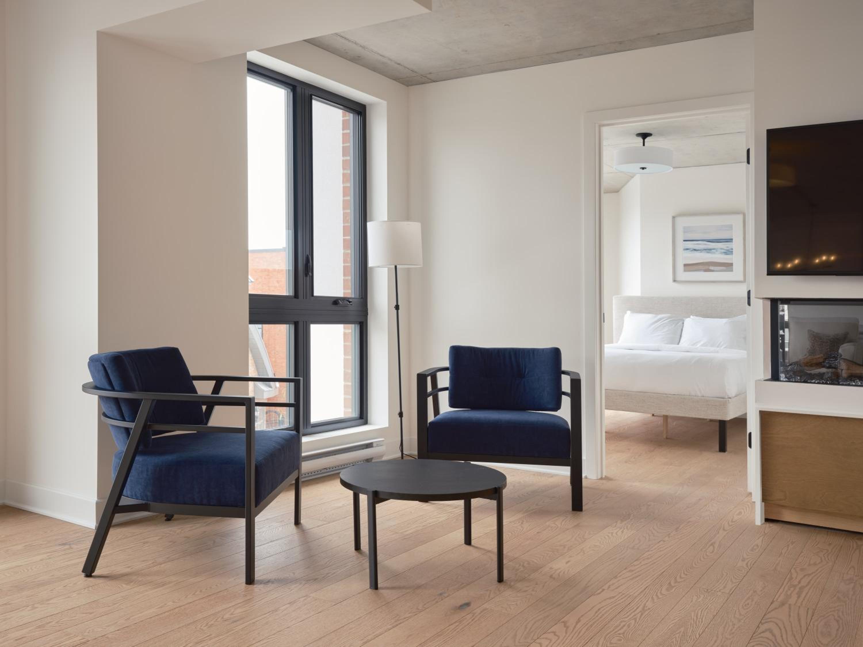 Experience a stay like no other at Hôtel - Expérience - Quartier Des Marinas, where you can enjoy breathtaking river views from the comfort of your terrace.