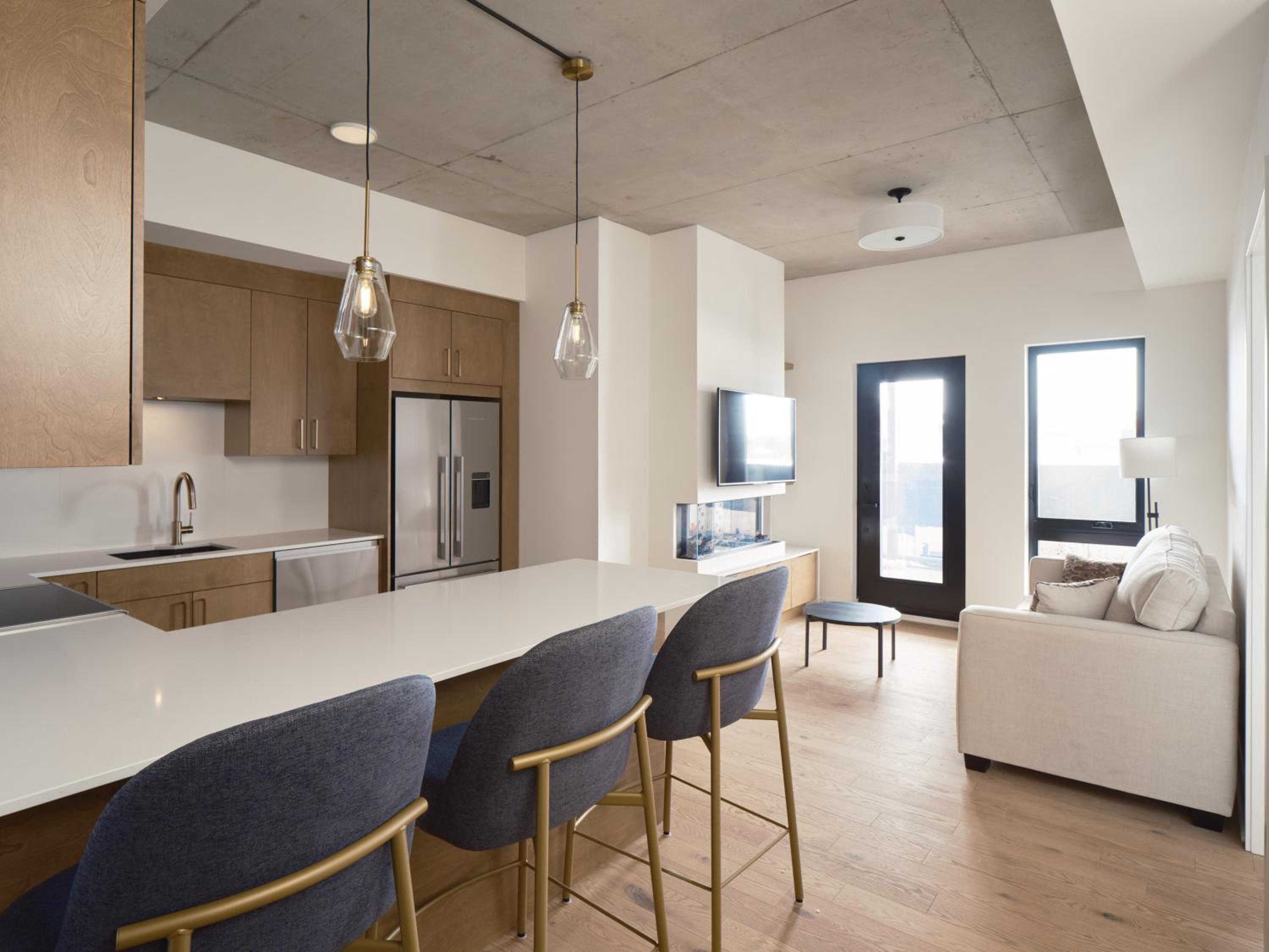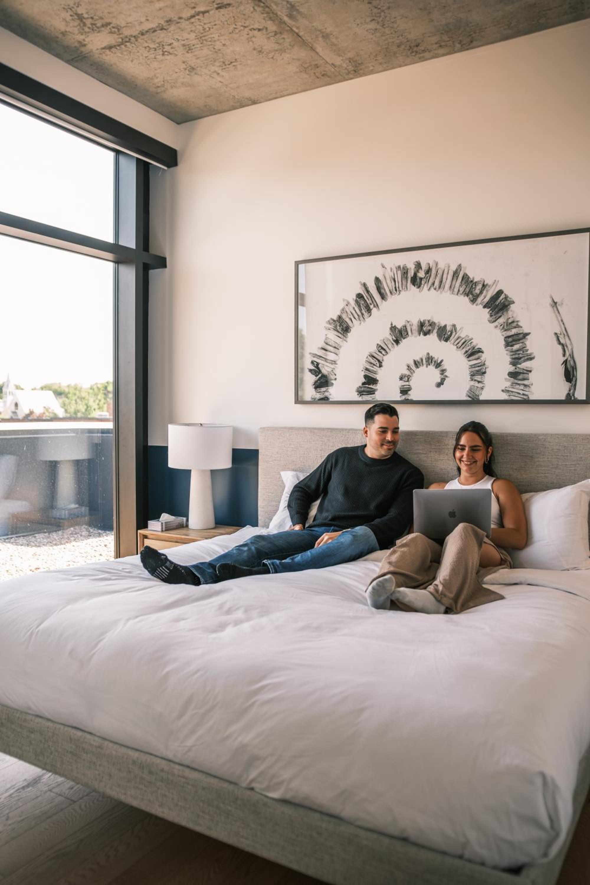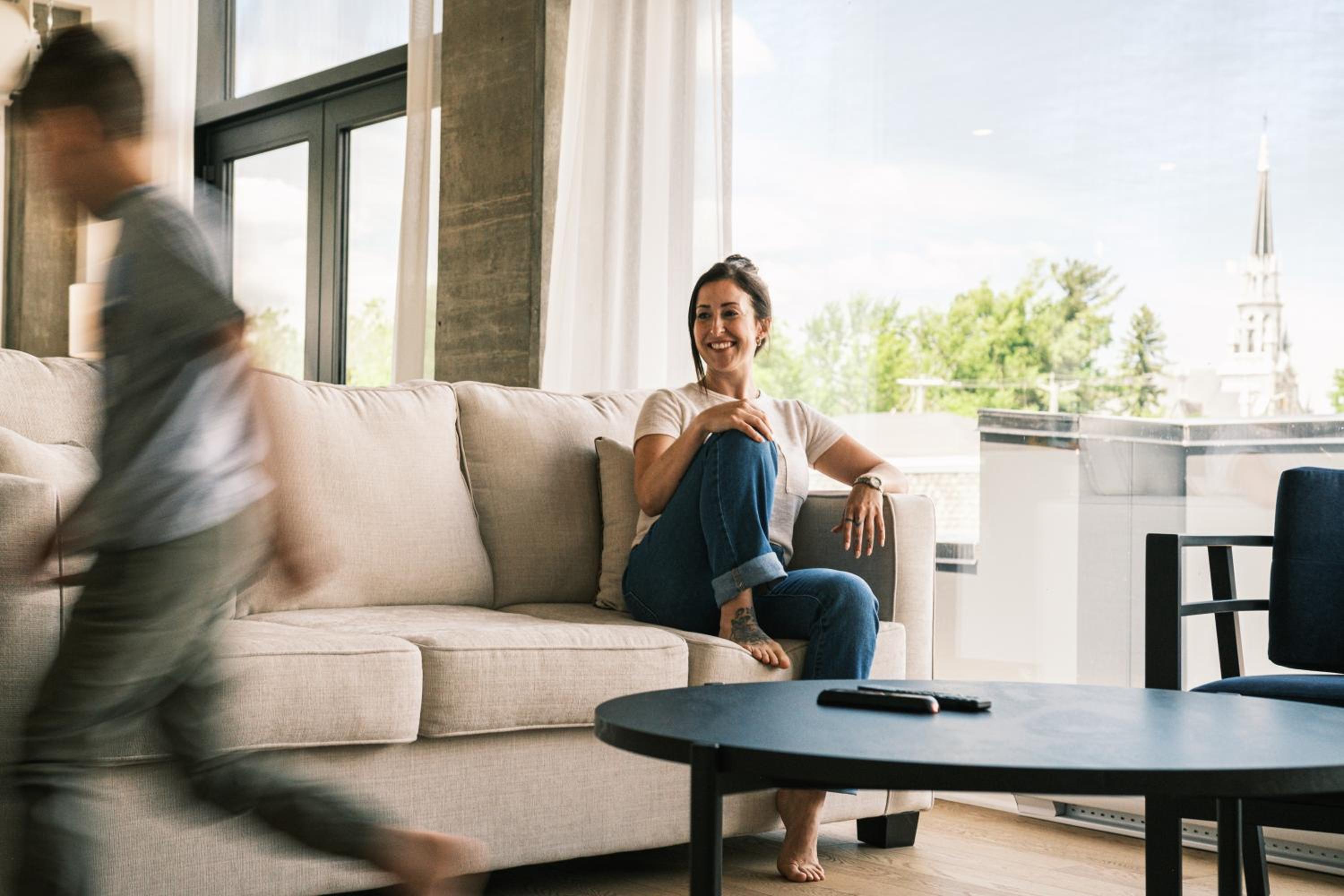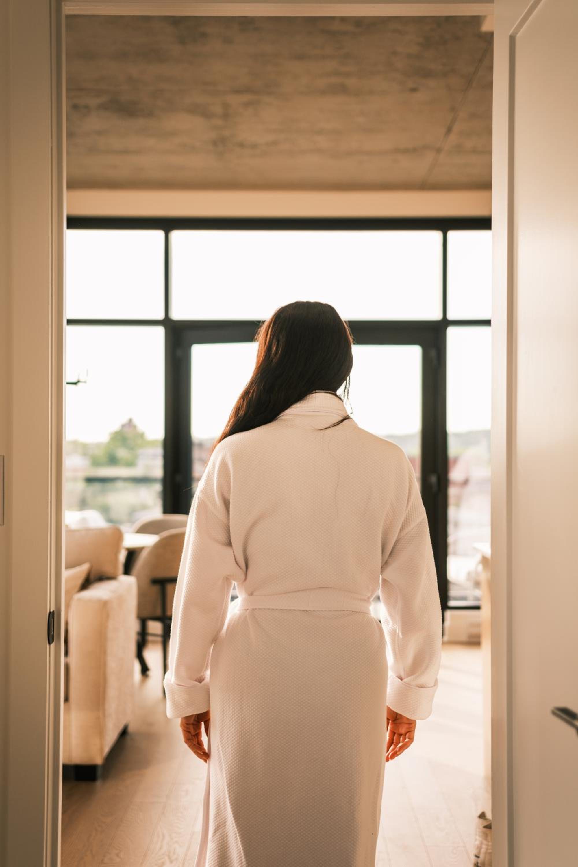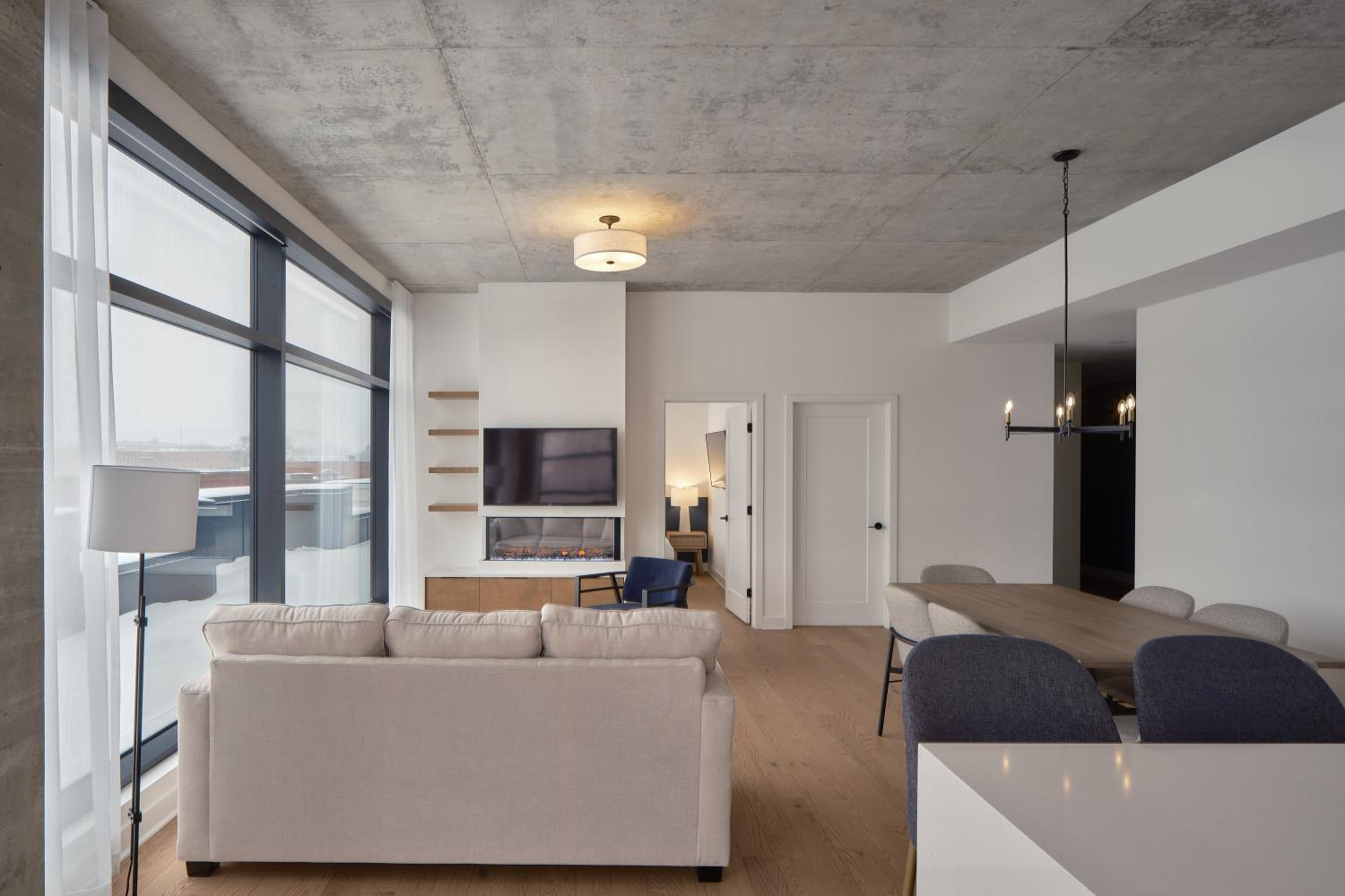 Experience a stay like no other at Hôtel - Expérience - Quartier Des Marinas, where you can enjoy breathtaking river views from the comfort of your terrace.