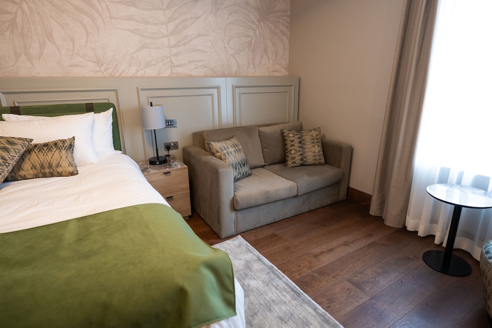 A hidden gem of a place. Finished to a very high standard sitting sound proofed above a very happening bar with live music. The staff are very helpful and friendly. Although the place is sound proofed, some bass noise but mainly street noise from the windows could be an issue, not an issue really for adults (take ear plugs) but a little difficult with children. Overall though I found it to be to a wonderful standard, mood lighting, a/c in the room and a luxury chic shower room.
