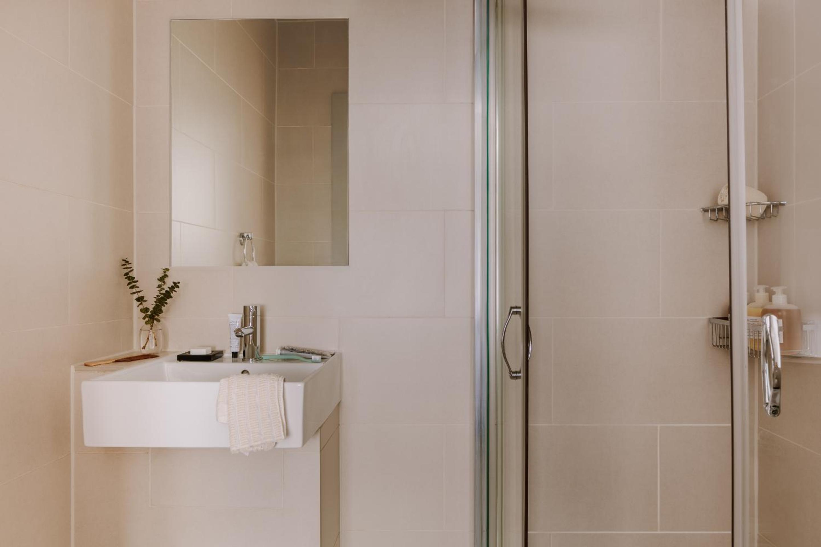 The walk in shower is extremely narrow and not pleasant at all