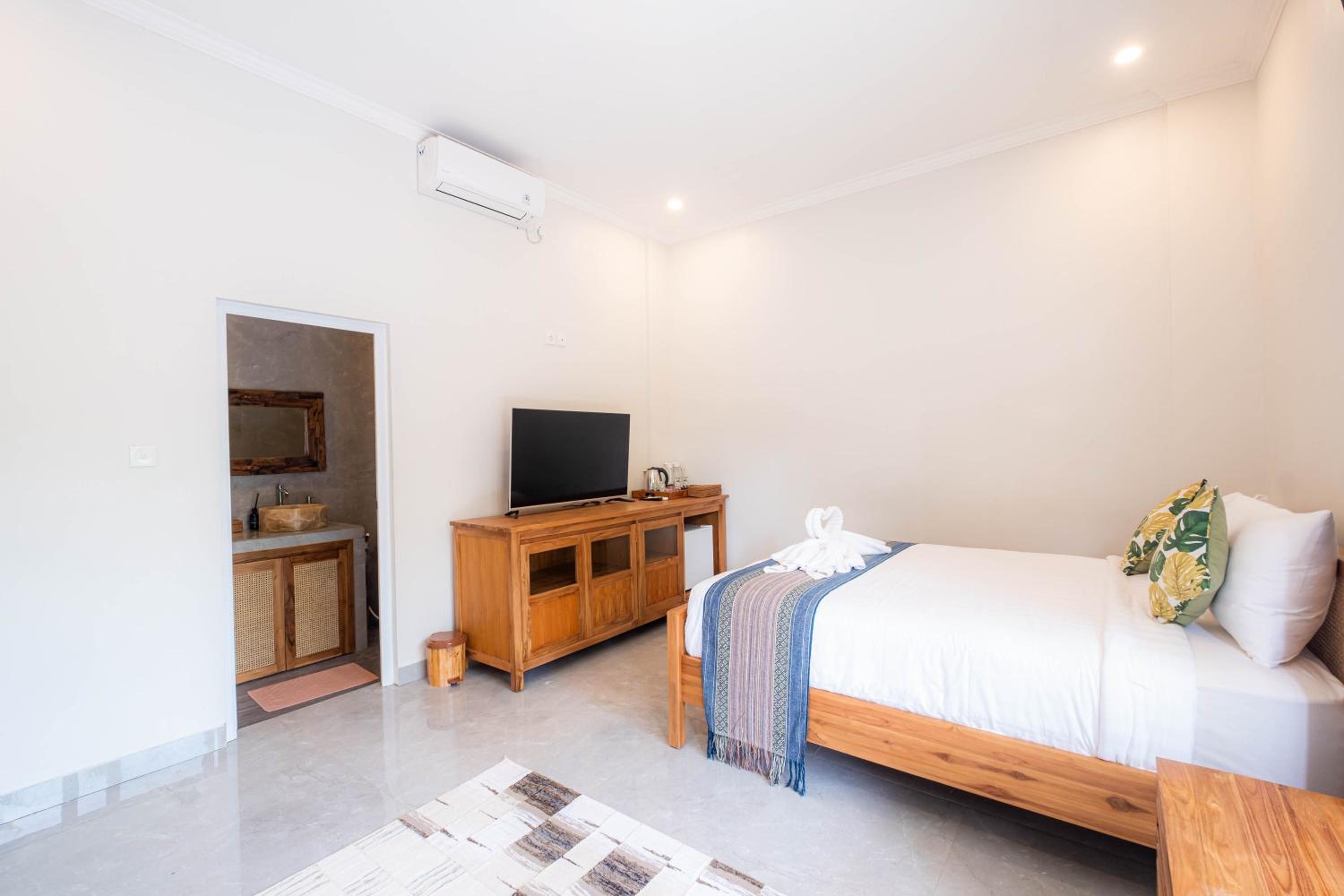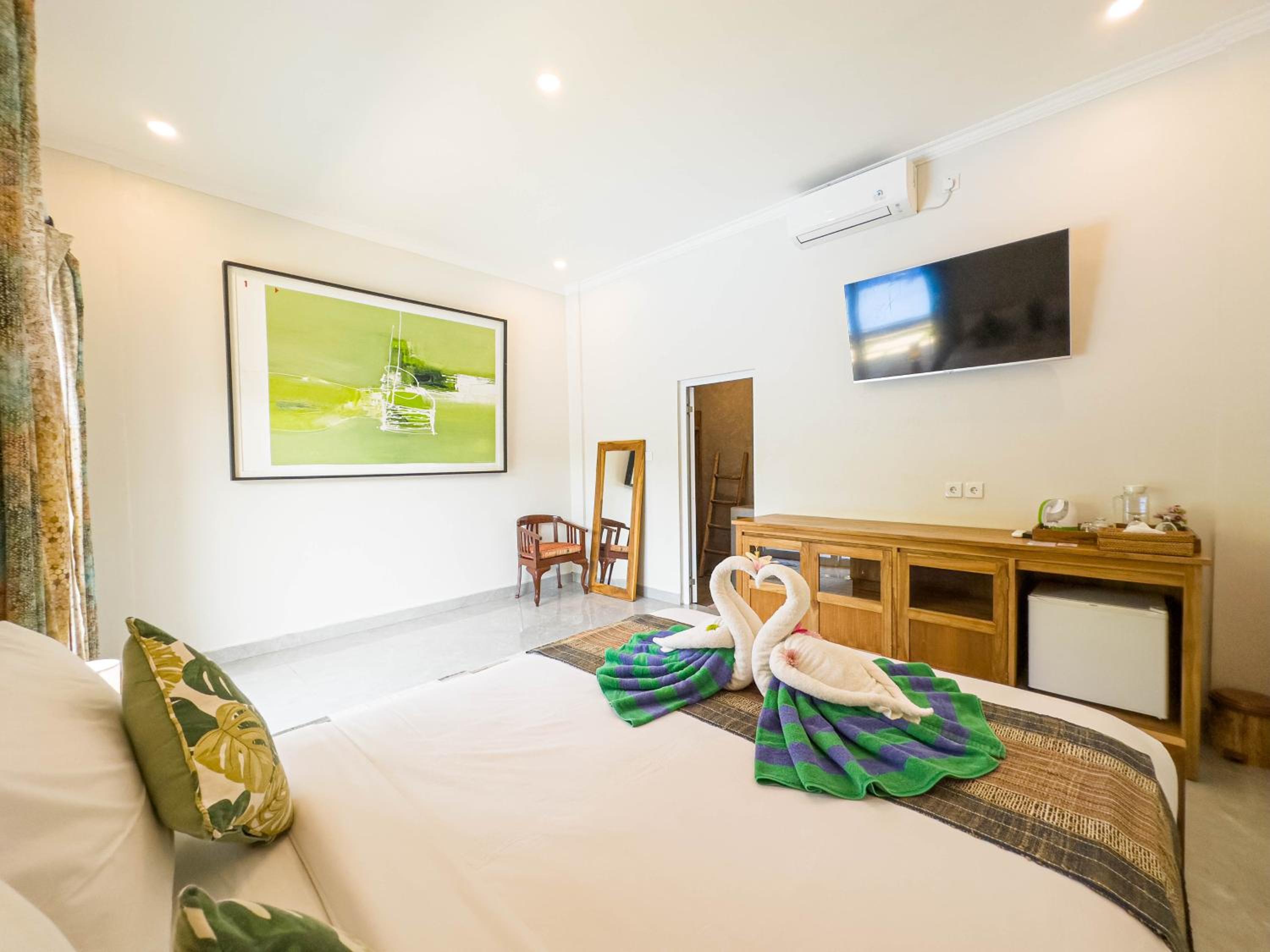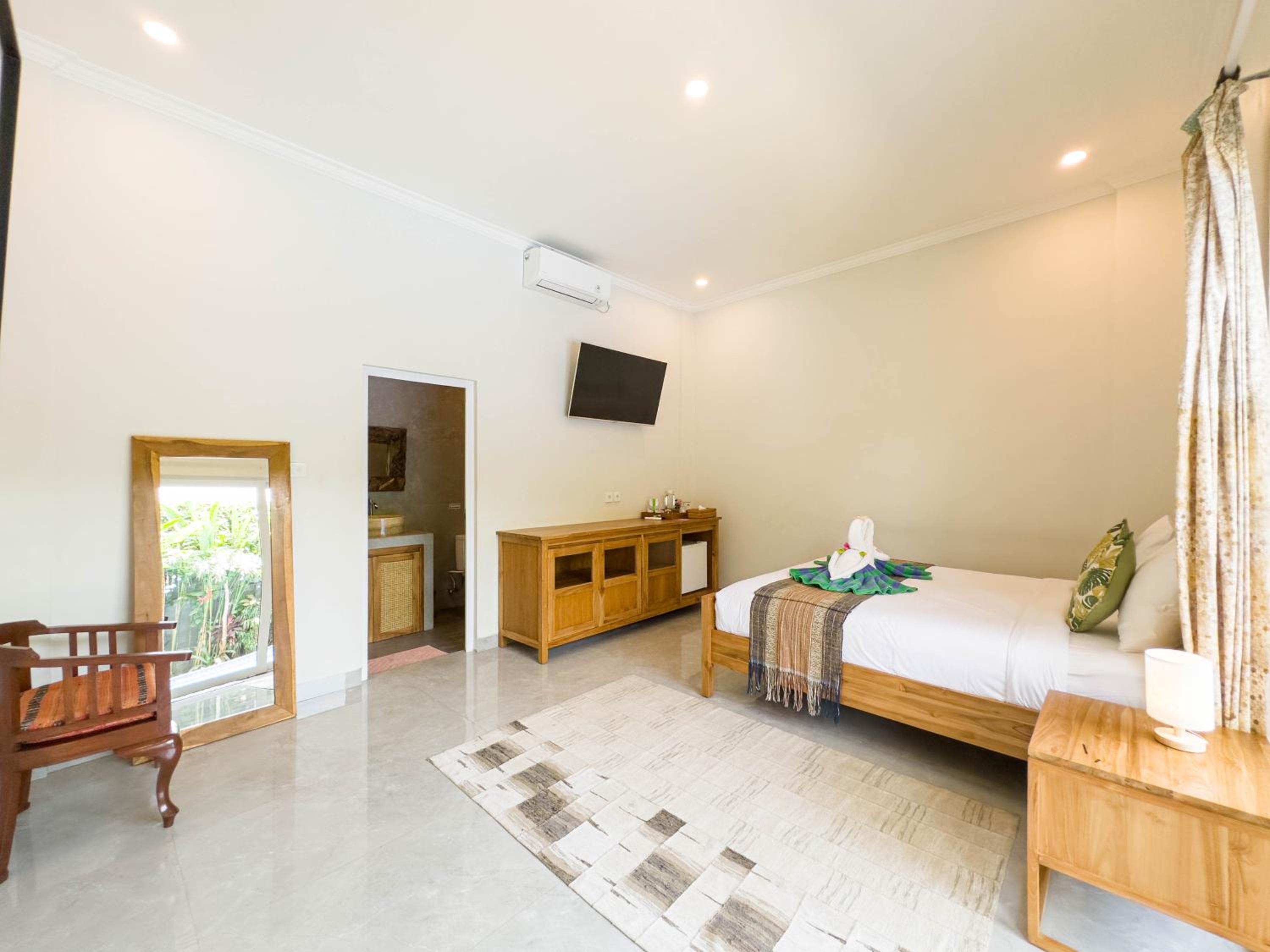 The room and the bed are very comfortable. The shower always has hot water, and the surroundings are pleasant. The hotel is not too far from Ubud, which is perfect for people who are used to getting around by motorbike. It is located in a quiet area, ideal for resting.