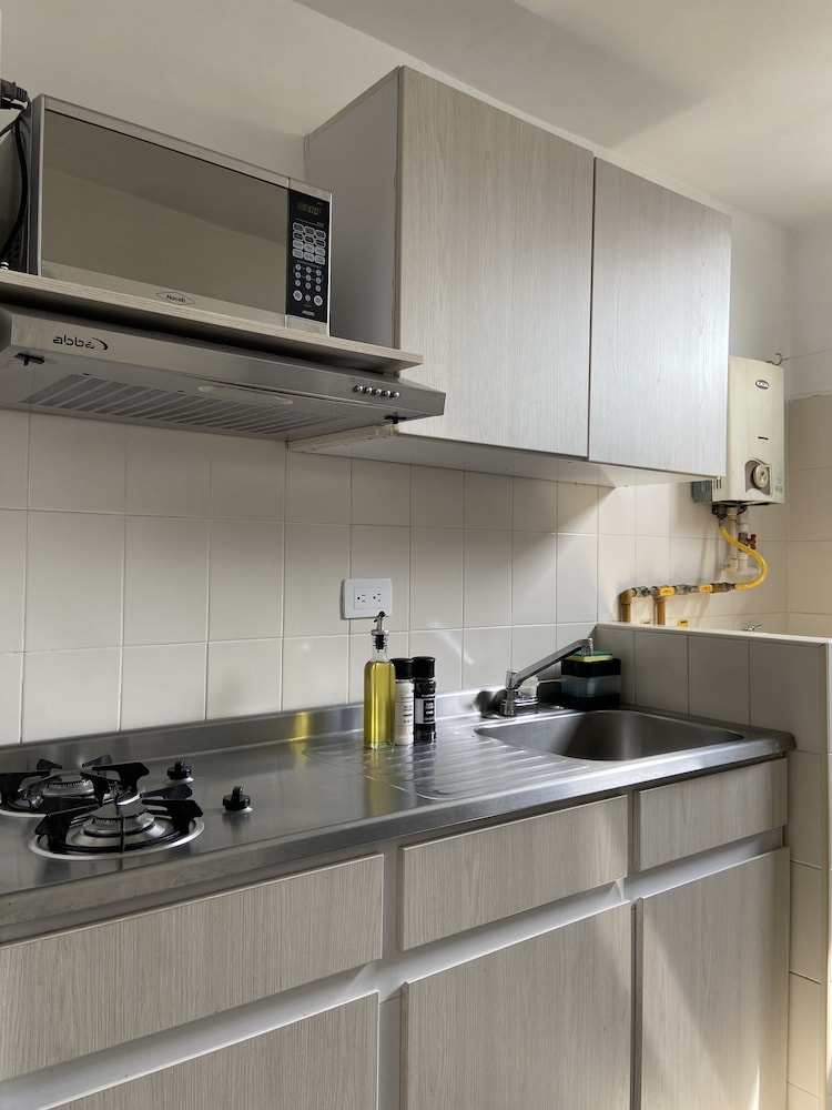 Just a hop skip away from Poblado. Subway station, Jumbo supermarket, and both bodytech and smart fit less than 10 minutes walk. Fully equipped kitchen, beautiful balcony view, and AC worked well in bedroom. Freeway noise a bit annoying but was able to sleep through it and I’m an extremely light sleeper. Hard to communicate with host as via Expedia platform messages don’t go through they should provide a what’s app number.