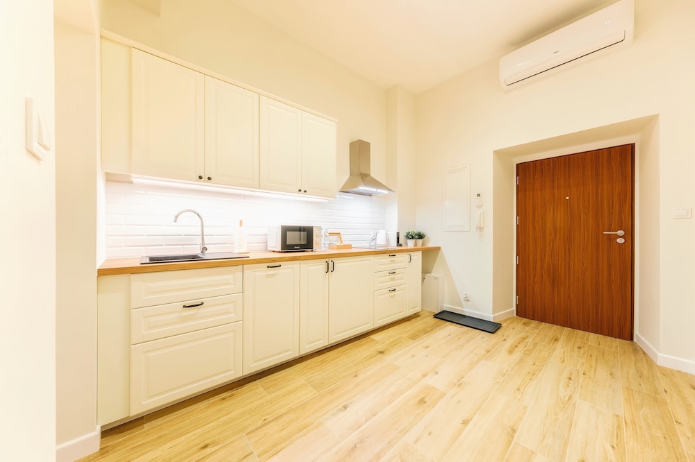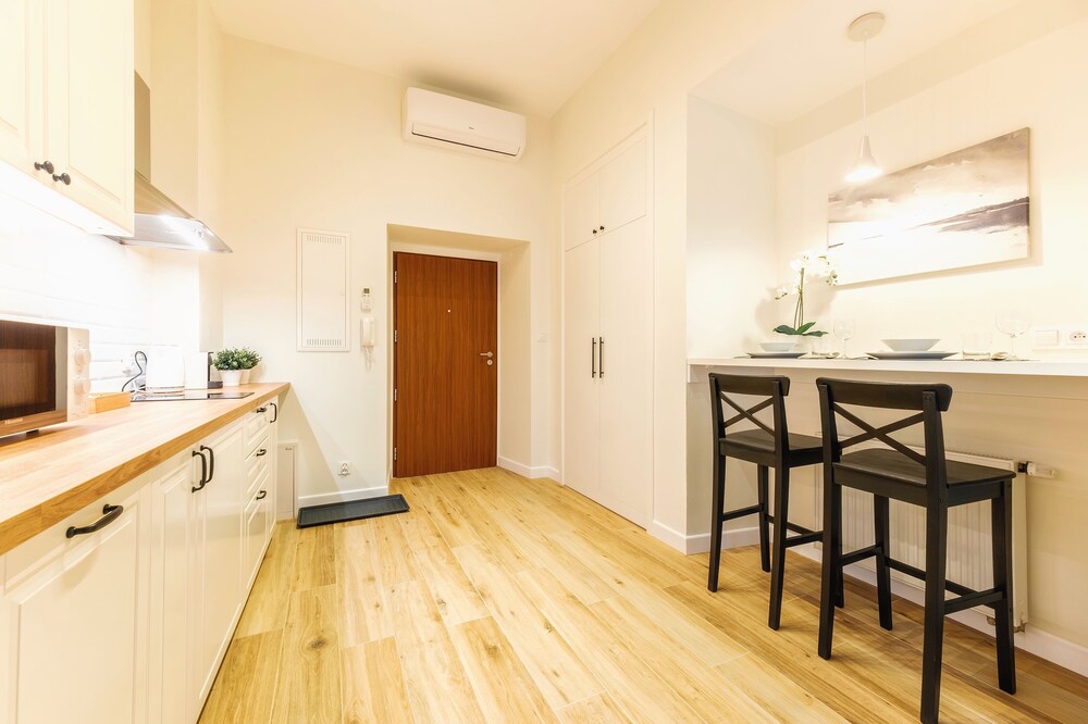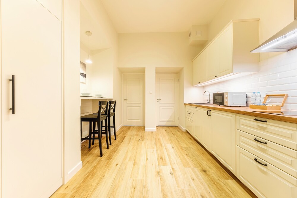 Nice apartment with big windows and high ceilings in central location. It is over a Jewish Restaurant in main part of old town. There is no concierge and guests can get the key from lock box with code. We got email about codes a bit late so it is advised to look for it ahead of arrival. We had some issues with heating of unit that we couldn’t resolve. Otherwise great stay.