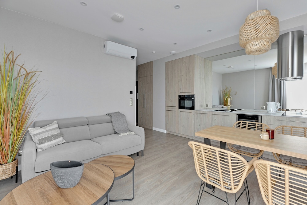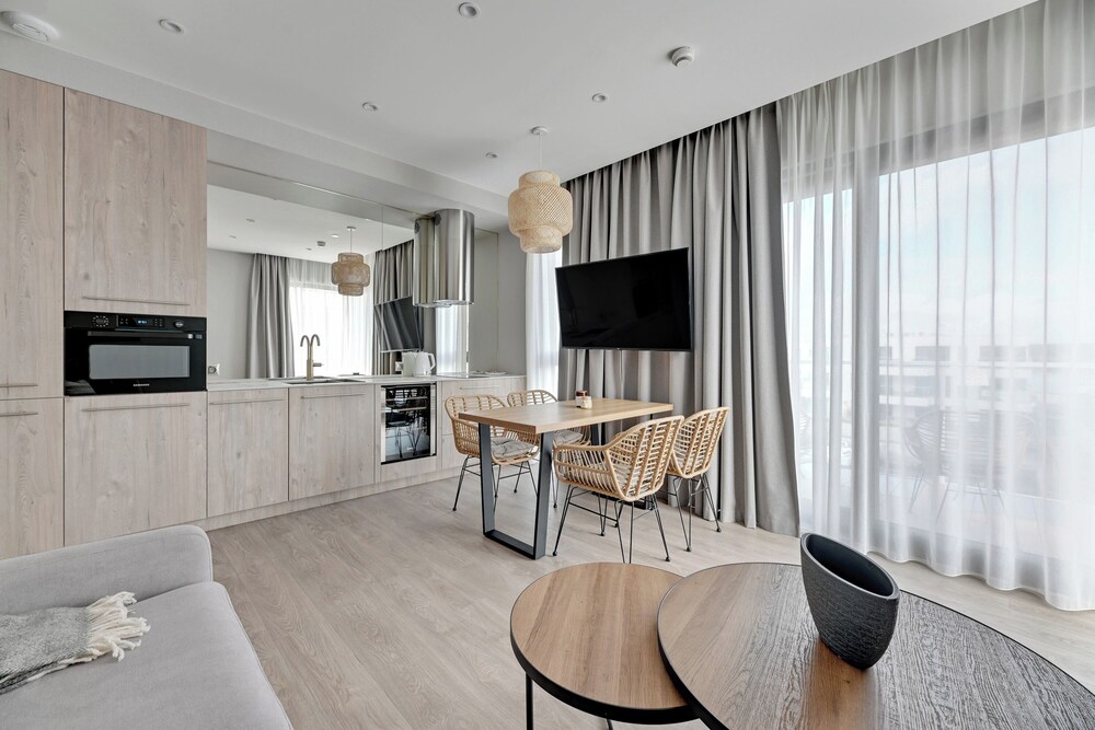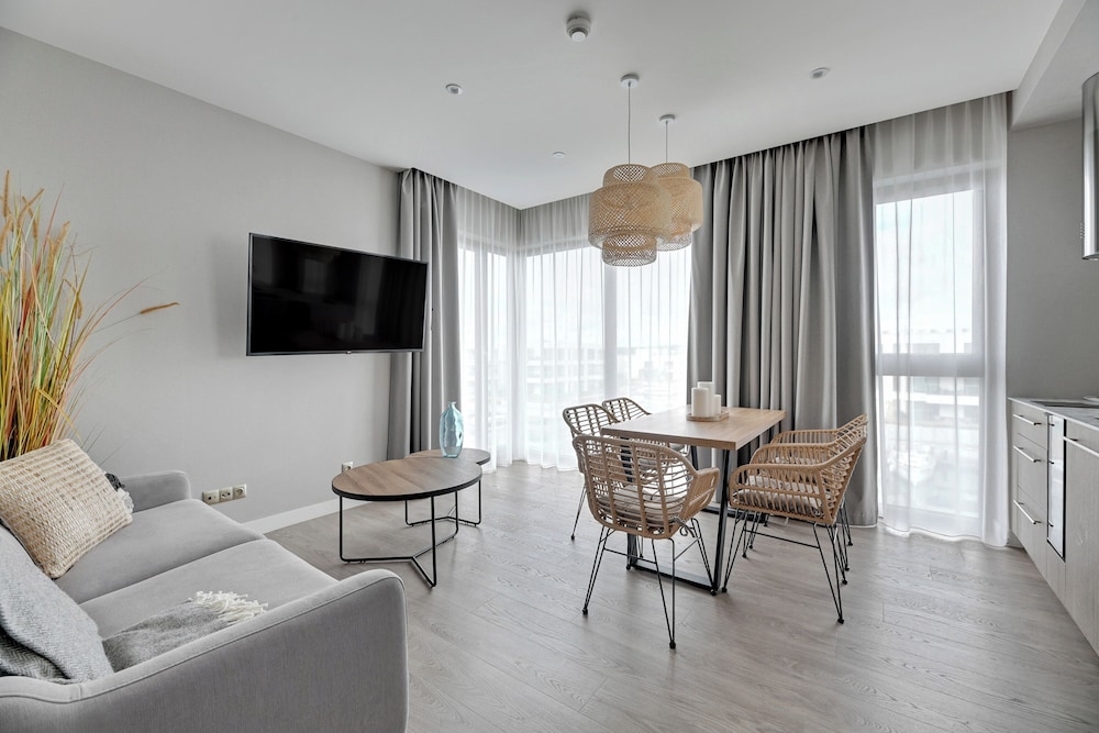 Vi bodde i lägenhet med balkong. Allt enligt bilder här på hotels.com och på deras hemsida. Rent, fräscht och bekvämt. Ligger ju en bit från Gdansk men bussen går precis utanför hotellet och en Bolt kostade 40-50 zloty.