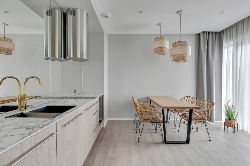 Everything was great. The apartment hotel was clean and well-equipped. The service was excellent and friendly. We also enjoyed the facilities, such as the playground, restaurant, and spa.