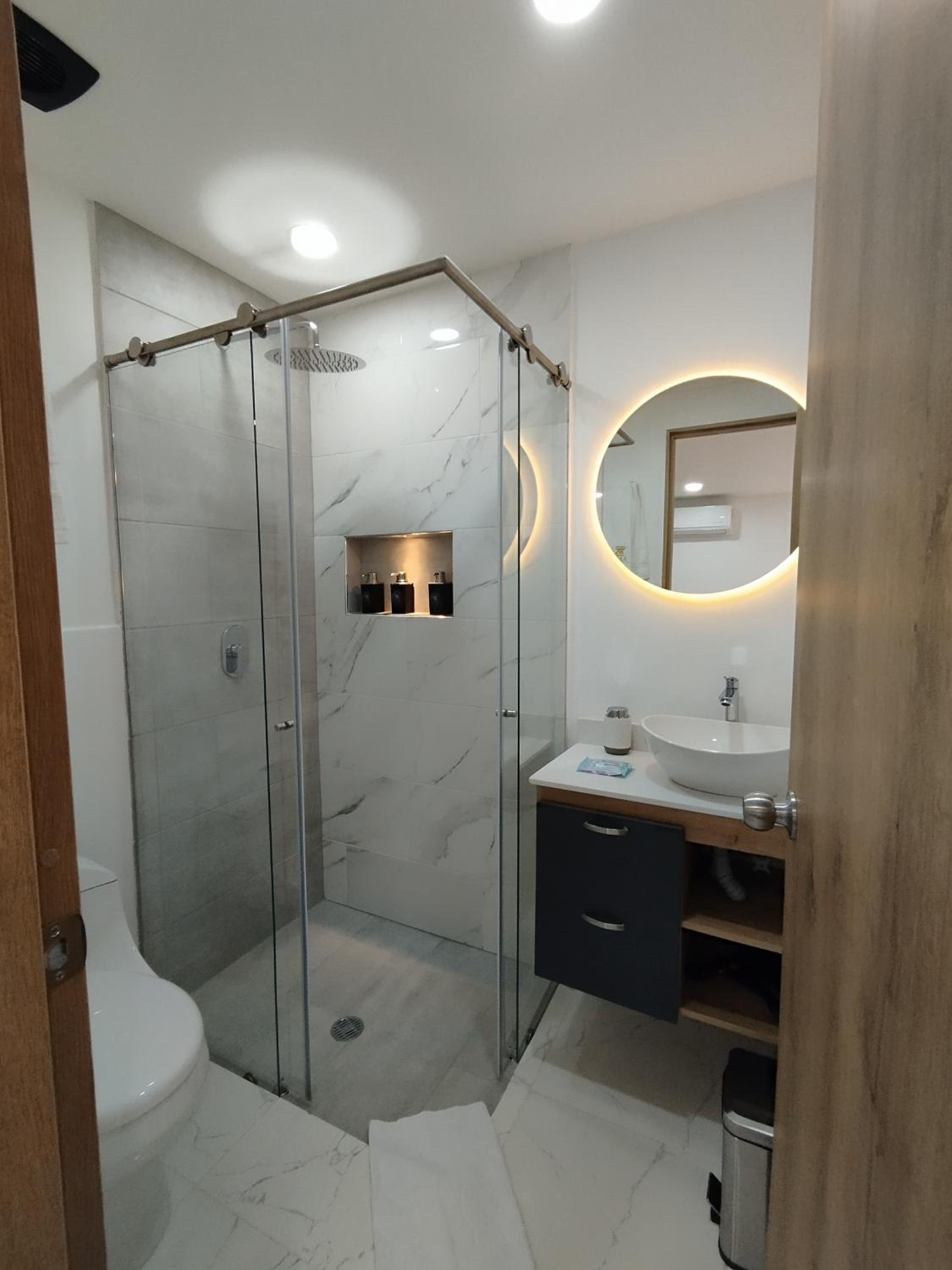 Es un cuarto sin ventanas y es probable escuchar los sonidos de todas las otras habitaciones. Los dispensadores de jabón de la ducha estaban dañados, lo comunicamos y no los cambiaron.