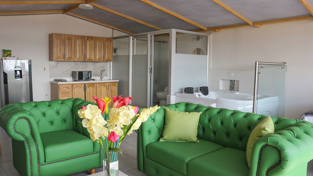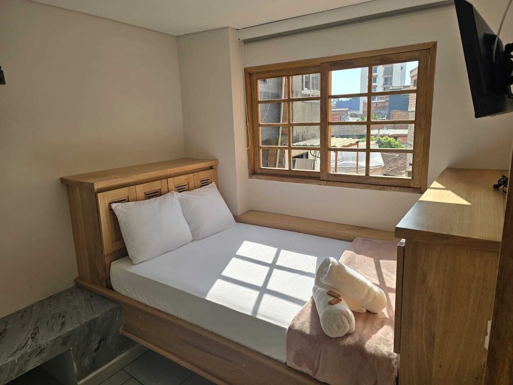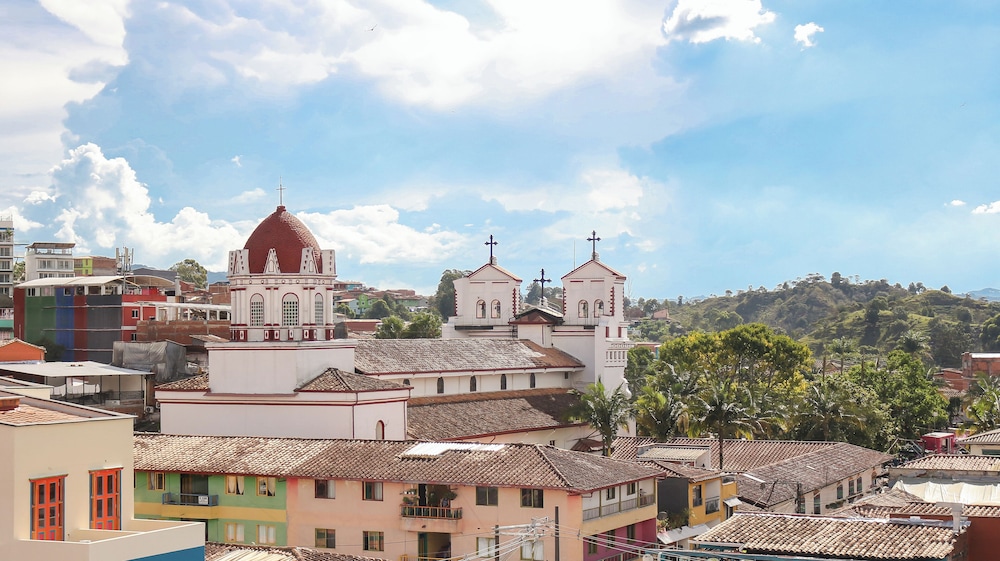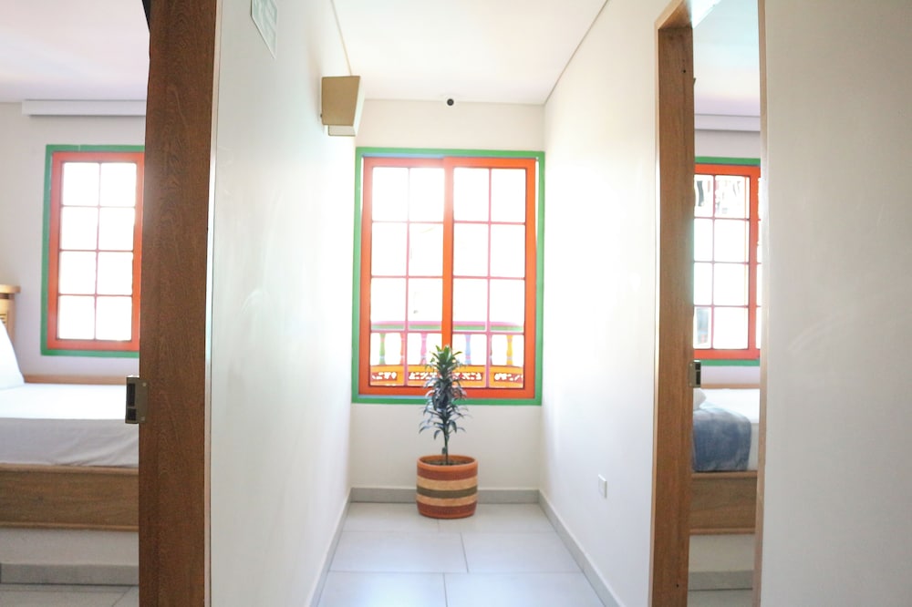 En general la propiedad muy cerca de todo, restaurantes, farmacias, tiendas de regalos, parque, iglesia...muy bueno todo. Lo que no nos agradó fue que habitación no tenía acondicionador de aire (solicitamos unos abanicos portátiles y resolvieron, pero me generaron alergia nasal que todavía estoy contrarestando) y el espacio de la habitación muy limitado para 4 personas, 2 camas, maletas, etc. Recomendación: habitaciones para 4 personas más amplias y abanicos de techo que la limpieza sea fácil y constante. Personal del hotel muy amables y en general, un pueblo que deben visitar si van de viaje a Colombia.