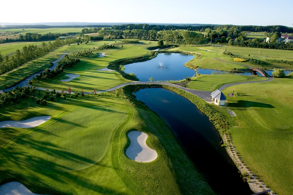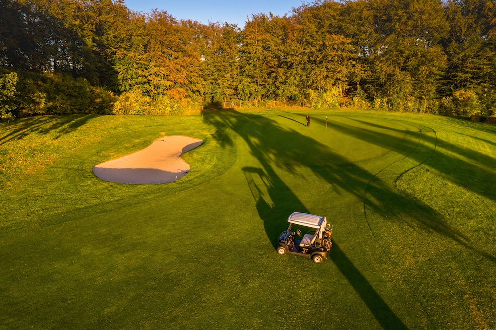 Lugn och vacker miljö. Blomsterrabatterna runt golfbanan var verkligen fina. Hotellet passar bra även för de som inte spelar golf då det finns en liten pool med solbäddar som man kan njuta vid. Frukosten var riktigt bra med färskpressad juice och en meny som du kan beställa varma rätter ifrån utöver den kalla frukostbuffén.